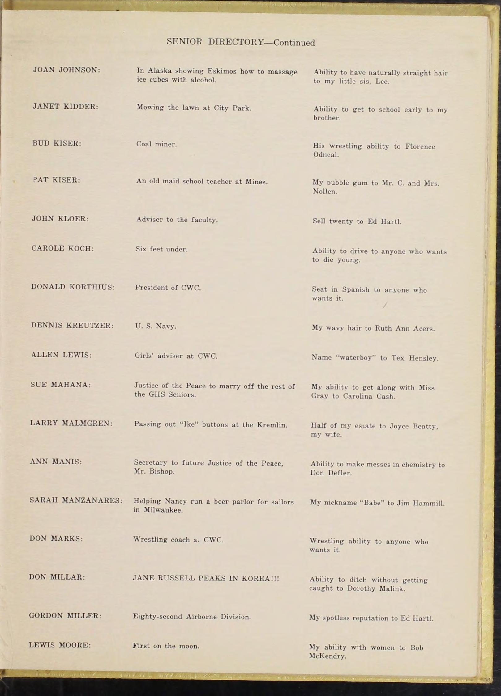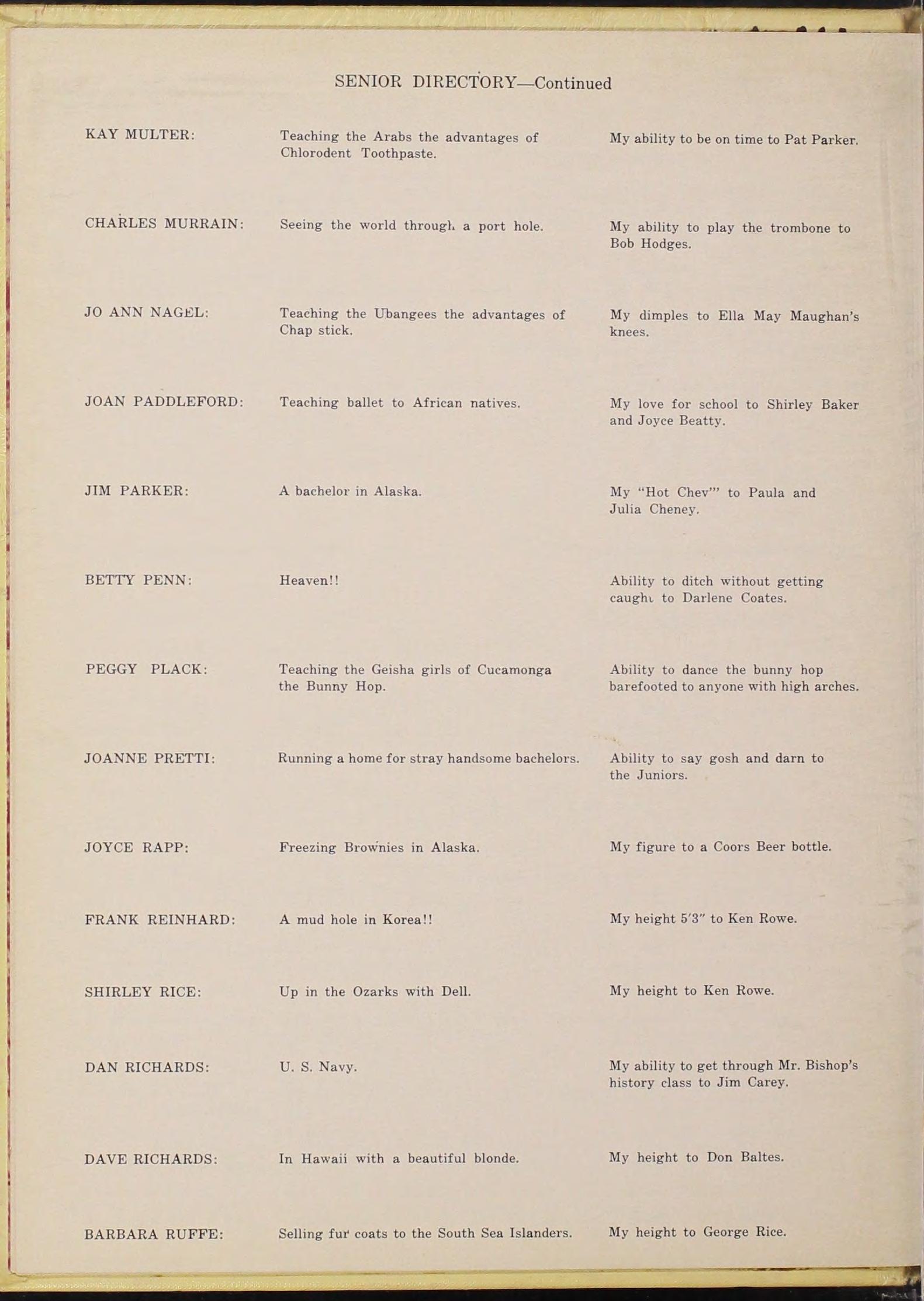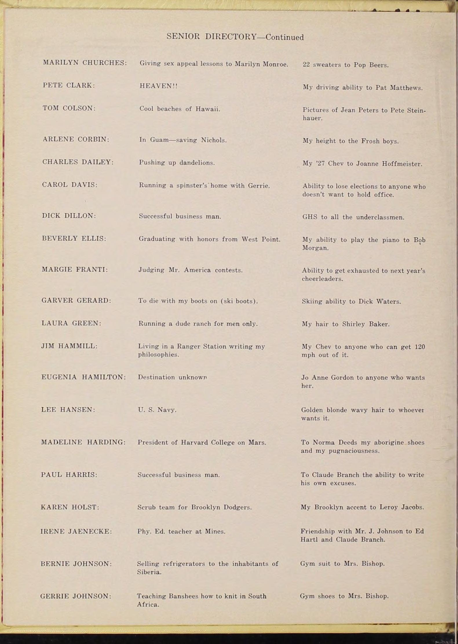 Congratulations To A Swell Bunch of Kids From PAUL & MARGARET GLENN JEWELERS Portrai ts By Dean PROFESSIONAL PHOTOGRAPHY For Those Senior Pictures You'll Alway s Treas11re P e r s ona l Att e ntion Give n Ea c h Ind ividu a l GALLOP PARTY SERVIC E 1111 Wa s hington Golden P. 0. Box 455 Phone 210-W 405 W. Cannon