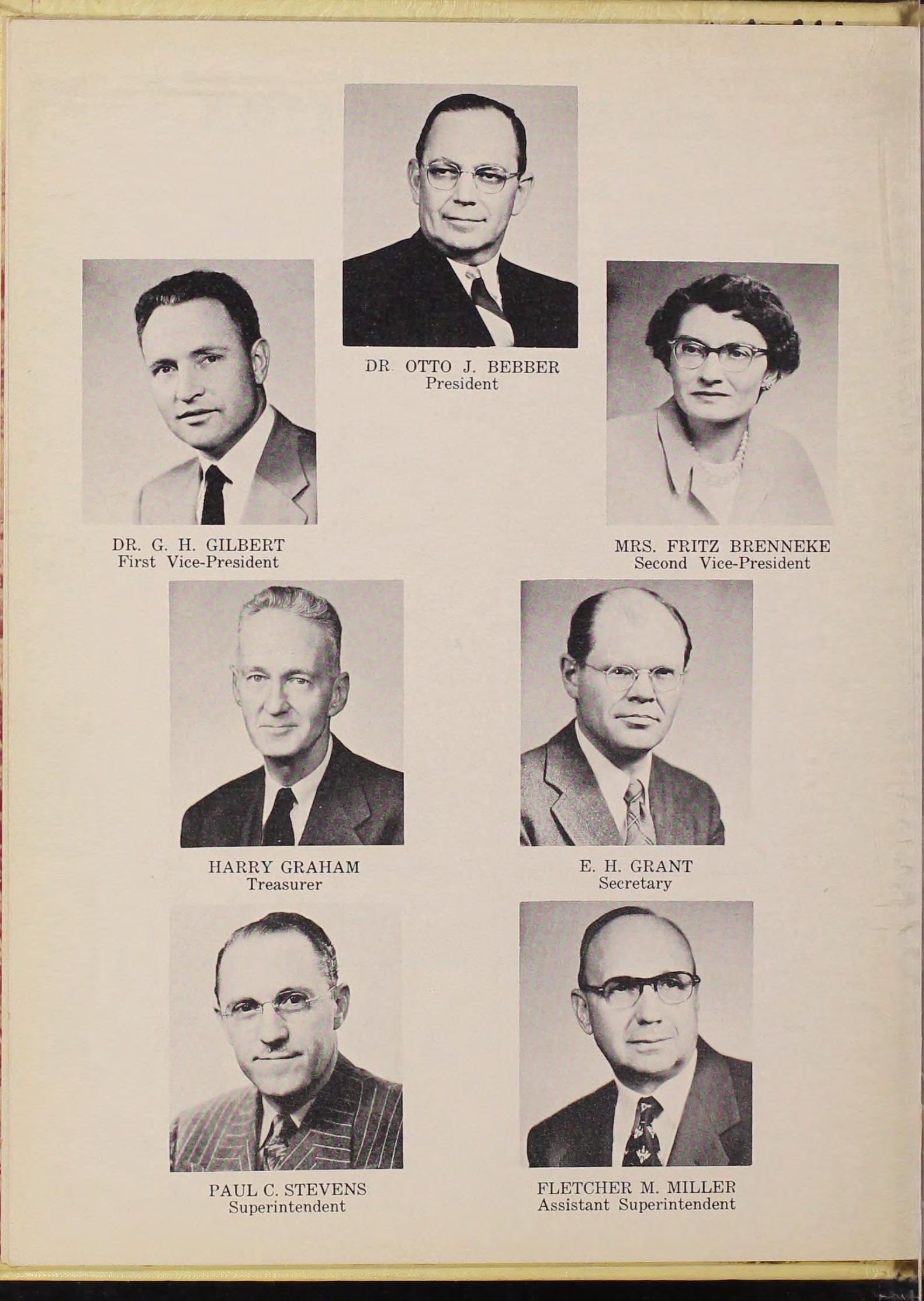 Sec ond Row : George Rice, Duane Klippel, Dick Dillon, Da rrell Gibbs, Kenny Di s que, Ji m Par ke1, Stan Smith, J ack McCracken, Bob Dugge1, Bo.} d Hen s ley, Shultz, Jerry P otter, Coach Booton