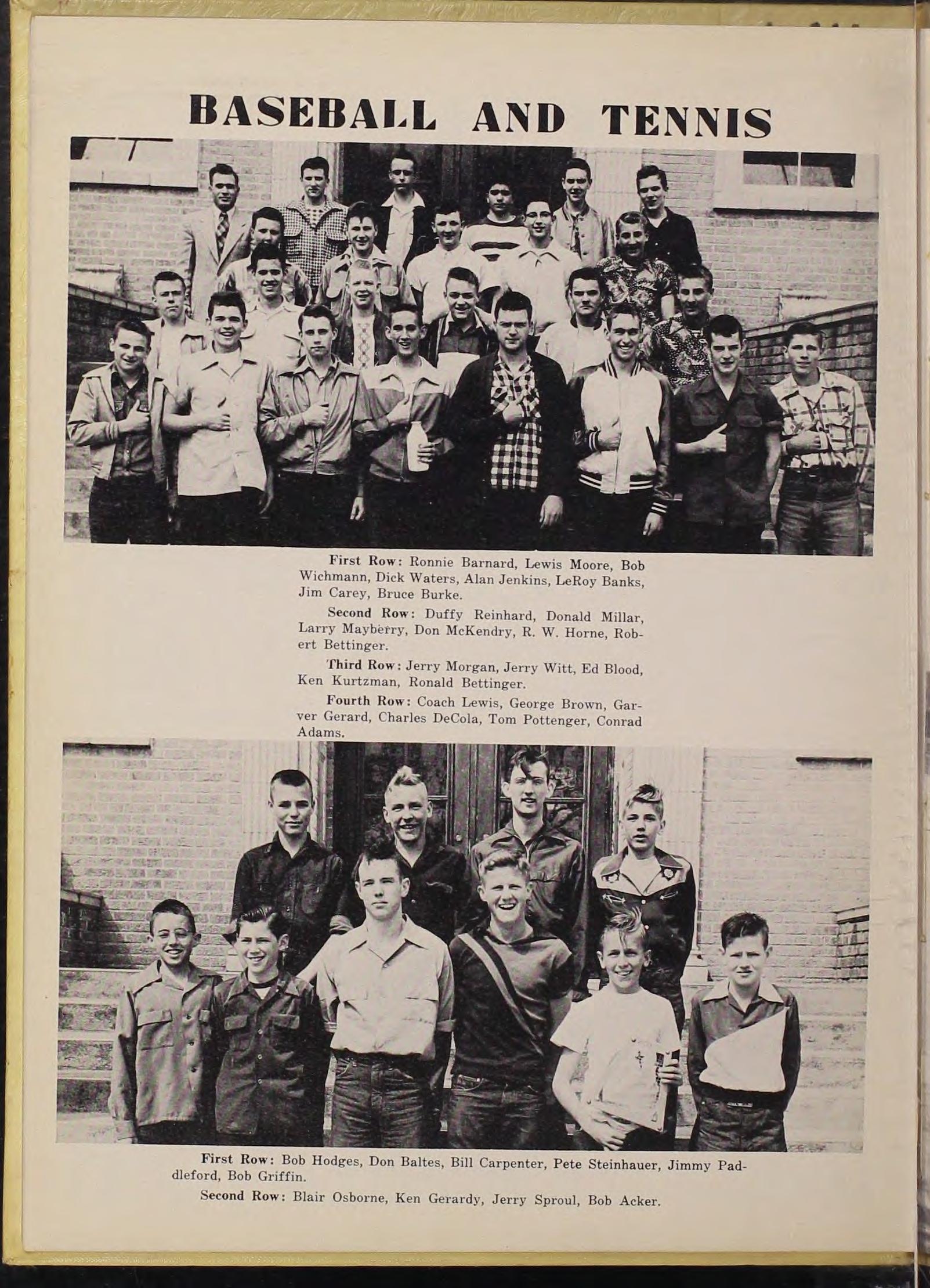 Fourth Row: Coach Lewis, George Bro,vn, Garver Gerard, Charles DeCola , Tom Pottenger, Conrad Adam s