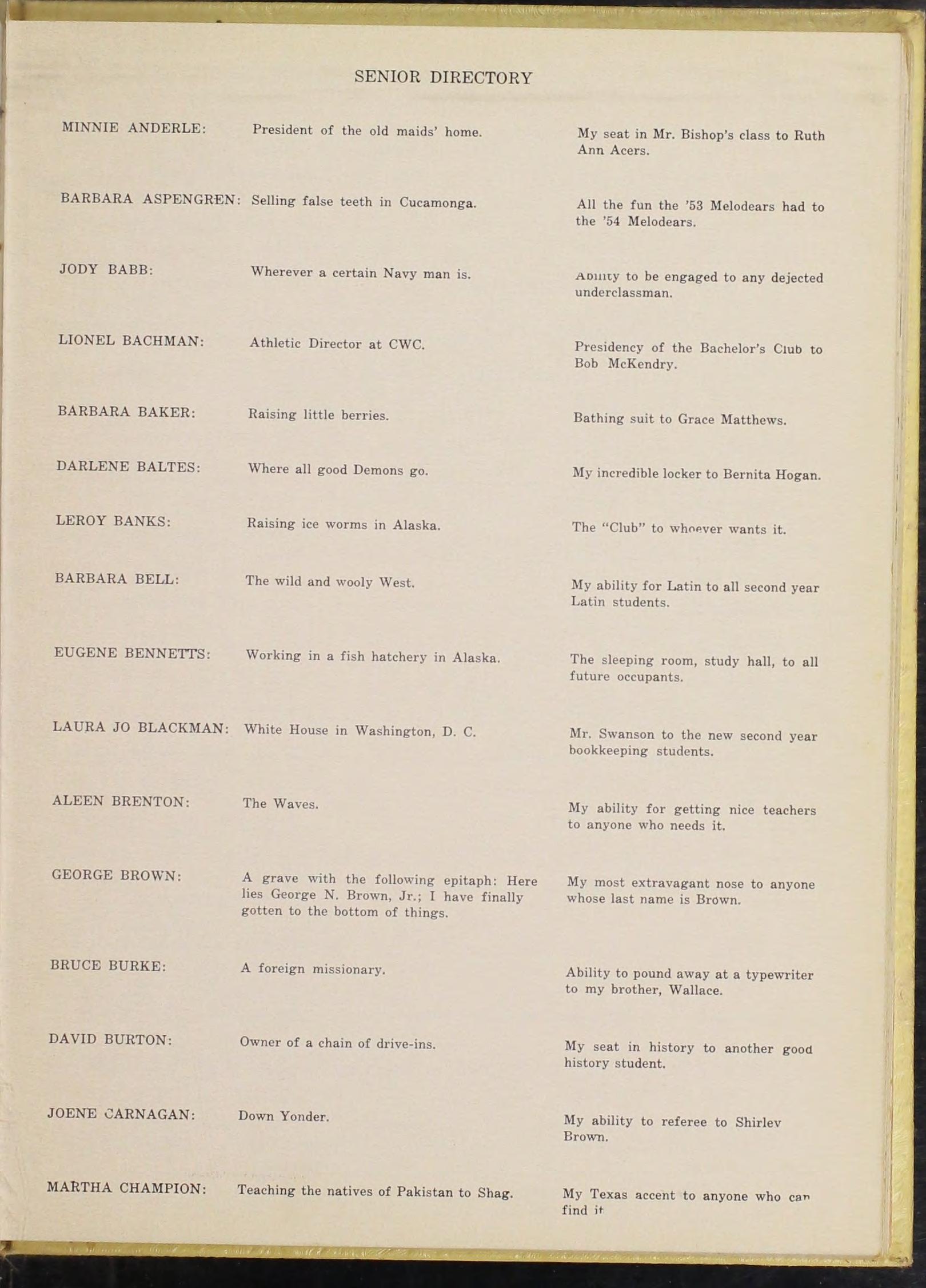~ow 2 : Jo Becerra, Shirley Duppman, Norma Mayberry, Barbara J ohnson, Jack ie Walte r s , Jane Mo s h e r , Carol Vl illiam s , C ar ol Van Scoy k, Mary Art e mi s , Kay Sc h oe n e, D onna S park s, J oa nn Nagel, H el en Flem i ng, Dori s Salme n, and Judy Larned.