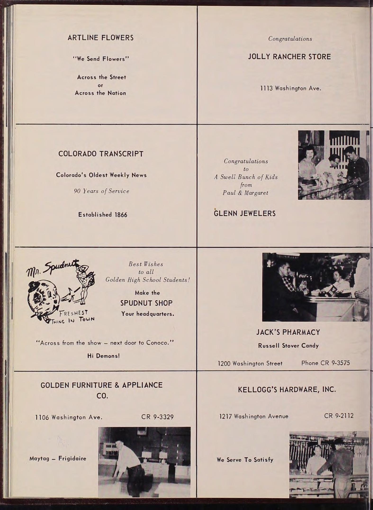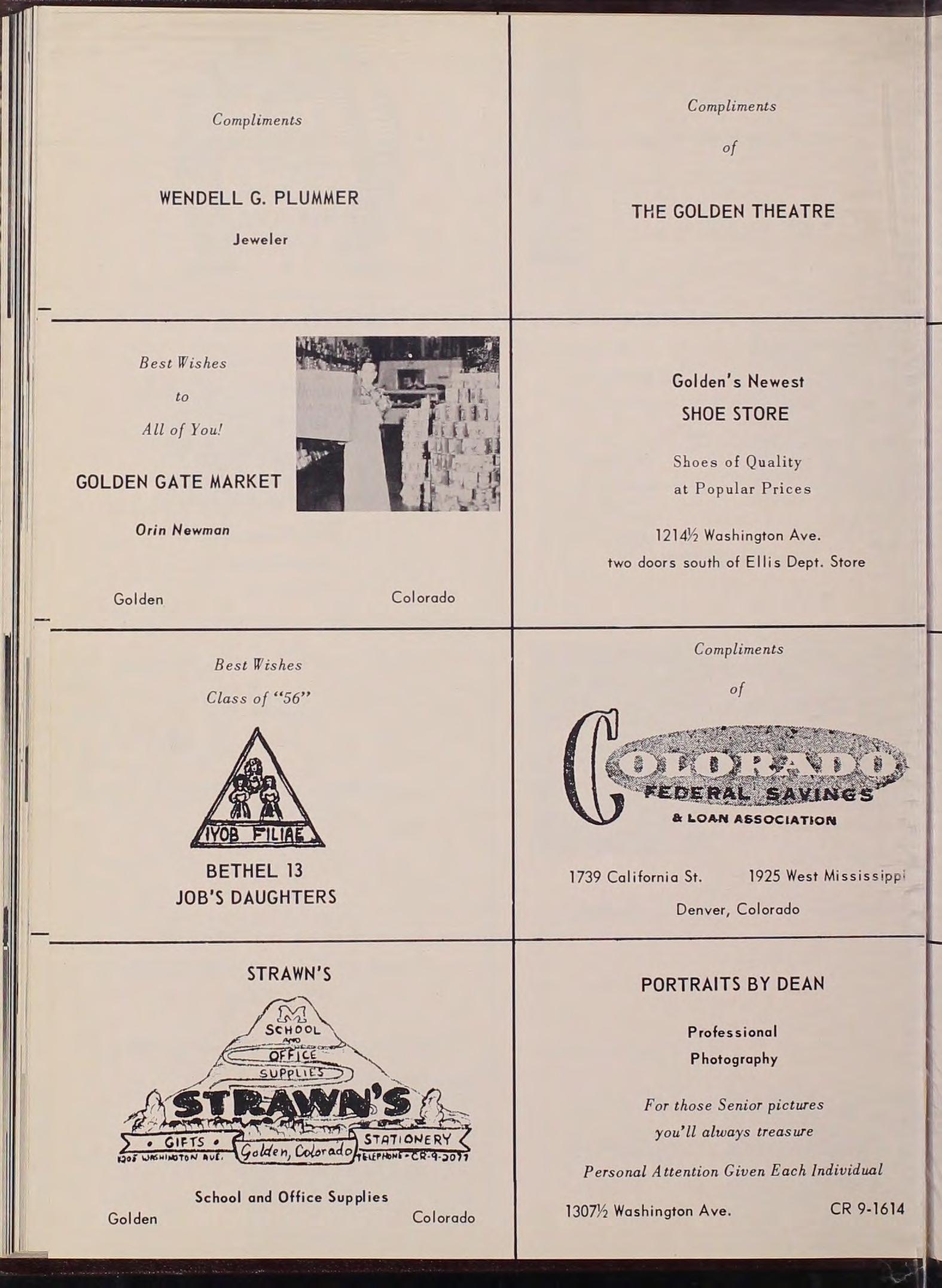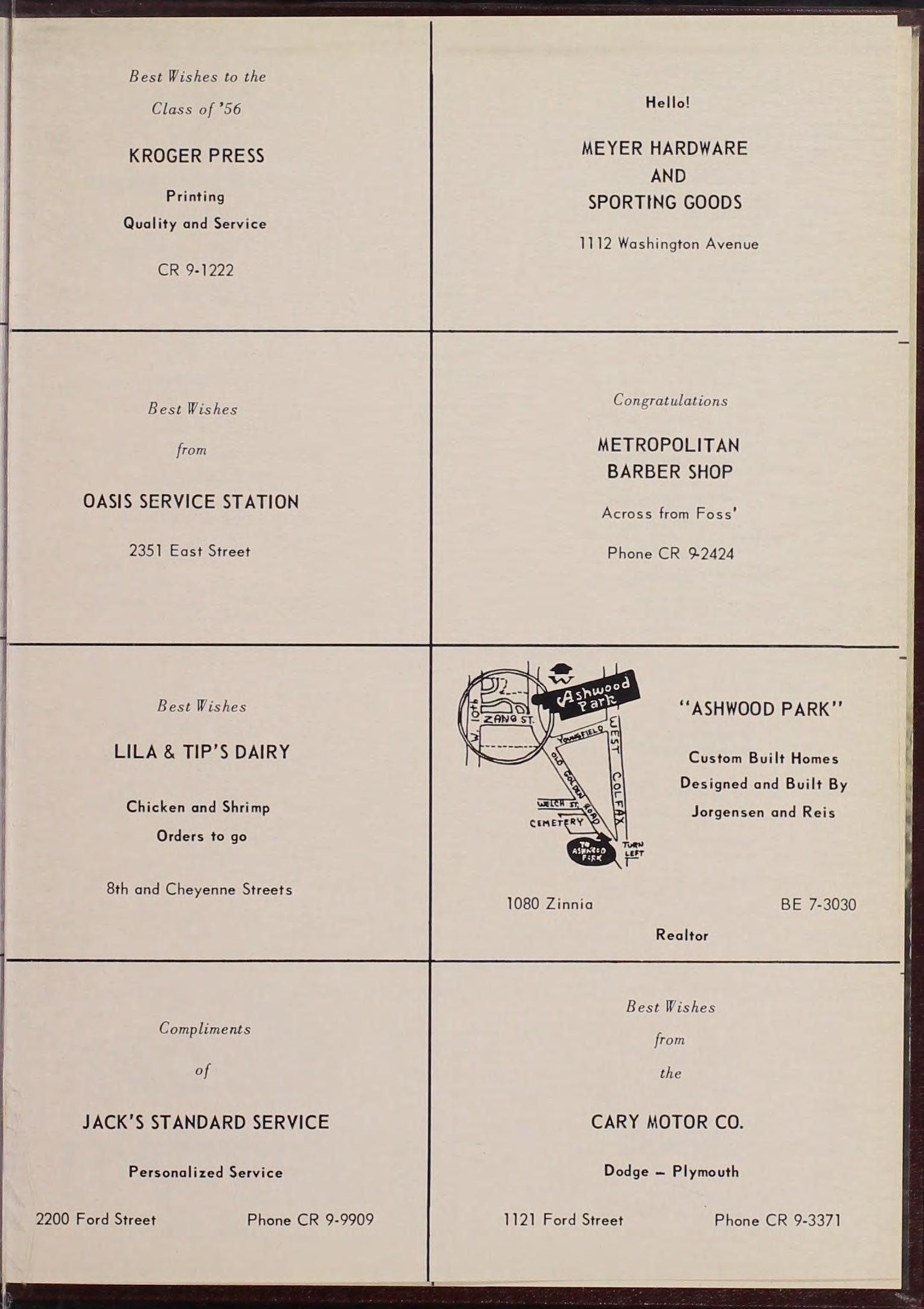 Best Wishes to the Class of ''56 '' from OSA-MAE'S CR 9-3653 801 - 12th Street Golden