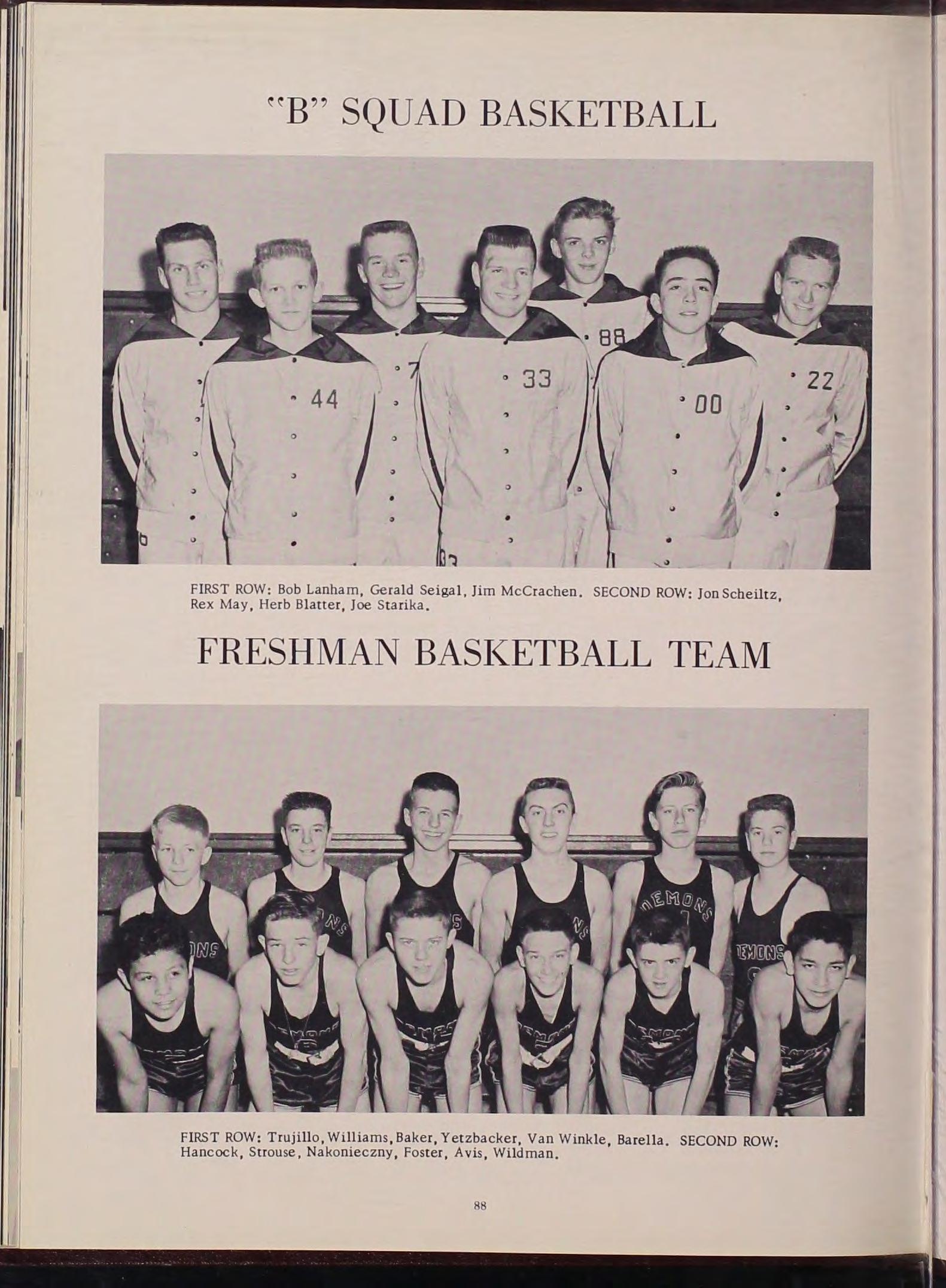 The League Standings for the Basketball year of 1956 were: Wheatridge,firstplace; Golden and Aurora tied for second place; Lakewood, fourth place; and Arvada, fifth place.