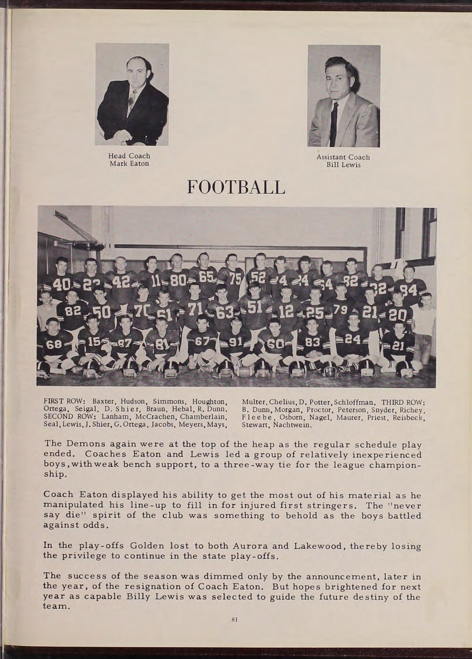 In the play-offs Golden lost to both Aurora and Lakewood, thereby losing the privilege to continue in the state play-offs.