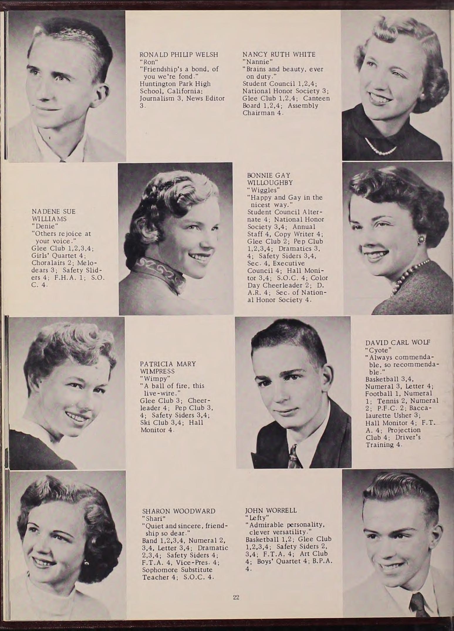 Los Alamos, New Mexico: Librarian 1; Pep Club 1 ; Golden : Student Council 3; Maroon & White 3; Glee Club 1,2; Dramatics 2 ; Canteen Board 4; Safety Siders 4; Pep Club 3,4, Council 3; Prom & Planning Committee 3; Color Day Cheerleader 2,3; Graduation Usherette 3.