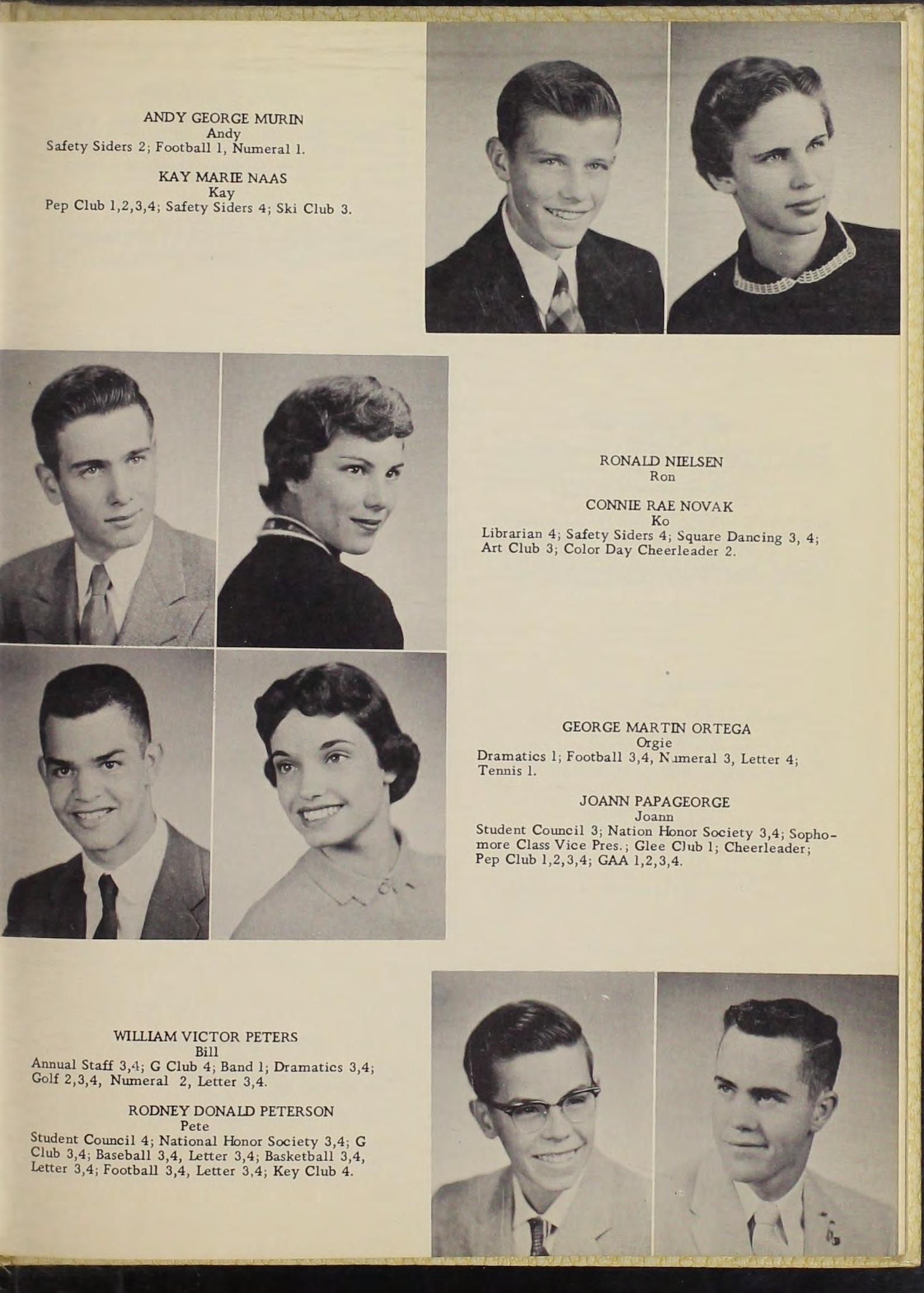 Pep Club 1, 2 , 3 , 4 , C ouncil 3 ,4 ; Safety Siders 4 , Ski Club 3 , Officer 4 , Junior Color Day Cheerleaders,