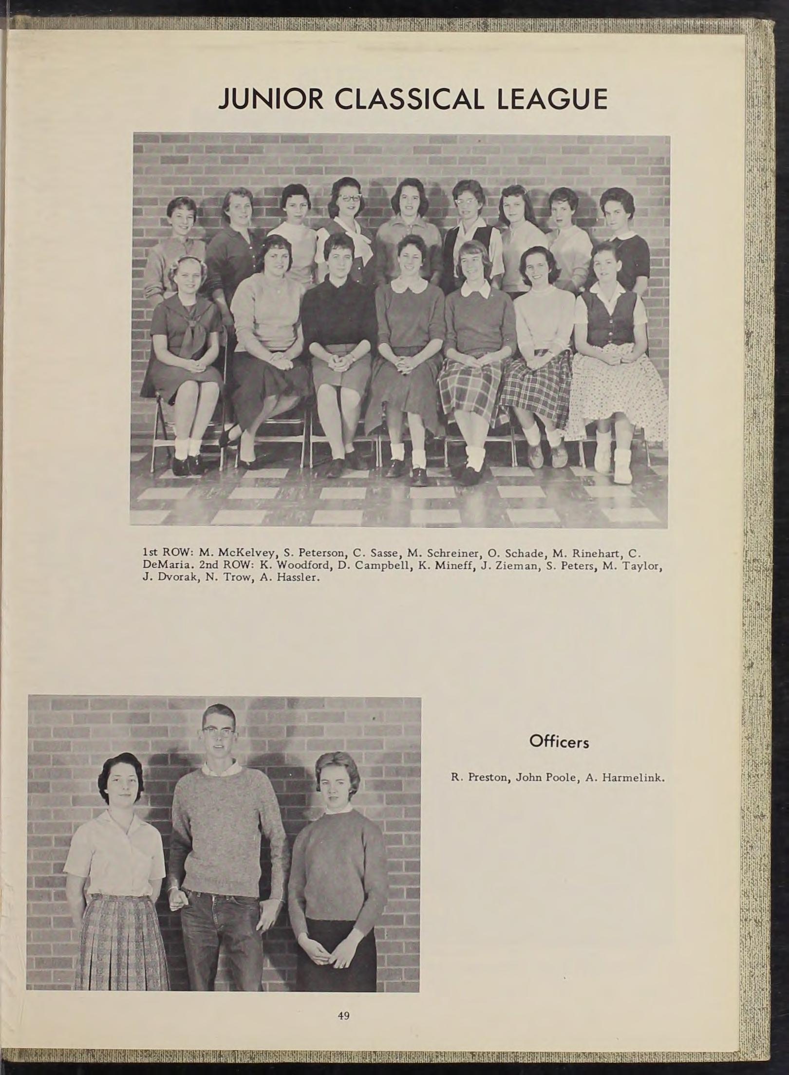 Choir 4; Junior Class Treasurer; J .C.L. 3 ,4; Junior Red Cross 4; Pep Club 2,3,4 Treasurer 4, Council 4; Planning Committee 3; Student Council 2,4; Graduation Usherette 3; Prom Committee 3; Girls' Club 4