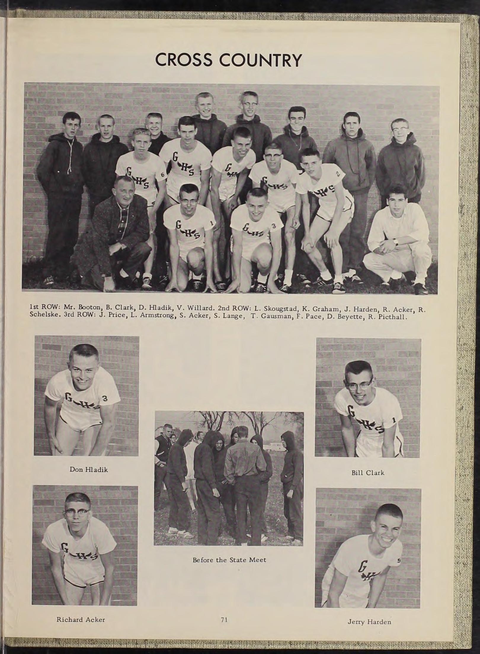 Band 2,3,4 Vice Pres. 3,4; F.T.A. 2; G Club 2,3,4 Sec. 4; Gymnastics Club 2; Junior Red Cross 3 ,4; Student Council 4; Futile Five 2,3,4; Cross Country Letter 3 14 All Conference 3,4, All State 3, Captain 4; Track Letter 3,4 All Conference 3; Boys' Club 4