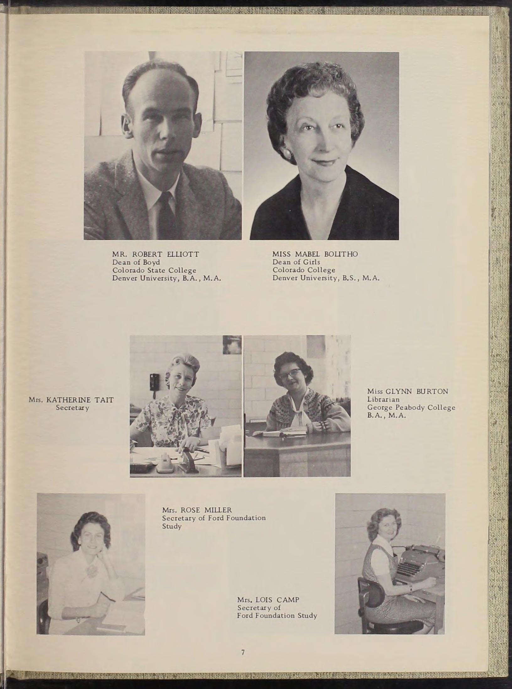 Left to right, 1st RO'N: Miss Fair banks, Mr s. Stewa rt. 2nd ROW : Mr Bishop, Mr Chapman, Mr. Herber.