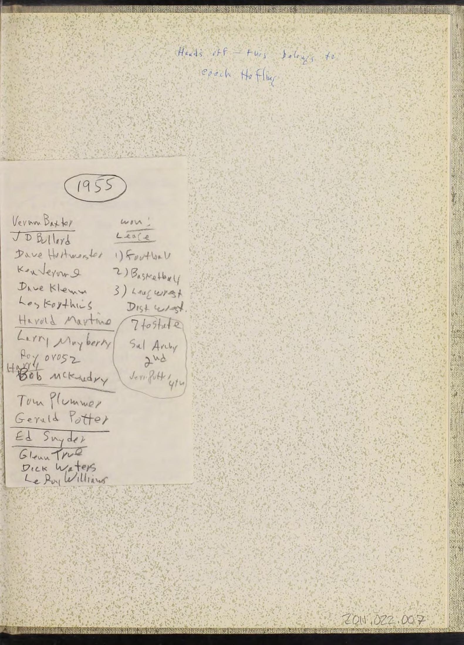 G Club 2,3,4 Demon Council 3,4; German Club 4; Key Club 4; Baseball Letter 2; Basketball Numeral 2,3; Football Numeral 2; Tennis Letter 4; Boys' Club 4