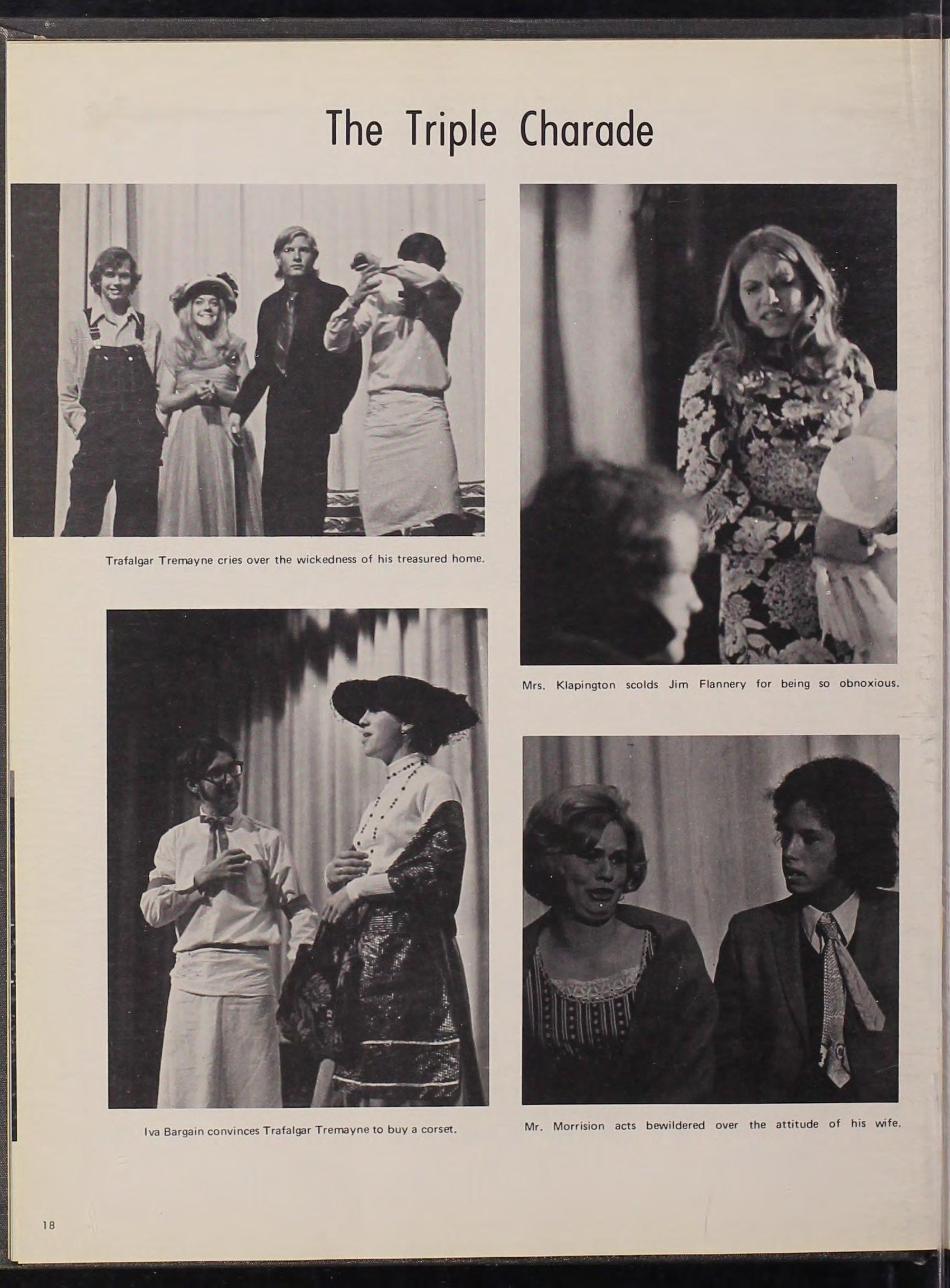 Above left-Tridettes anticipating homecoming performance Below center-Andy Sheer and Gary Baughman during a concert band show Above center-Fall marching band becomes year-round concert band. Below right- Tridettes rest after tiresome routine. Above right-Marching band in homecoming parade.