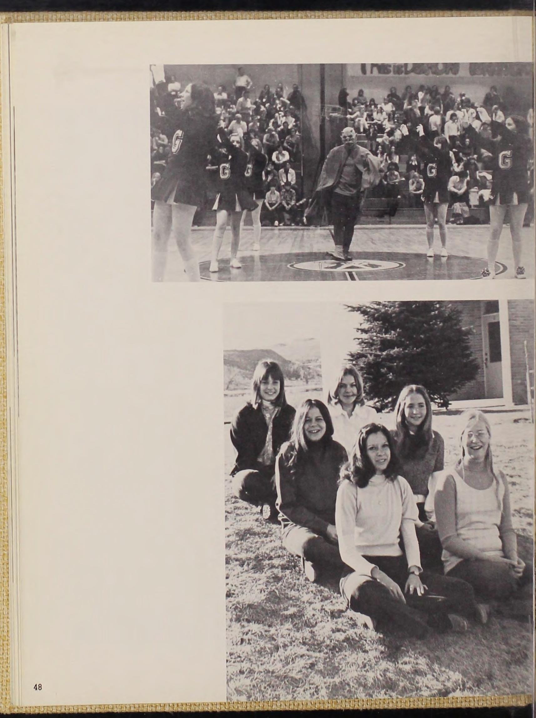 Below left-Tridettes Karla Lakey , Cheryl Dodd , Robin Fike , Susette Herrmann , Jane Williams , Terryl Lofgren Left-J V Cheerleaders : Bonnie Richner, Charlene Hewitt, Avis McDermott , Lone Franz. Below rightVarsity Cheerleaders : C,m Fraser, Sue Anderson , Laurie Henderson , Jeannie Oppenlander, Lynda Stizel