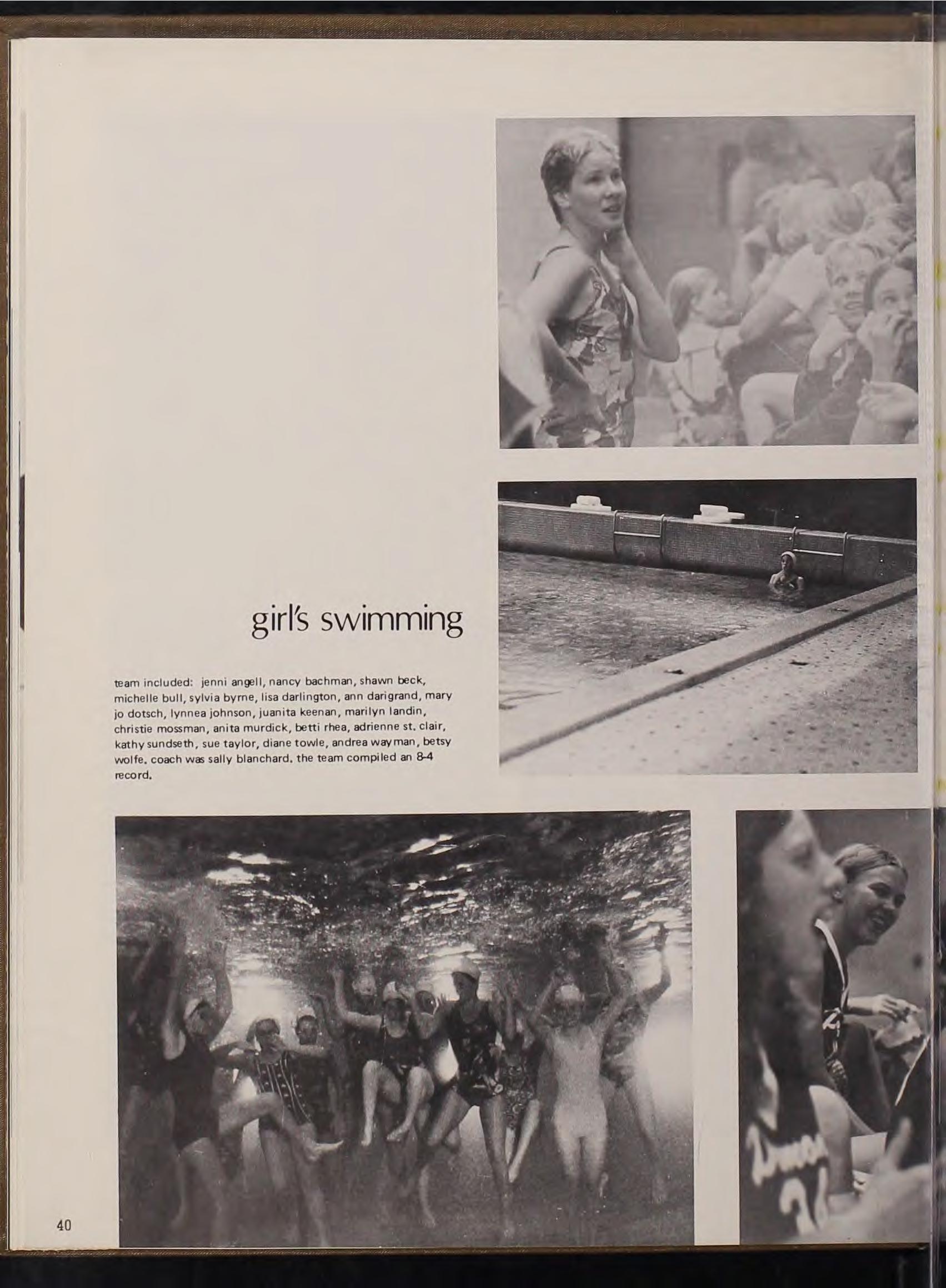 team included: Jenni angel I, nancy bachman, shawn beck, michelle bull, sylv1a byme, lisa darlington, a nn darigrand, mary jo dotsch, lynnea johnson, juanita keenan, marilyn landin, ch ristie mossman, anita murdick, betti rhea, adrienne st. clai r , kathysundseth, sue taylor, diane towle, andrea wayman , betsy \NOi fe. coac h was s ally blanchard. th e team compiled an 8-4 record.