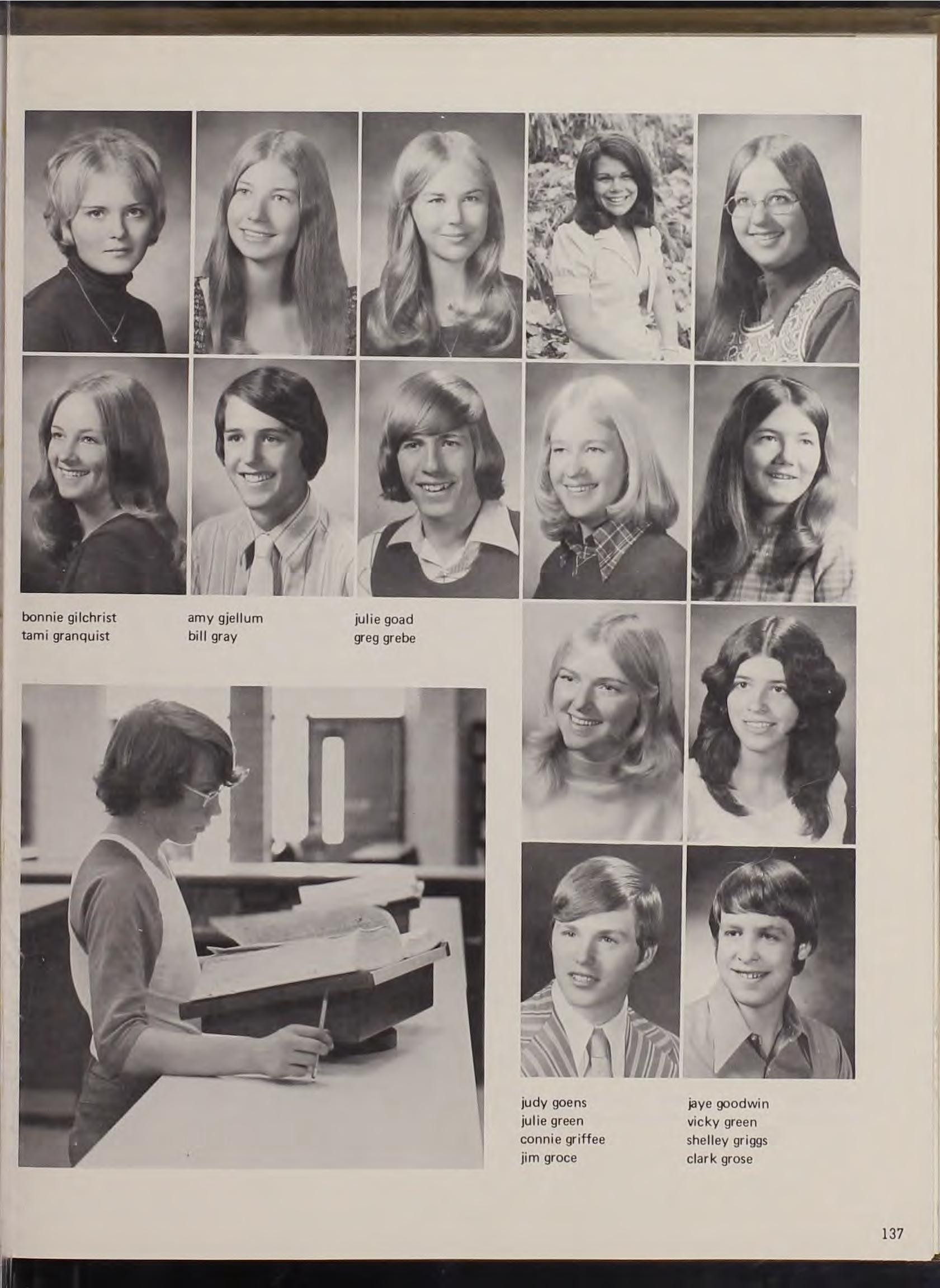 below left-susan pless,nger , below nght-stan hergenreter , bottom left-cheryl goings , bottom right - bob holley , theater opposite page top left-sandy nat ions , top nght - dav1d farrar , speech bottom left-dick byrne , bottom right - sally blanchard , read ing