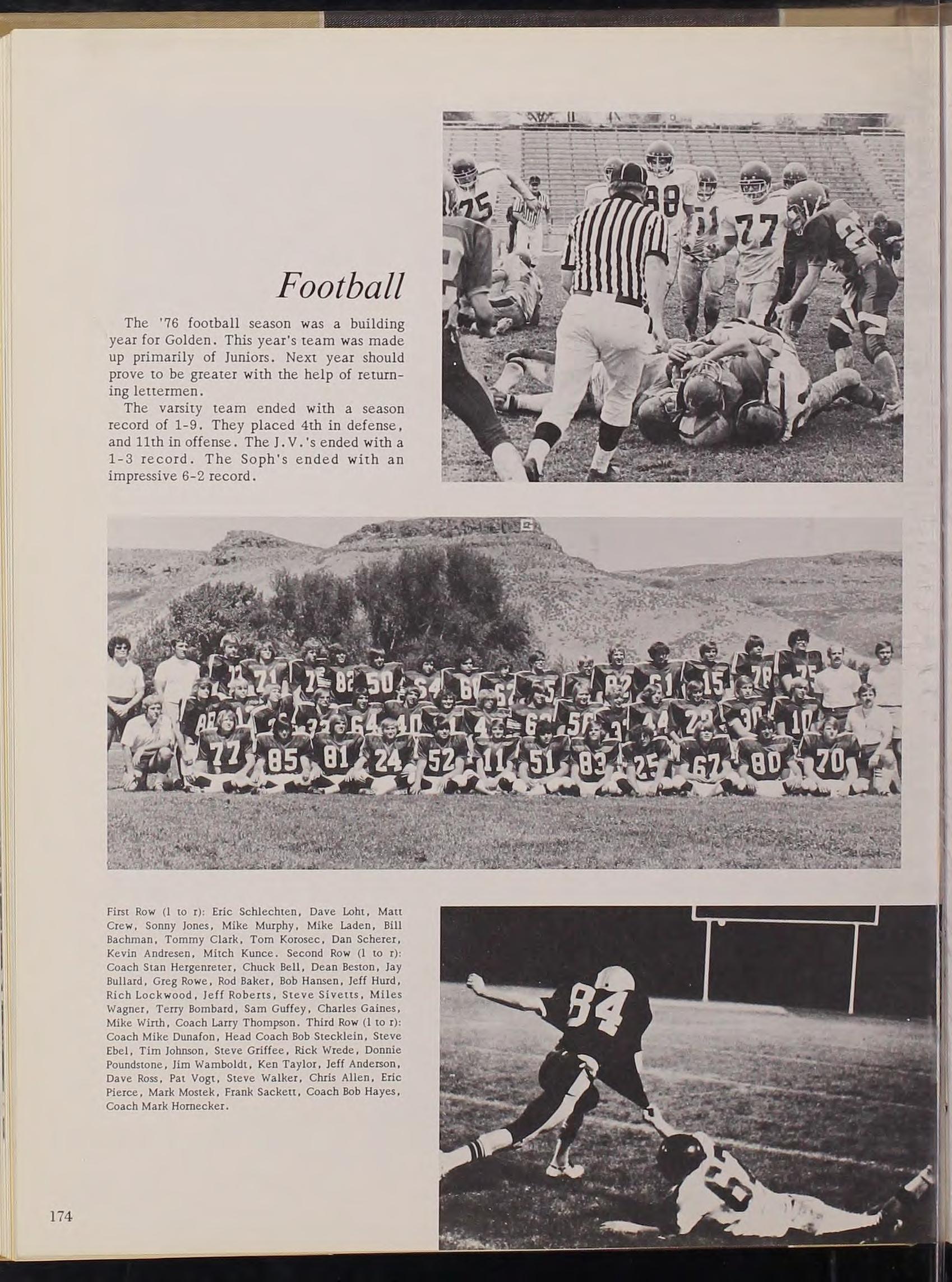 206 '1 ' R A VE l .1 A G E N C Y COR NEA 12~- 6 WAS I NGTON GOl..OEN COl..OAAOC TURE OSC A RSON TE l.. 2/9667 I GO L DEN AU TO DARTS COMPLETE A UTO M OTIVE MA C H INE SHOP 27Q- 100 2 16948 SO GOL.OEN RO GOLDEN COLO 804 01 Valspar Paints • Pa i nt Suppl ies - DeGraco Industrial Coatings GOLDEN'S VALSPAR PAINT and GLASS, INC. 2450 East Str ee t - Gold e n , Colo 80 401 Phon e 279-782 4 Ed Bettg e r DITZLER AUTO PAINT Auto Glass and Windo w Glass Installed M irror s Irv Port er Fine clothina since 1893 Out South , Next to bowling alley FAMOUS BRAND CLOTHING FOR MEN I WOMEN & BOYS 13th & Arapahoe 279-2940 DENVER--16th & Welton • . • 292-3650 BOULDER--Broad w ay at Pear l • • 442-8570 SOUTHGLENN--6911 S. Univ. Blvd • . . 798-3562 Fleur -de- l i s Flowers ( beneath Golden ' s arch ) Co rsages , Arrang ements , Fru i t Baskets, T errar i ums , H o use of Bauer Cand y Lenno x Candles We w i re flowers anywhere ! An y T i me ! An y Occasion ! 1113 Washington Avenue Golden , Colorado Telephone 279 -7671 Congratulations to the Class of ~77' DEAN STUDIO It's our pleasure to serve Golden High photographically 1111 Washington Ave. SEBRING n o r C!l!I ION ,t L. H I. lt o c• ONIN,O r ,.,,,, , ro App oi nfmenf suggested 279-6172 • DEL'S • TONSORIAL Good Luck to C l ass of '77 ,,,,,,,, PARLOR t: 1210 Washington Ave . Go l de n, Colo 80401 I