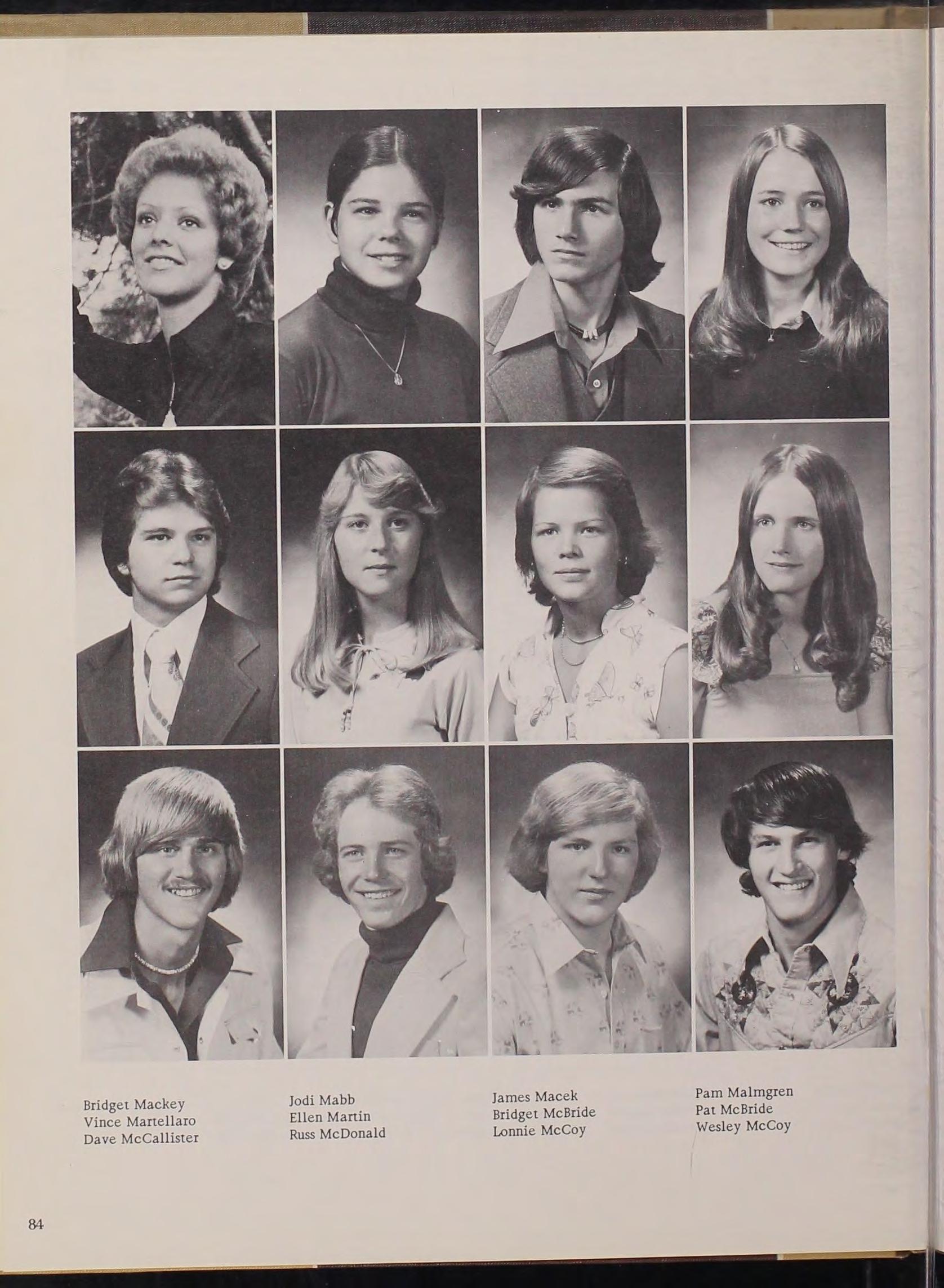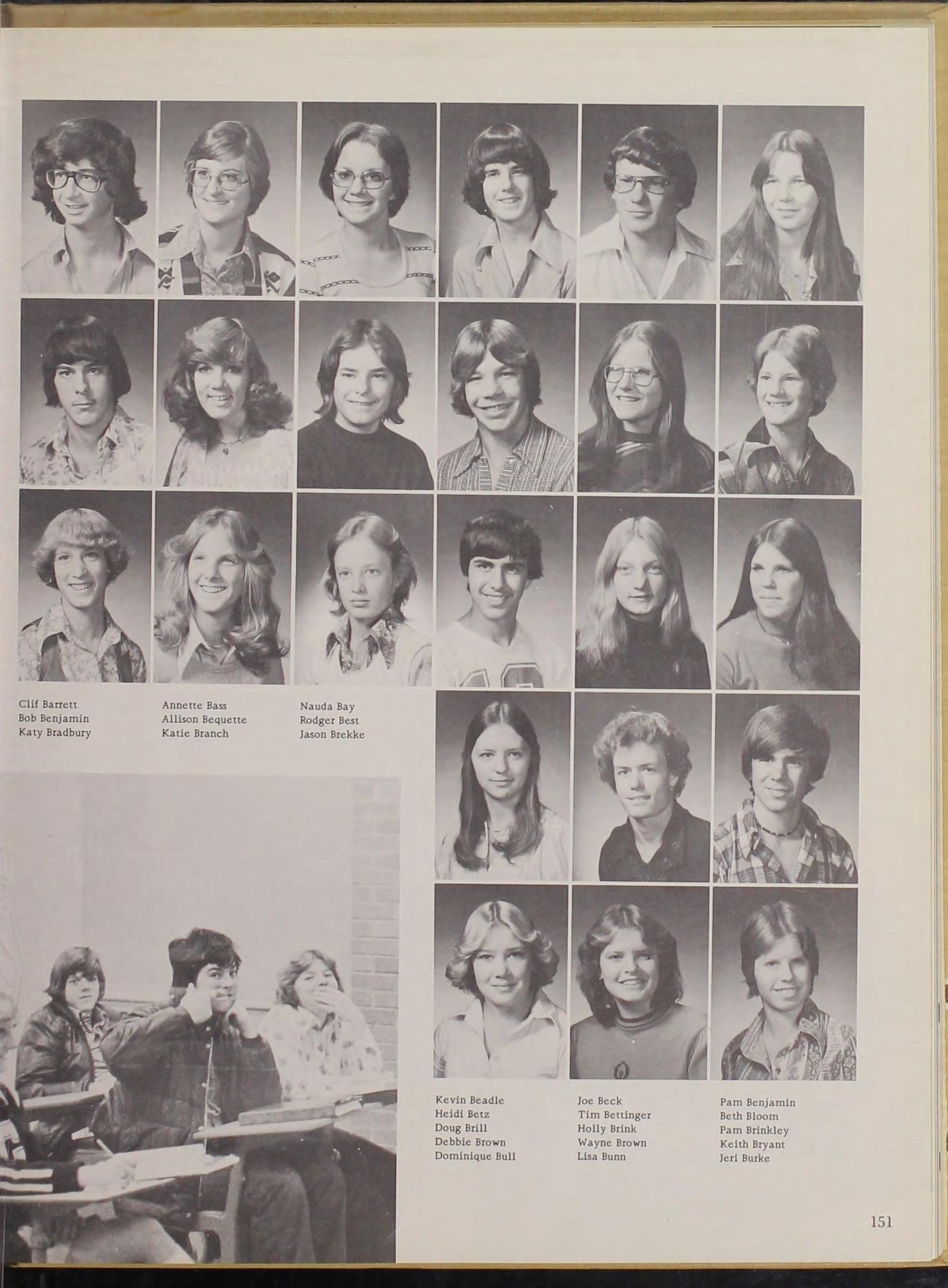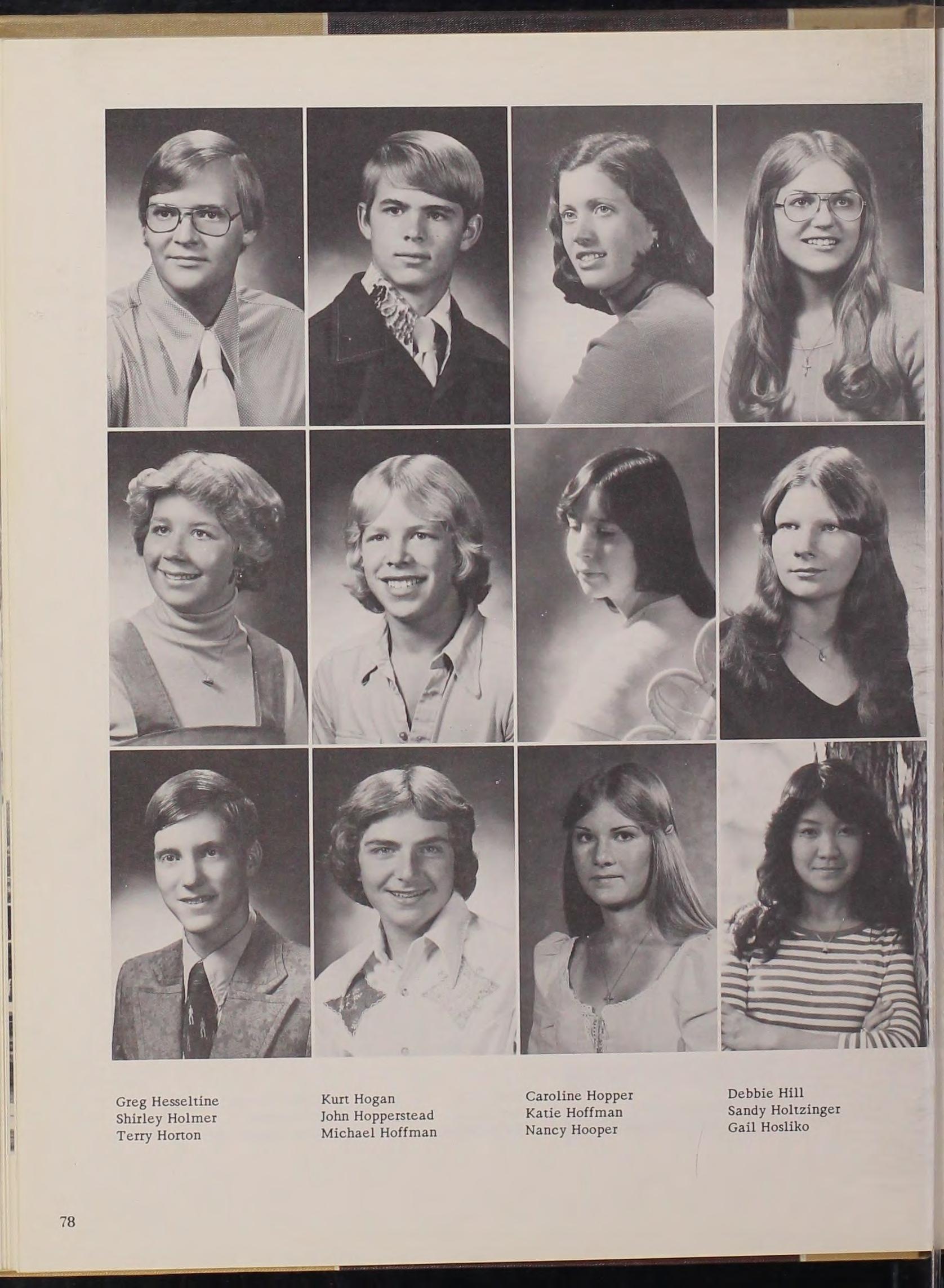 Varsity Volleyball team included Front row-Jenny Scott, Cheryl Coronado, Laurie Welch, Kim Knox, Martha Hutchinson, Cathy Nelson, Karen Press, Deb Durbin, Gay Rittersbacher, Julie