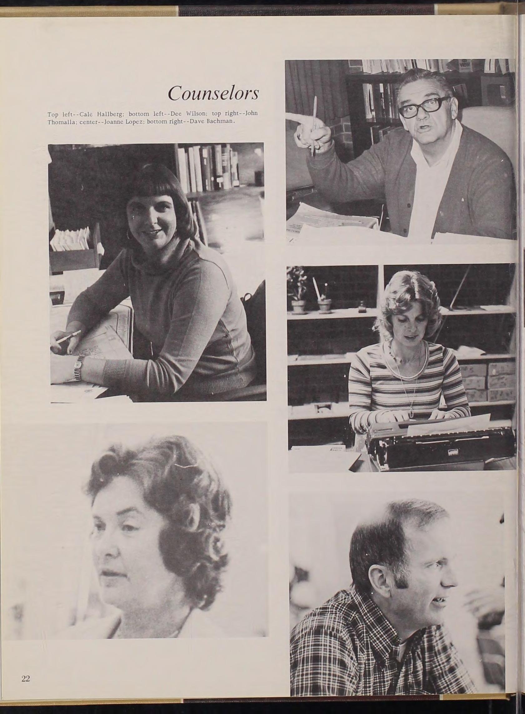 Top left--Mary Lou Mosley, Media Specialist, Don Johnson, Media Specialist· Vaunda Goode, Production, bottom left--Ann Hansen, Counseling Center. Pat Payne, Attendence Office, bottom right- -Gen Myers, Bookkeeper; Jen Domenico, Prtn. Sec • Doris Blain, Main Office