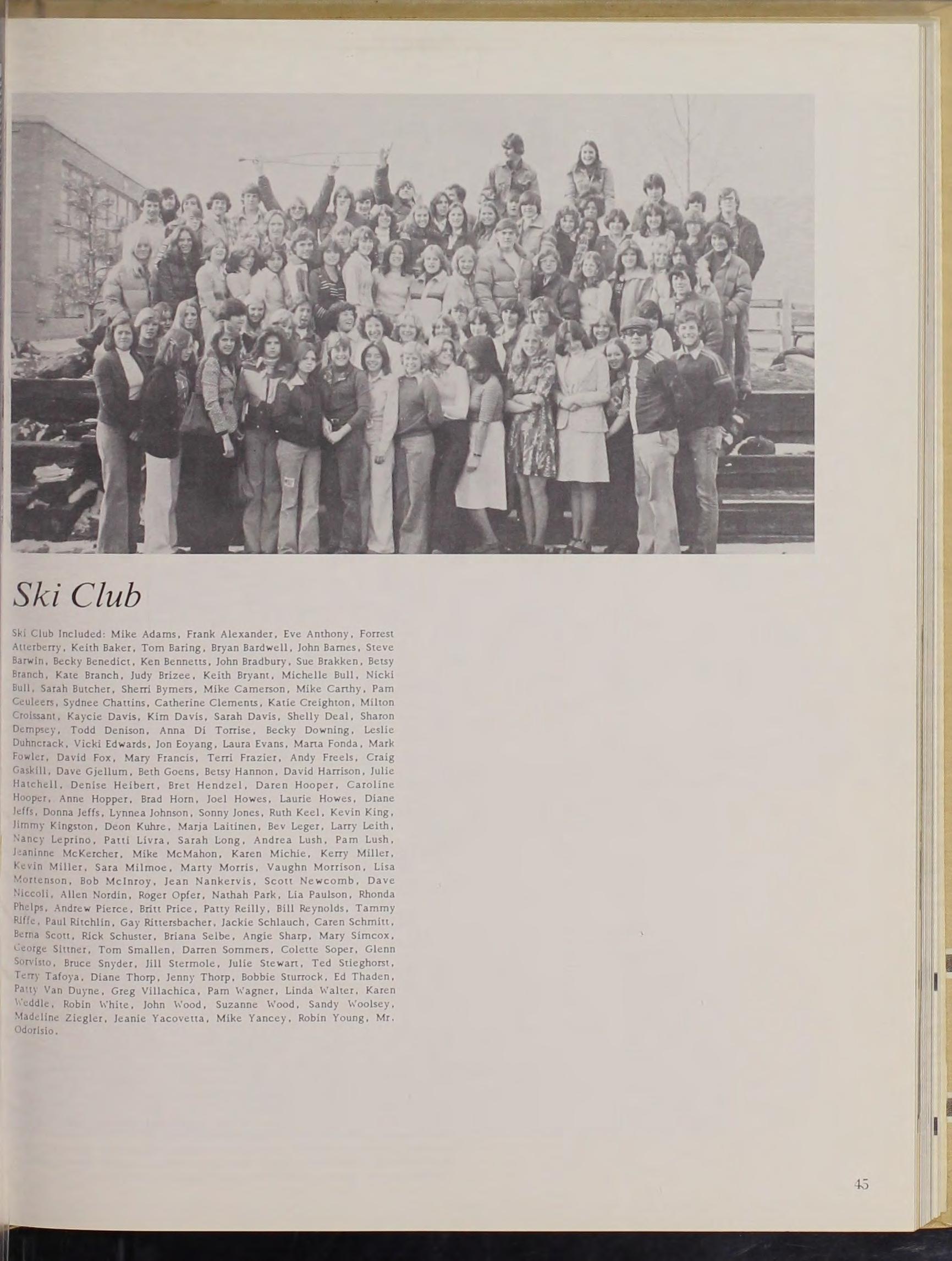 Ski Club Included: Mike Adams, Frank Alexander. Eve Anthon}', Forrest Allcrberry, Keith Baker, Tom Baring, Bryan Bardwell, John Barnes. Steve Barwln. Becky Benedict, Ken Bennetts, John Bradbury, Sue Brakken. Betsy Branch. Kate Branch, Judy Brizee. Keith Bryant. Michelle Bull. Nicki liull, Sarah Butcher. Sherri Bymers. Mike Camerson. Mike Canhy. Pam Cculeers, Sydnee Chattins. Catherine Clements, Katie Creighton. Milton Croissant, Kaycie Davis. Kim Davis, Sarah Davis, Shelly Deal. Sharon Dempsey, Todd Denison. Anna Di Torrise. Becky Downing, Leslie Duhncrack. Vicki Edwards. Jon Eoyang. Laura Evans. Mana Fonda. Marl< Fowler, Da\"id Fox. ~iary Francis, Terri Frazier, Andy Freels, Craig Gaskill. Oa\e GJellum. Beth Goens, Betsy Hannon. Da \' id Harrison. Julie Hatchell, Denise Heibert, Bret Hendzel, Daren Hooper. Carolin e Hooper, Anne Hopper, Brad Horn. Joel Howes. Laurie Howes, Diane h!ffs, Donna Jeffs. Lynnea Johnson. Sonny Jones, Ruth Keel. Kevin King, Jimmy Kingston. Deon Kuhre. ~iarJa Laitinen. Be\' Leger. Larry Leith. Nancy Leprino, Patti Livra. Sarah Long. Andrea Lush, Pam Lush, J .aninne 1'icKercher, Mike McMahon, Karen Michie. Kerry Miller, • t:\ In Miller. Sara Milmoe. Marty Morris. Vaughn Morrison. Lisa Mortenson. Bob ~iclnroy. Jean Nankervis. Scott Newcomb. Dave Niccoli, Allen Nordin, Roger Opfer, Nathah Park. Lia Paulson, Rhonda Ph lps, Andrew Pierce. Britt Price, Patty Reilly, Bill Reynolds, Tammy Riffe. Paul Ritchlin. Gay Rittersbacher. Jackie Schlauch. Caren Schmitt. B.:rr a Scott. Rici< Schuster. Briana Selbe, Angie Sharp. Mary Simcox. l 1:!orge Sittner. Tom Smallen. Darren Sommers. Colette Soper. Glenn Sol'\ lsto. Bruce Snyder, Jill Stermole. Julie Ste wan. Ted Stieghorst. Terr) Tafoya. Diane Thorp. Jenn}' Thorp. Bobbie Sturrock. Ed Thad e n. Pa l) Van Duyne. Greg \'illachica. Pam \,' agner. Linda \,'alter. Karen \ cddlc, Robin \,'hite, John \,'ood, Suzanne \,'ood. Sandy \,'oolsey. \lad line Ziegler, Jeanie Yaco\"etta, Mike Yancey. Robin Young, Mr. Odorlsio.