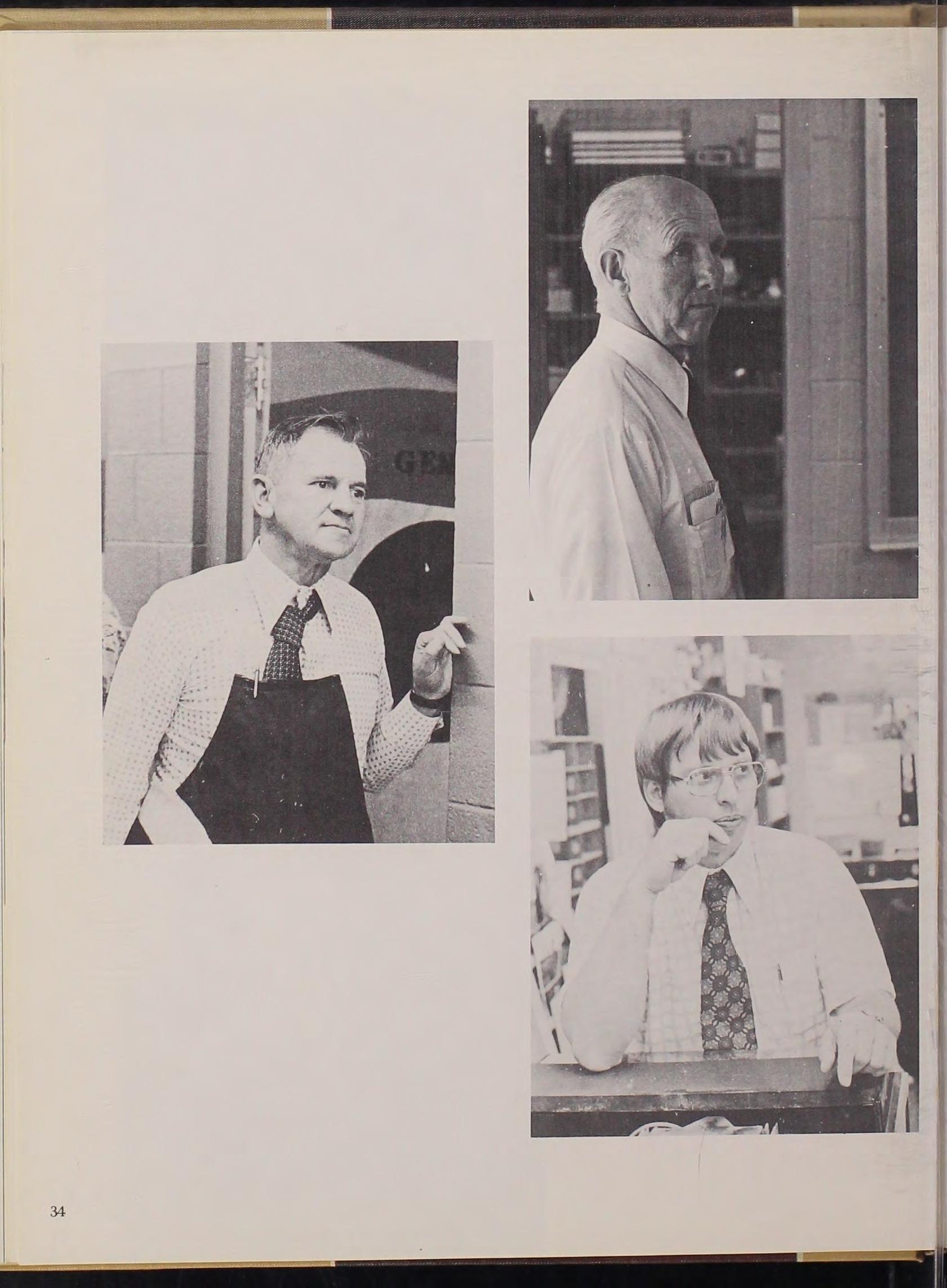 Above--Dewain Wood (world hist.), Bob Kinsey (Am. hist.), Roger Myers (world hist.), Mike O'Dorisio (world hist.), Tracy Fifer (world hist.): left--Chuck Herring (Am. hist). Opposite page: top left- -Bob Stokes (Am. hist.): top right--Roy Daugheny (social science): bottom left--Mike Mathis (Am. hist.); bottom right-Sam Petroff (Am. hist.).