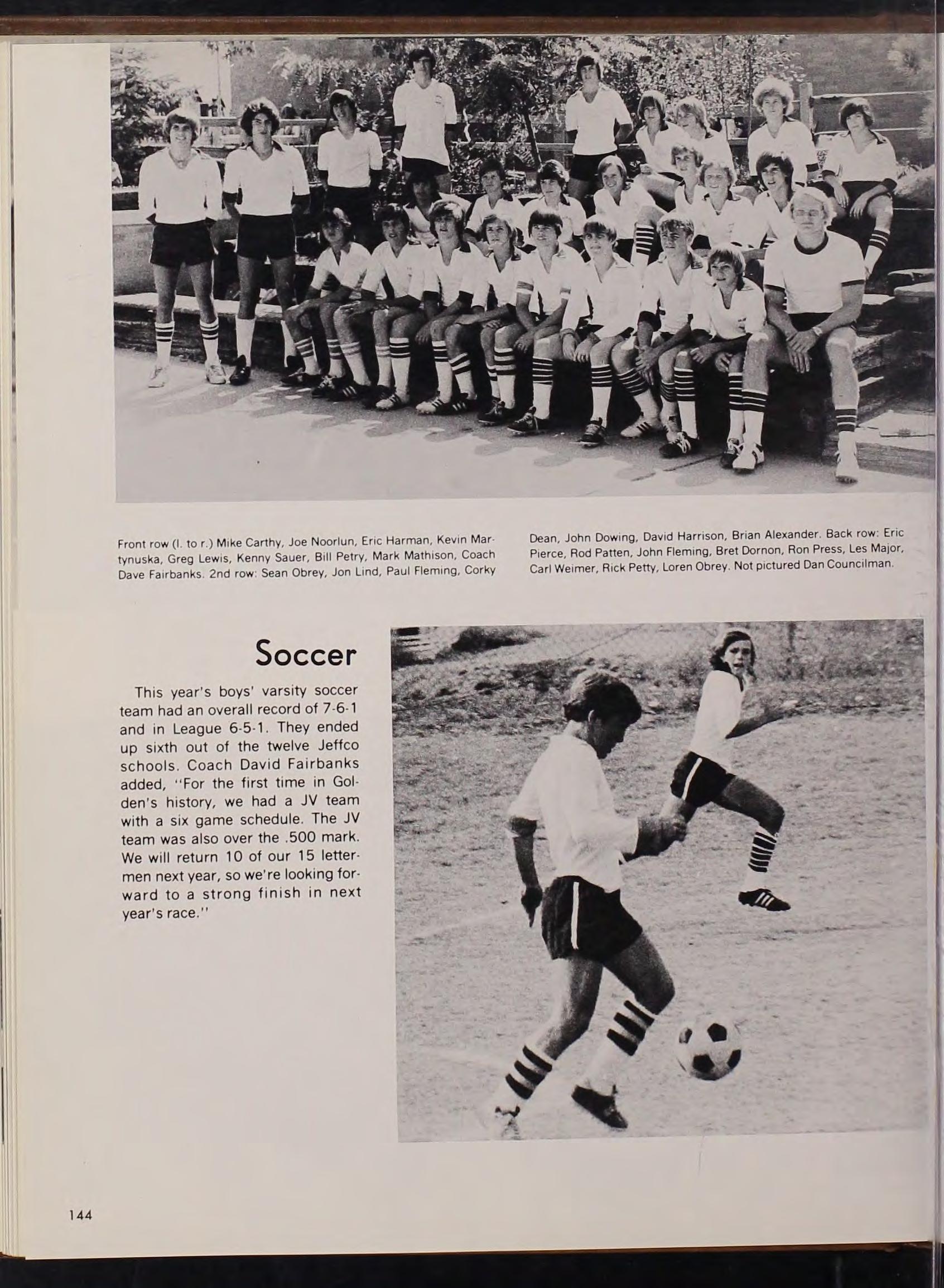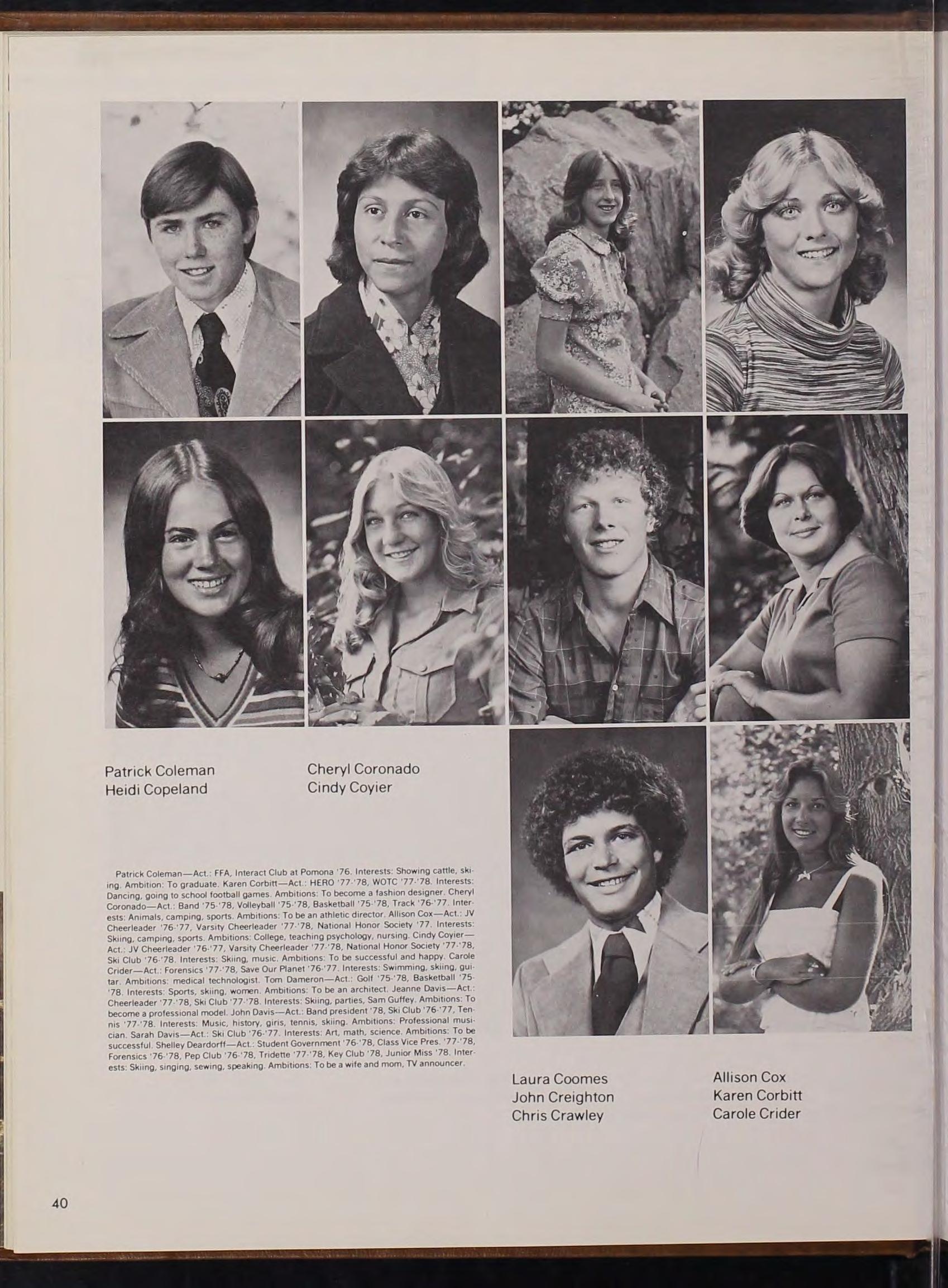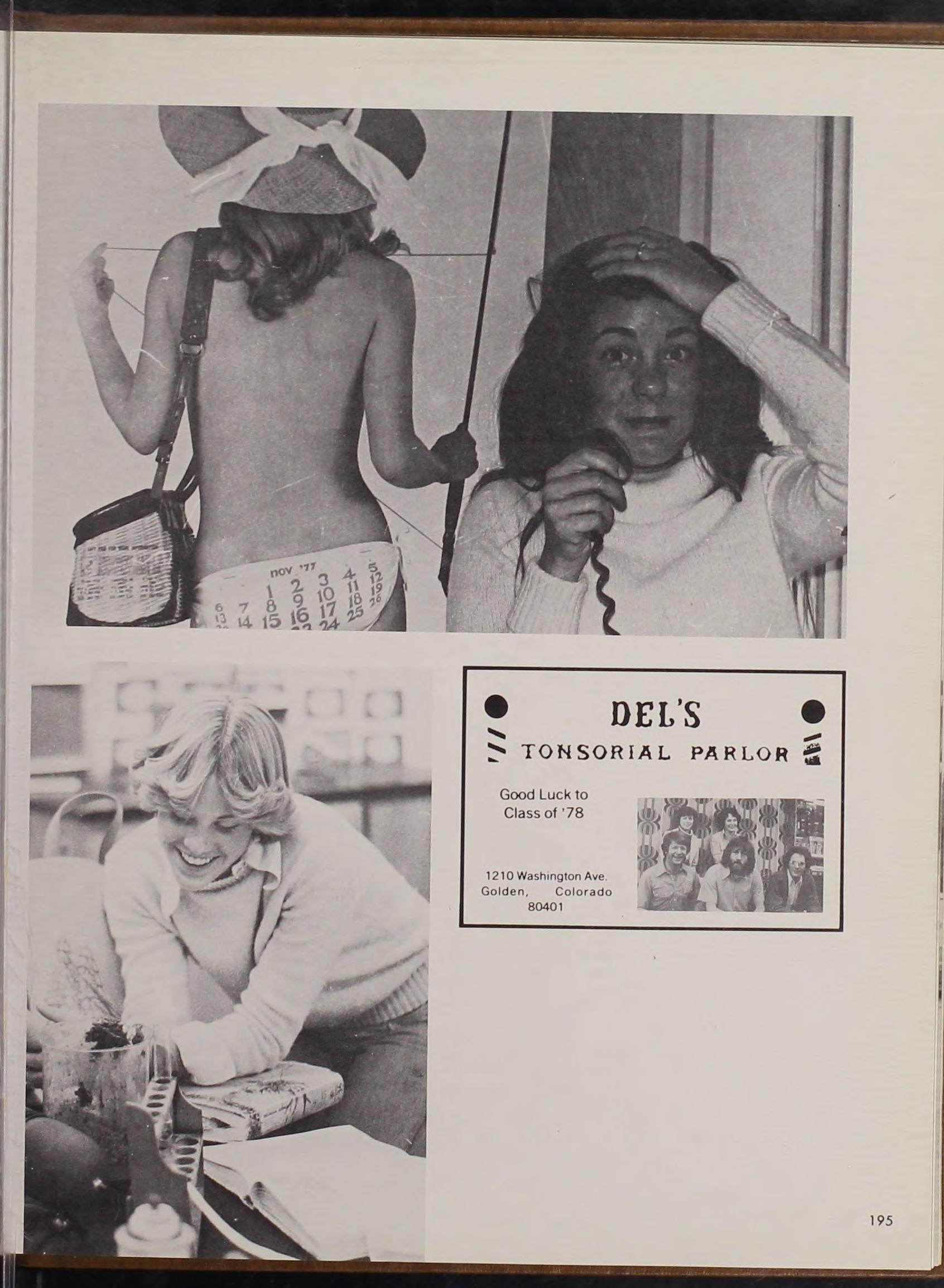 The sophomores proved victorious 1n the float compet1t1on and, despite Golden's loss to Arvada 6 -23, the Demons failed to lose their spirit as the Homecoming week ended with the success of the Homecoming dance at the Mines student center. Music was provided by "Airborne" Reigning over the Homecoming week were Queen Debbie Tarbox and her court Lisa Cane and Jeannine Davis Junior and sophomore attendants were Eve Anthony and Tammy Reeves.
