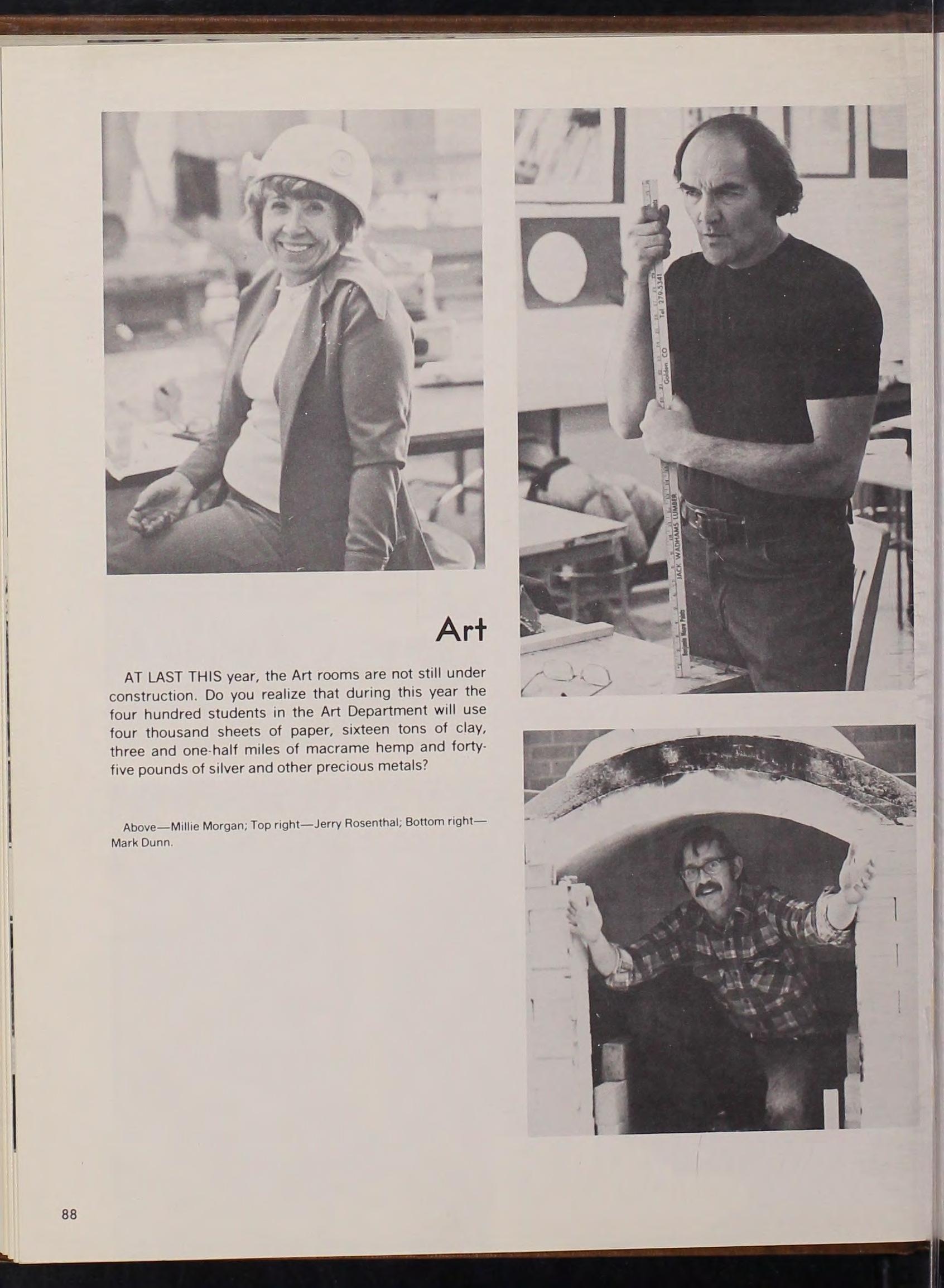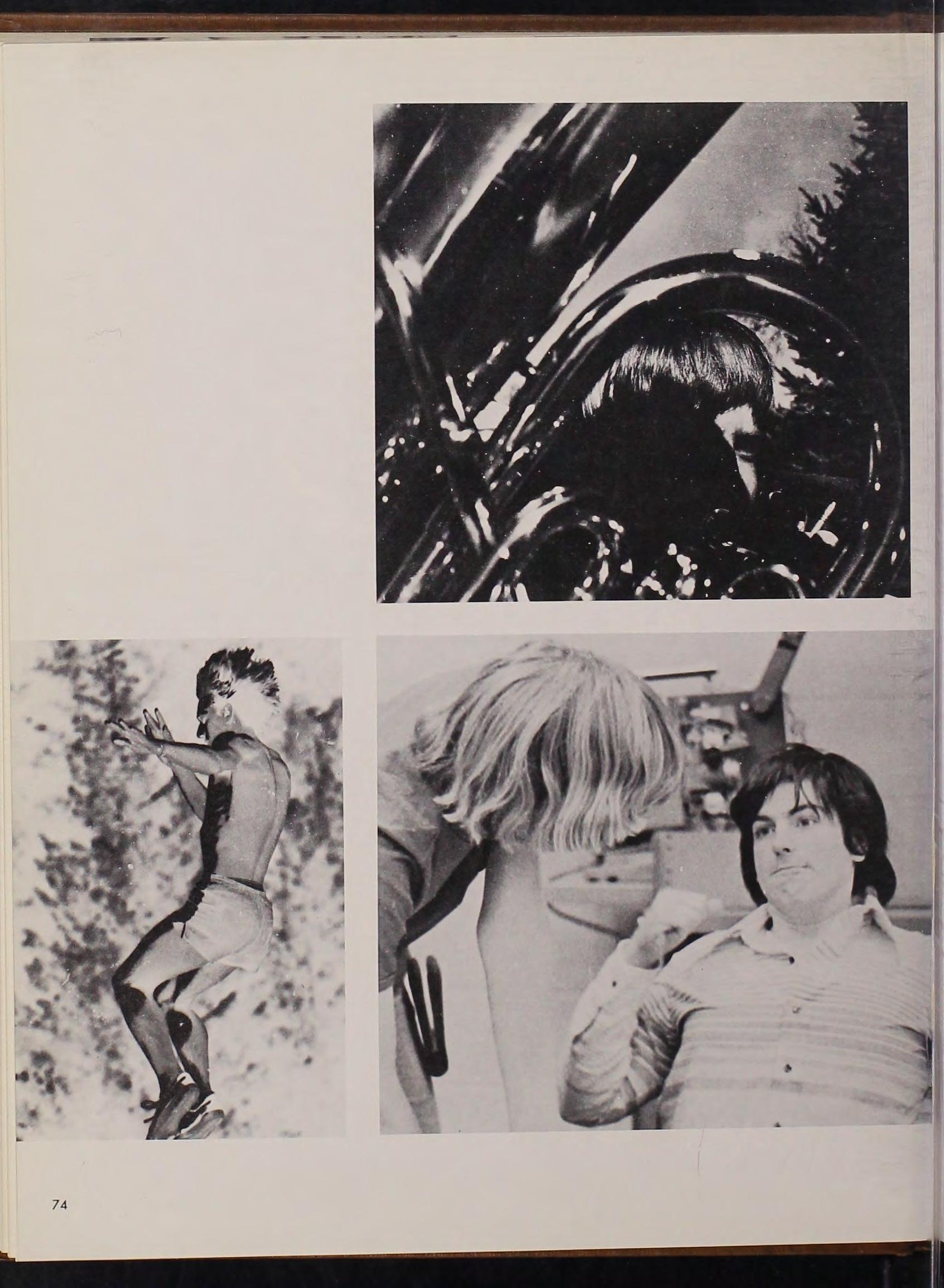 Ro c k Club 's main act1v1t 1es consi s t of 1nvest1gat1ng and prospecting f o r minerals and gemstones, and then c utting and pol1sh1ng the treasures we find So far thi s year, the s tud ents hav e see n petrified tree trunk s, dinosaur tra c ks, a m1nera I sp ring , fos sil animals and plants , agate depo s it s and fault caves Rock Club members in c lude Keith Bryant , Davin Larson , Paul Over, M att Cow ell, Sarah Cowell