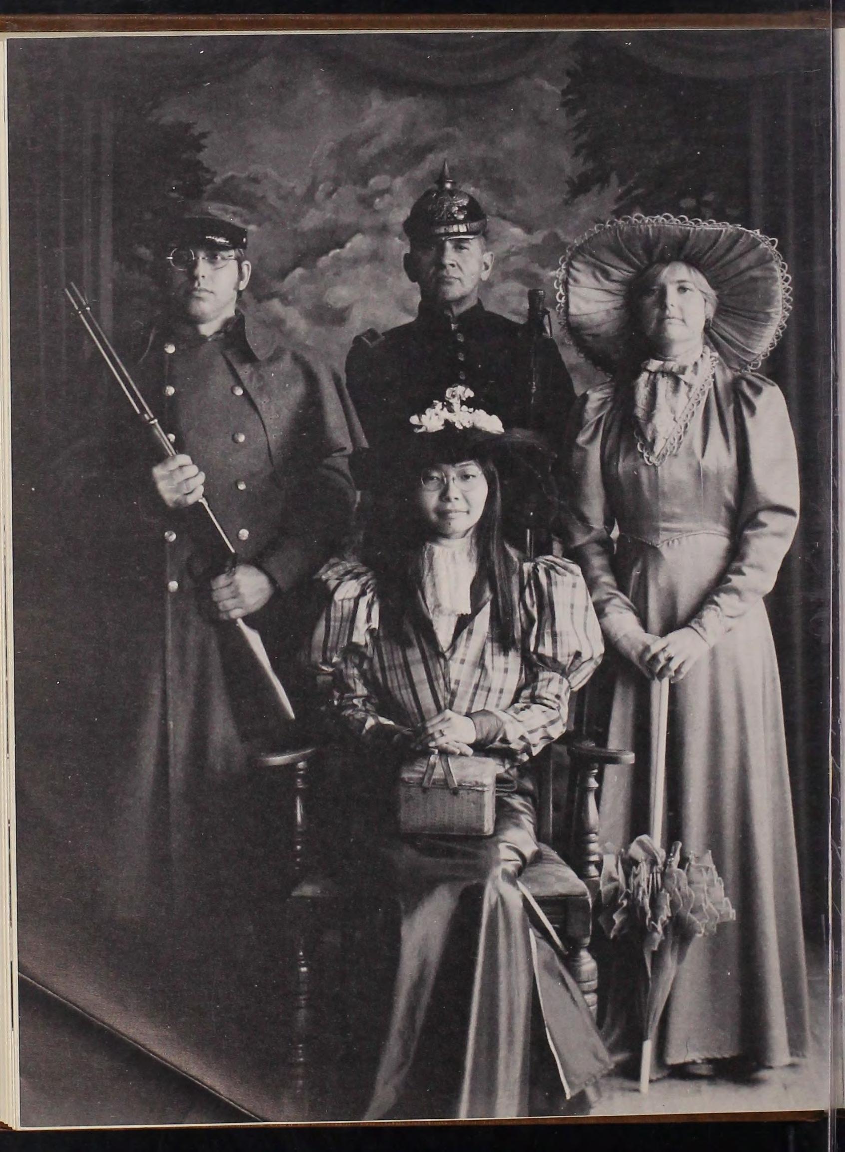 The going wa s r o ugh th is year f o r the y earboo k s taff In spite of the s harp r oc k s and eddie s en co untered al o ng th e tnp, we fa s hioned o ars fro m old limbs and f org ed o n Occ as ionally, h o les were patc hed haphazardly until we co uld find an old inner tub e o r h o t water bo ttle t o d o till we mad e port It wa s a goo d c rew, and tho s e that paddled pulled the rest. Our voyage didn ' t fl o under