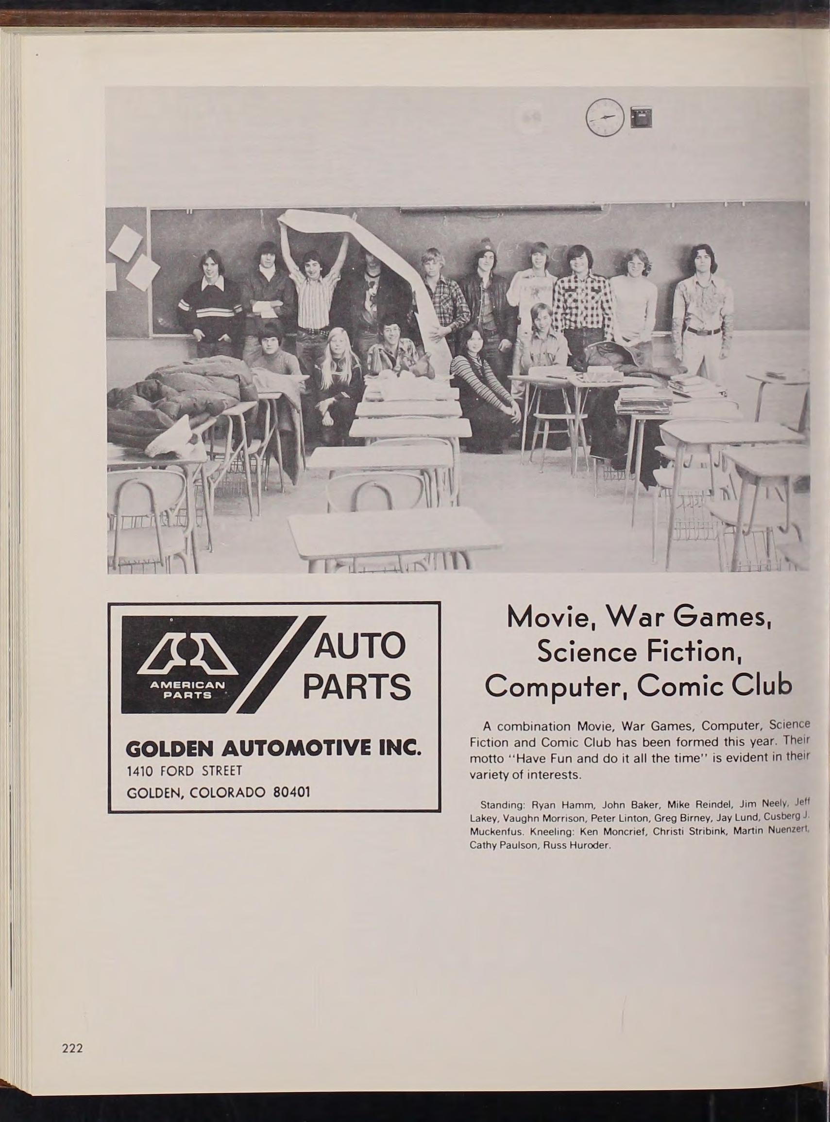 A comb1na t1on Movie, War Games, Computer, Scien ce Fiction and Co mi c Club ha s been formed this year Their mono " Hav e Fun and do it all the time " 1s evident 1n then variety of interests