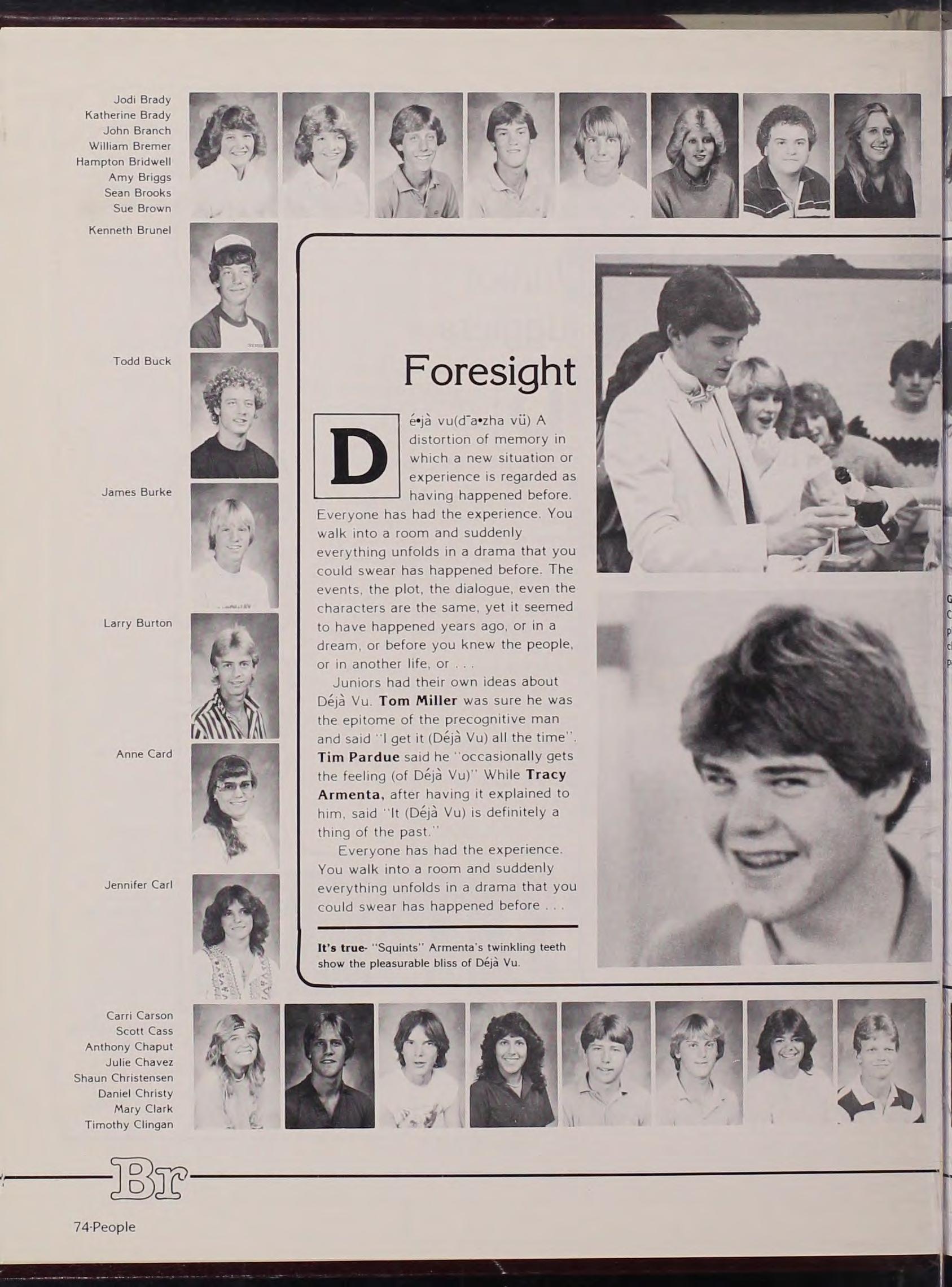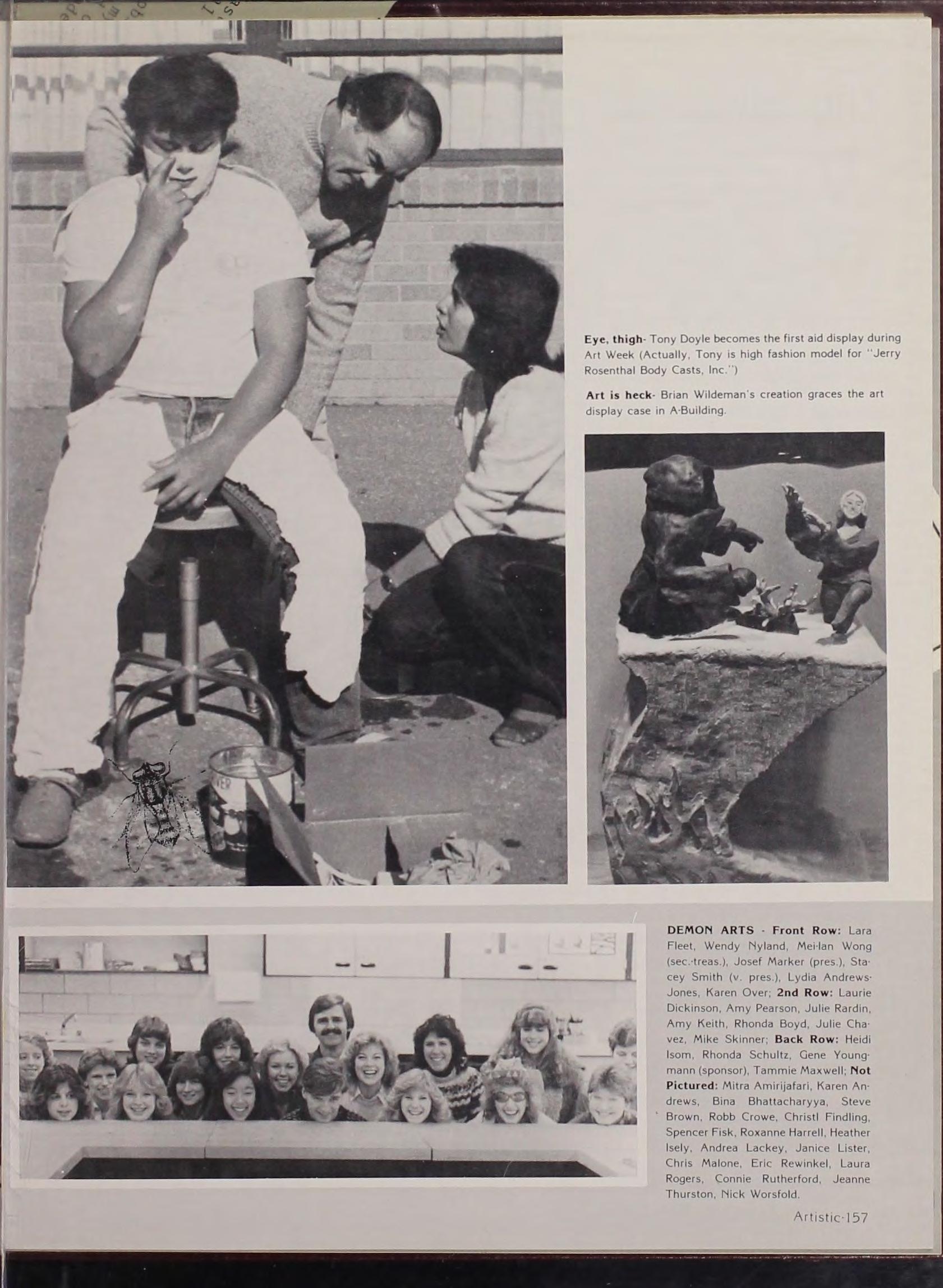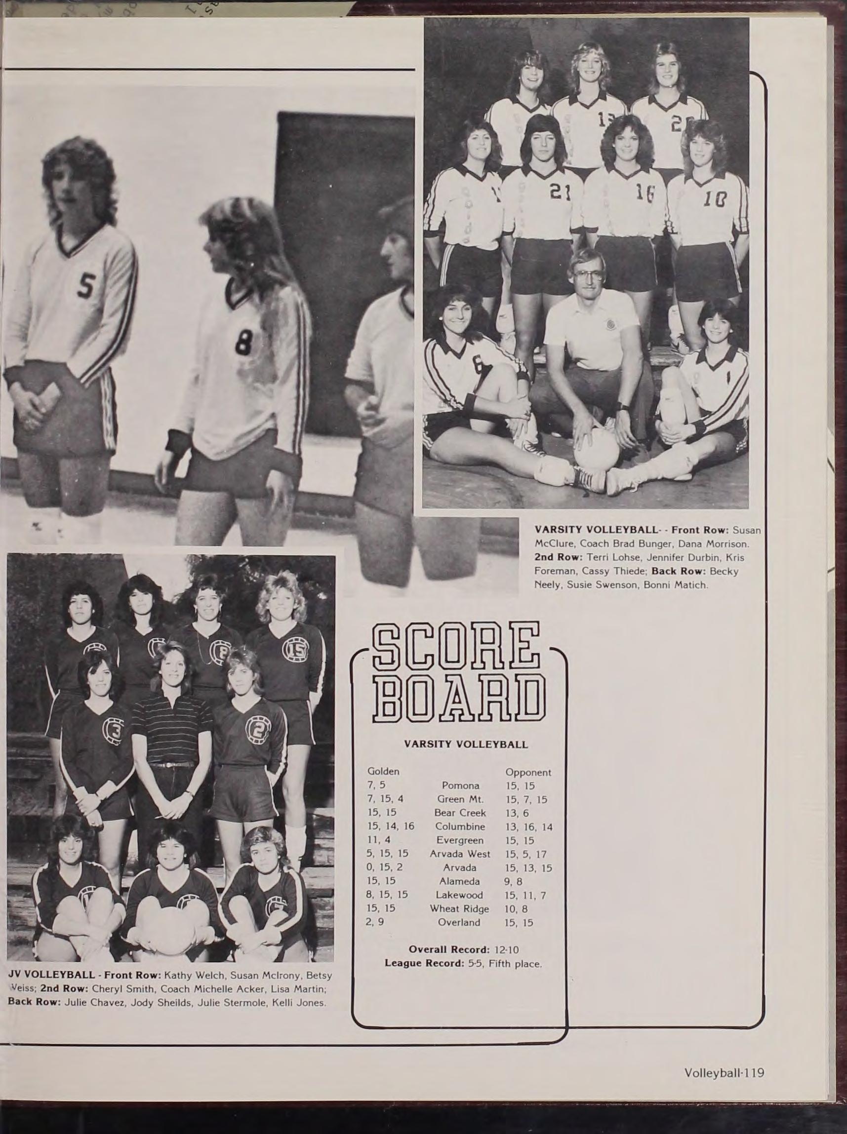 The middle of the year came with Winterfest, Spirit Week, and other fun things Snow Skiin ', ice ska ting at the lake in Evergreen and Xmas time in Larimer Sq uare. It see med that every night durin g the year there was some thin g to do Volleyball games , plays, band and choir concer t s , or just havin g a bla s t with "the ga n g ." Prom finally seemed to bring about th e end of the year . WOW! People exci t ed months before thi s wonderful night. The fi r st s tep of this adventure was findi n g a date . IMPOSSIBLE !!! The n out to raid formal shops for tuxes and dresses Next came the dinner and finally the dance . Everyone looked g reat. (Why didn't I look that goo d for schoo l pictures?) Probab l y the most wonderful weekend ever