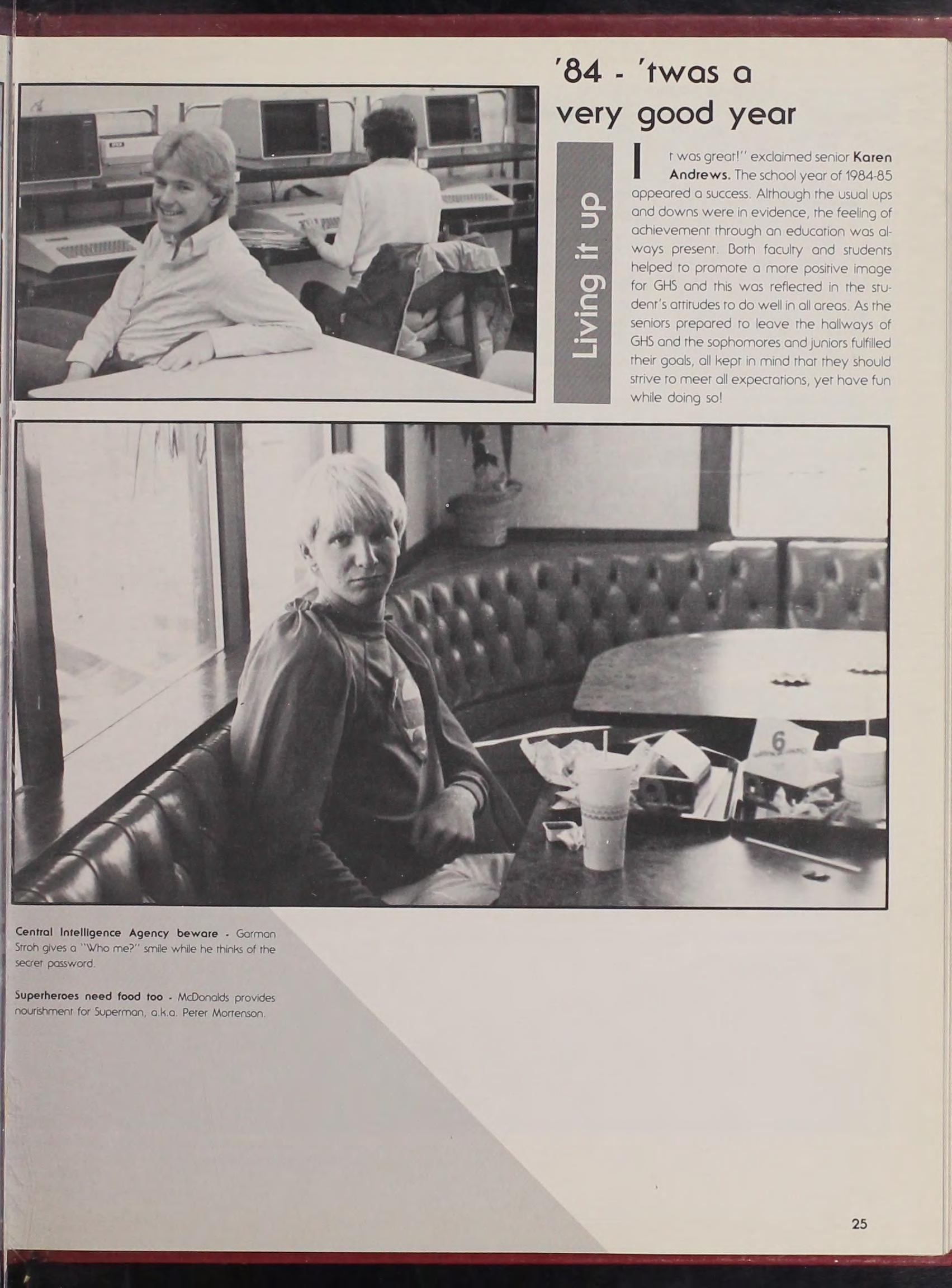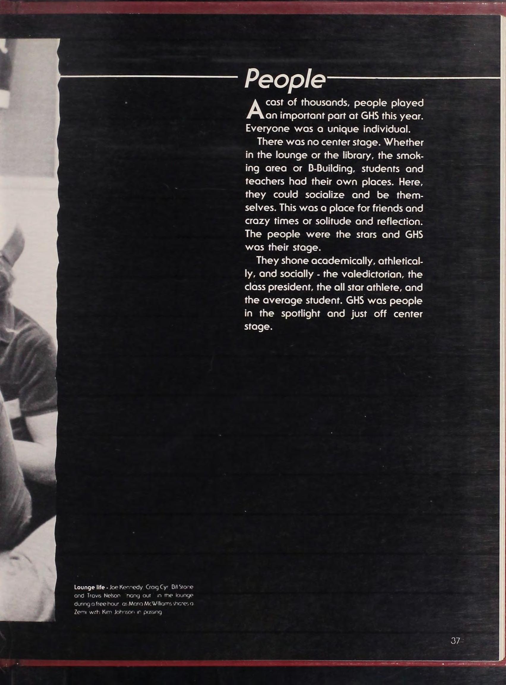 Like roses ofter rain, each one 1ndiv1duol, rhe srudenrs or GHS were so un1oue thor walking down the halls was on "experience" in irself The most popular hair sryle, wosh-n-wear, was os easy as possible There were a few, espeaolly girls. thor were brave enough to experimenr with color