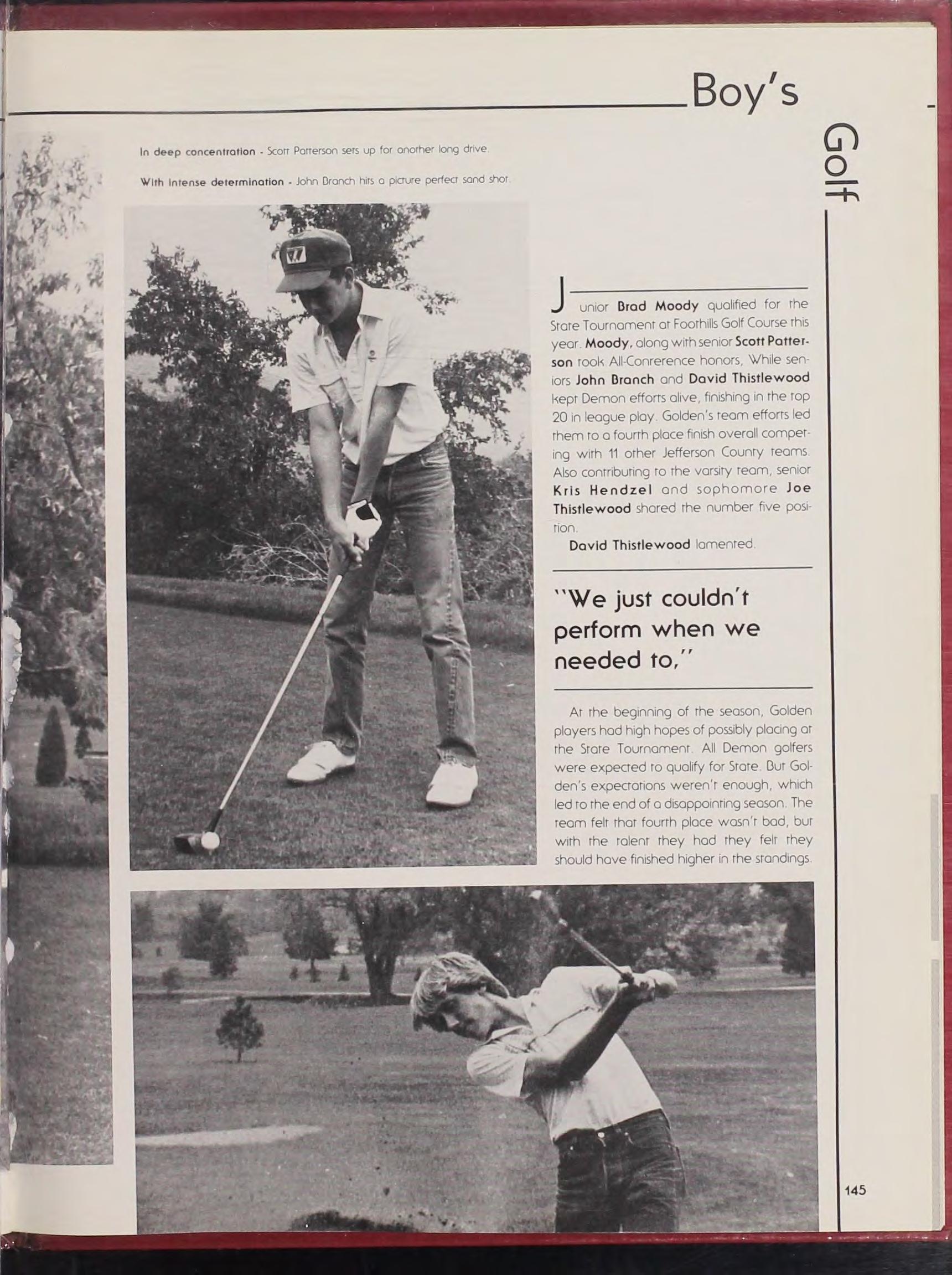 Where ' s the creek ? Dunng o second hour gym doss, Mo~ Heffington orremprs ro hone up hlS golf skills Whor skills"