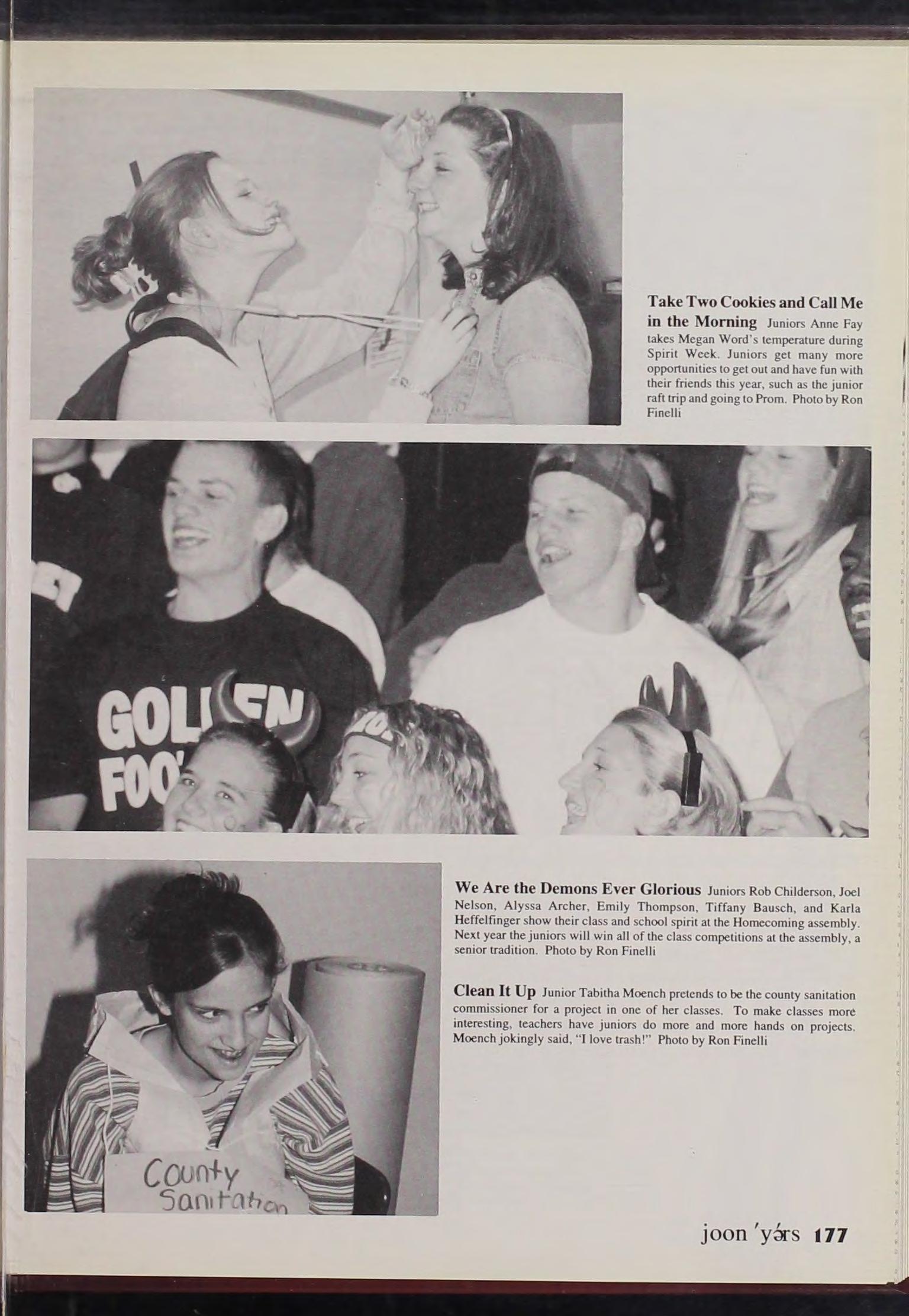 The rapid, the rough , and the wild. The '96 Junior Raft Trip s are beyond normal. Four day s wer e spent exploring the Yampa Green River in Colorado It is basically s urvival of the fittest. Food is divided up between groups and ha s to l ast the whole trip Senior Tom D u ster was voted rafter of the year. Intere stingly enough seniors Kris te n Versaw and Amiee Hoo g h eem hiked from the top of the canyon to the bottom where the rest of the r afters were. The Junior Raft Trips are fun and exciting times for each class to grow and unite. Teamwork, i s an essential and without it , the group co uld never accomplish the feats that lie before them