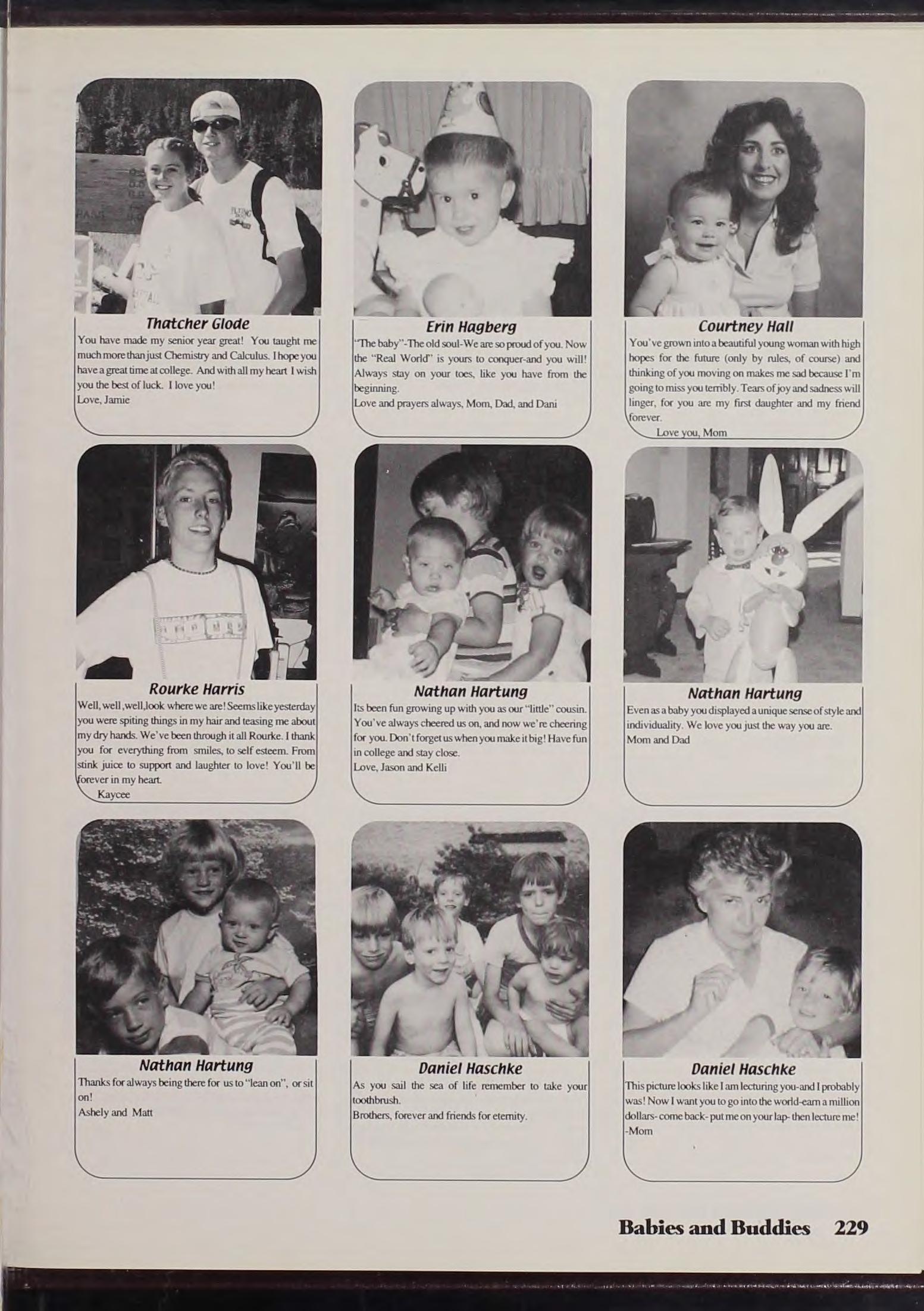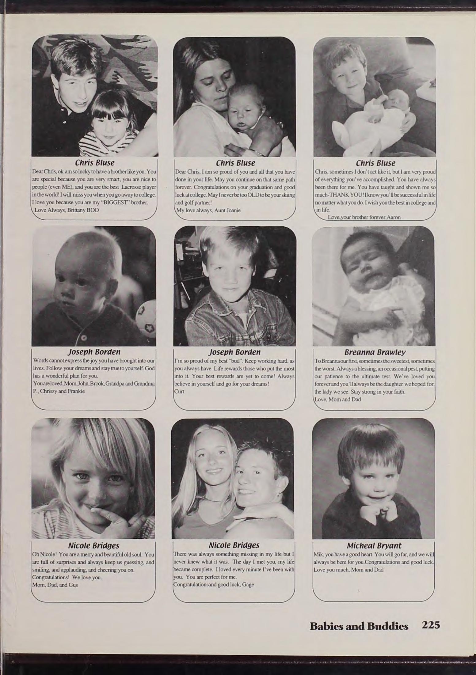 Pea ce out to all the others : Stef with an F, the twin s and Barker We day with yo ur great per so nalitie s and loo ks. To the brotha 's, try not to party too mu c h in co ll ege... ha , that was funny . To all the little people in yearbook, good lu ck . Without us, next year is going to be a blast. Thanks to Kelley for making us lau gh every tim e you t alk, pea ce. Remember to always s ave the babies and buddies money for scre\v-up s.