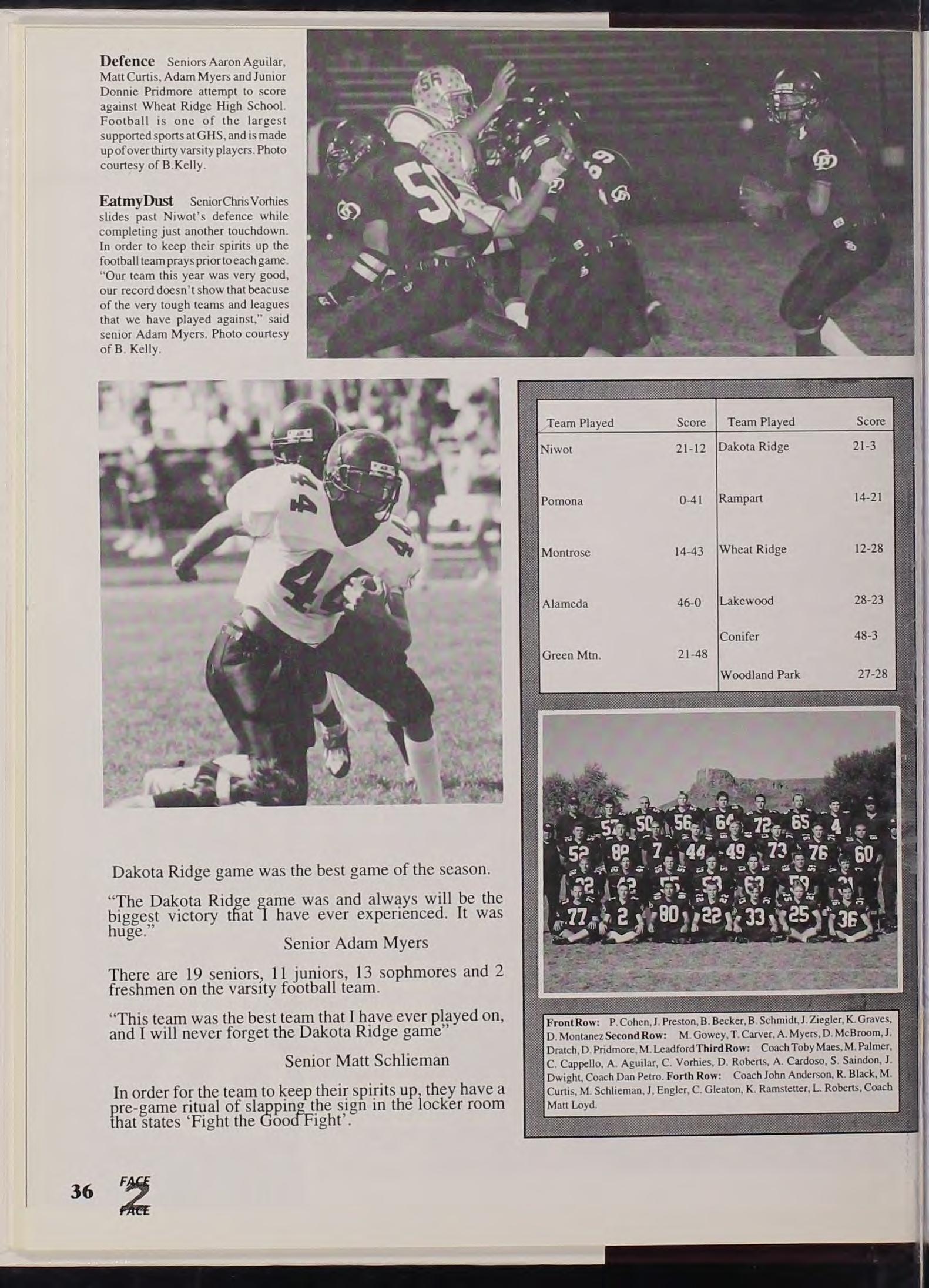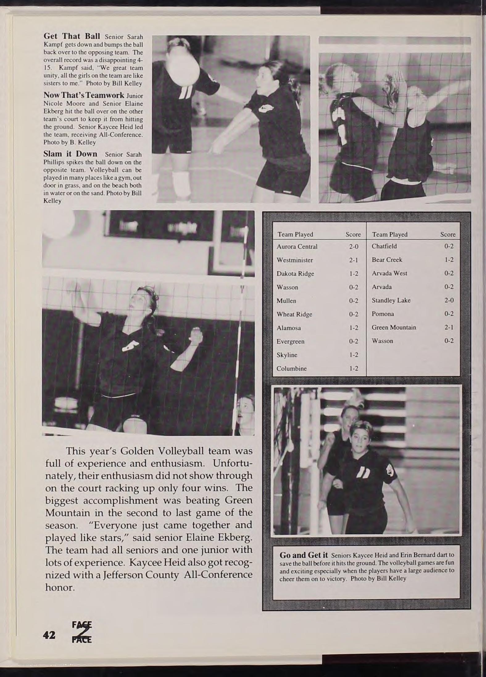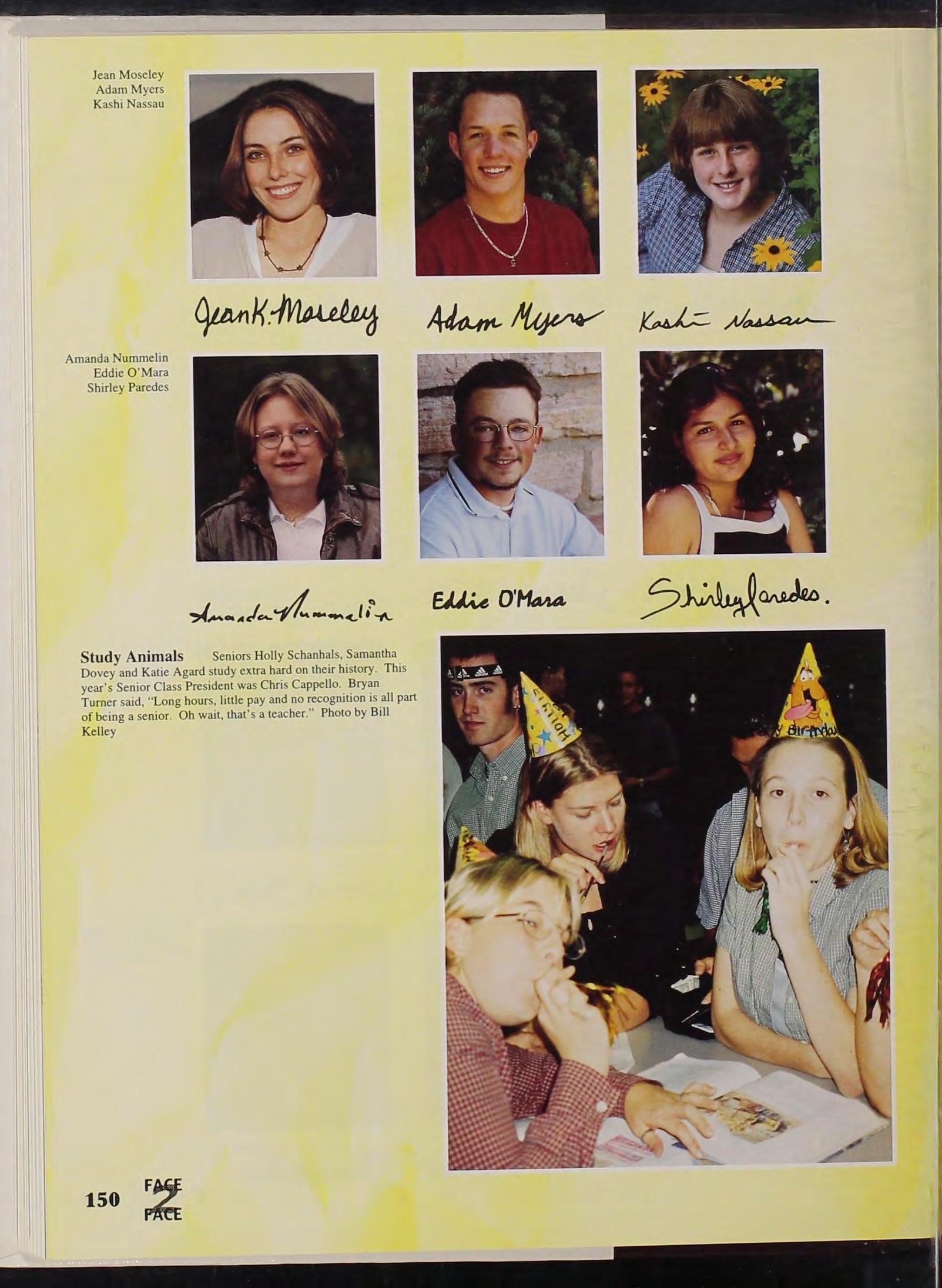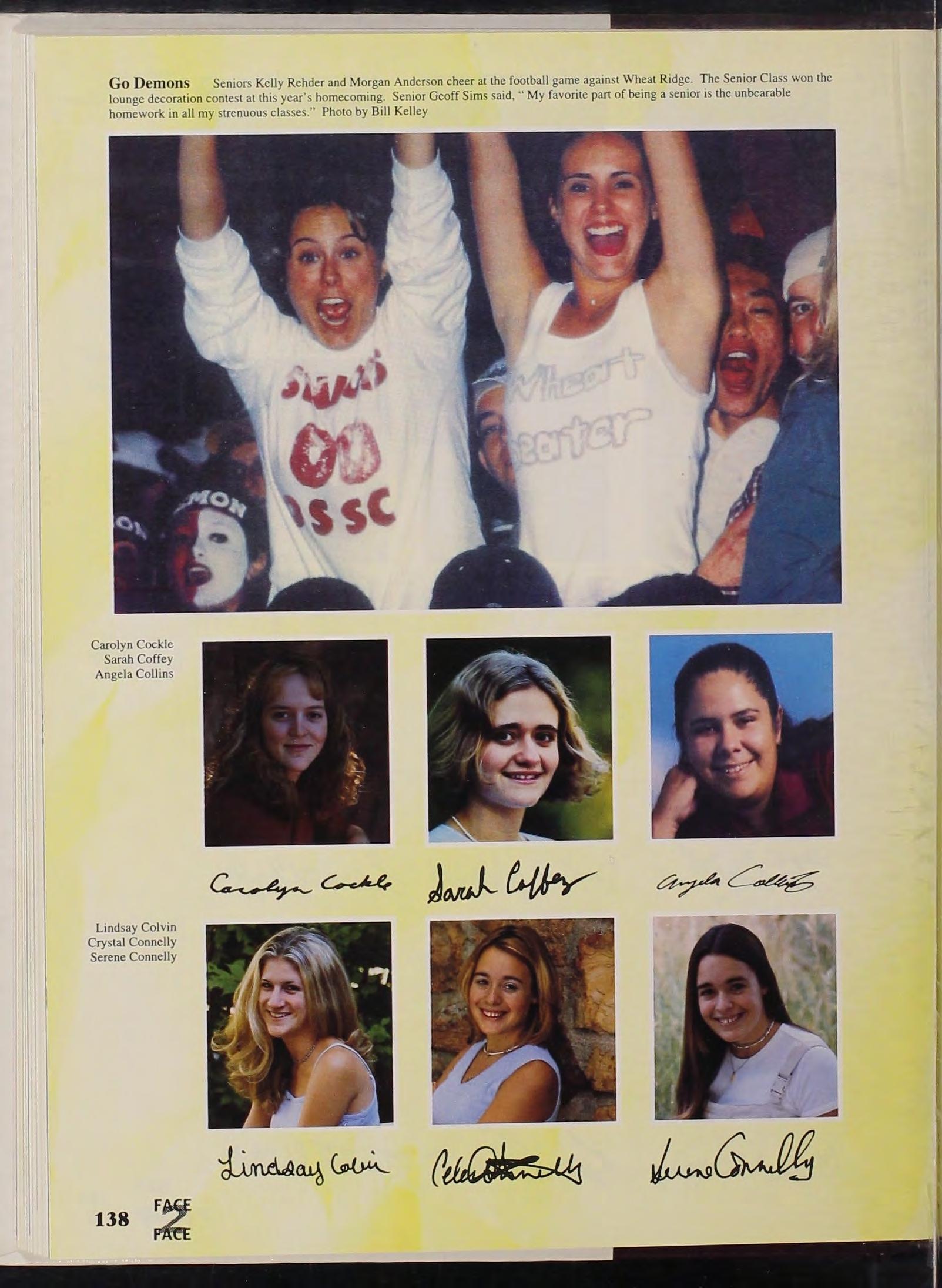 fa ce 2 Face was written with the intentions of making hi s tory. Since thi s book essentially represe nt s the end of an era, a lot of strain and effort was put forth to makeFace2Face the bes t it could po ss ibly be For the outsider, thi s yearbook is just a fancy book containing unknown faces and facts. For us Demon s, it 1s a lot more It is a collection of memorie s and good time s bound into a memorandum of hi s tory. Being the o ldest sc hool in Co l orado, our tradition is richer than any ot h er. It i s apparent in every thin g we do From sports to academics, our sc h oo l s pirit and pride shine s through the gloomiest time s. A s we face a new century and a new millennium, we a lso face many changes in our live s. From the fre s hman , s first s tep s as a " terrible teen ,, to the se niors' fir s t stri des into adulthood , the se monumental footprint s of life will be imprinted in our minds forever. Thi s book wa s made to help each and every one of you be able to look back a nd remem ber your own ex peri e nces as vividly a s pos sible We h ope you enjoy the la s t Golden yearbook of the 20th cen tury.