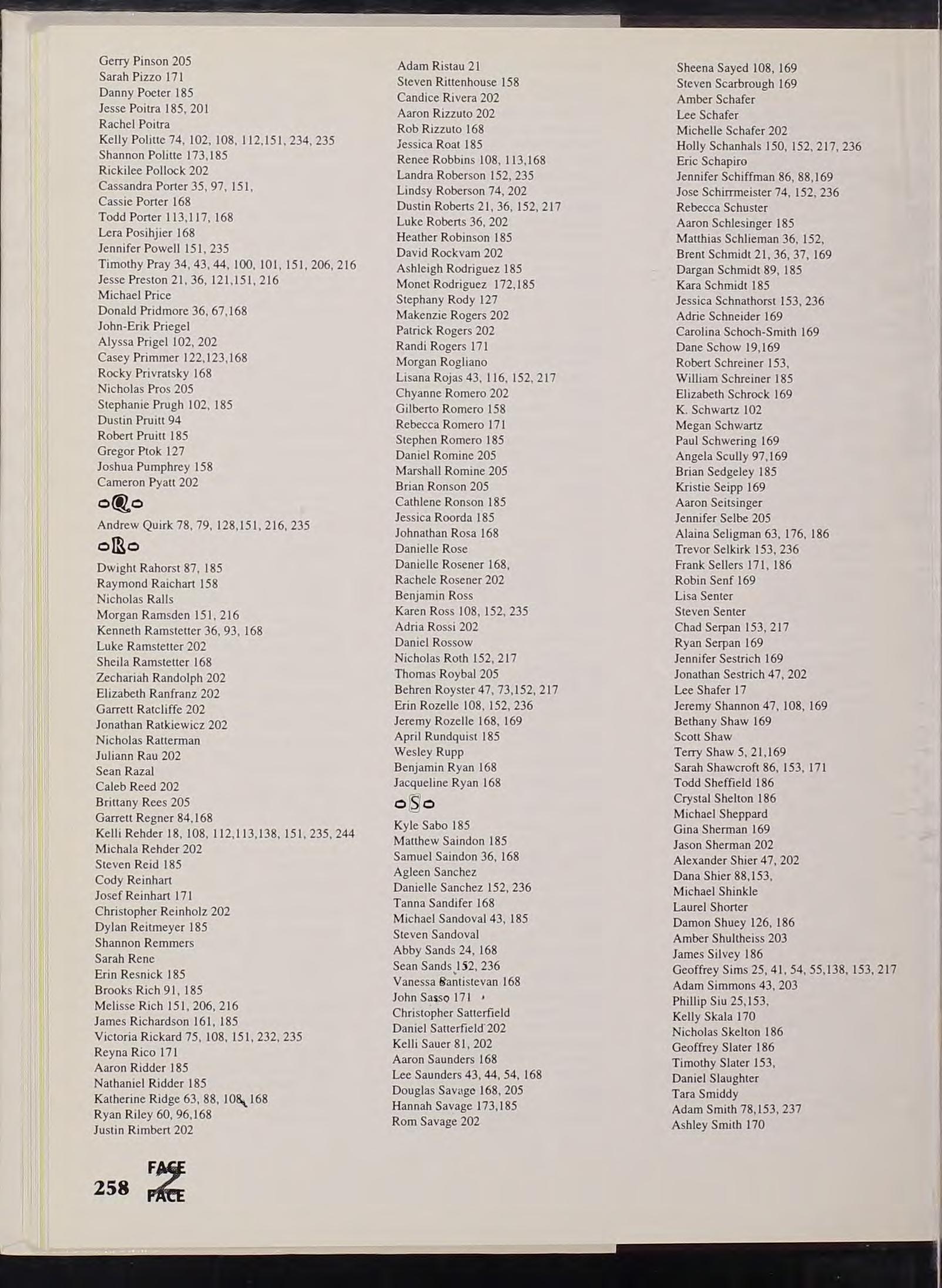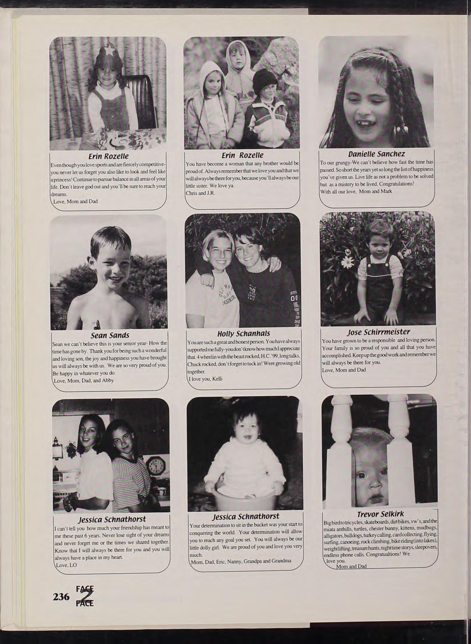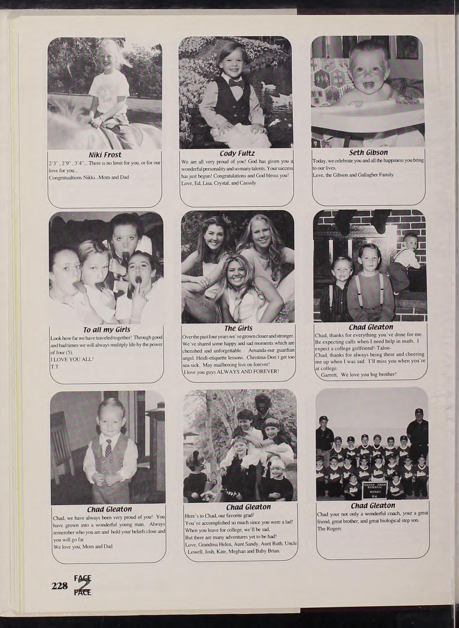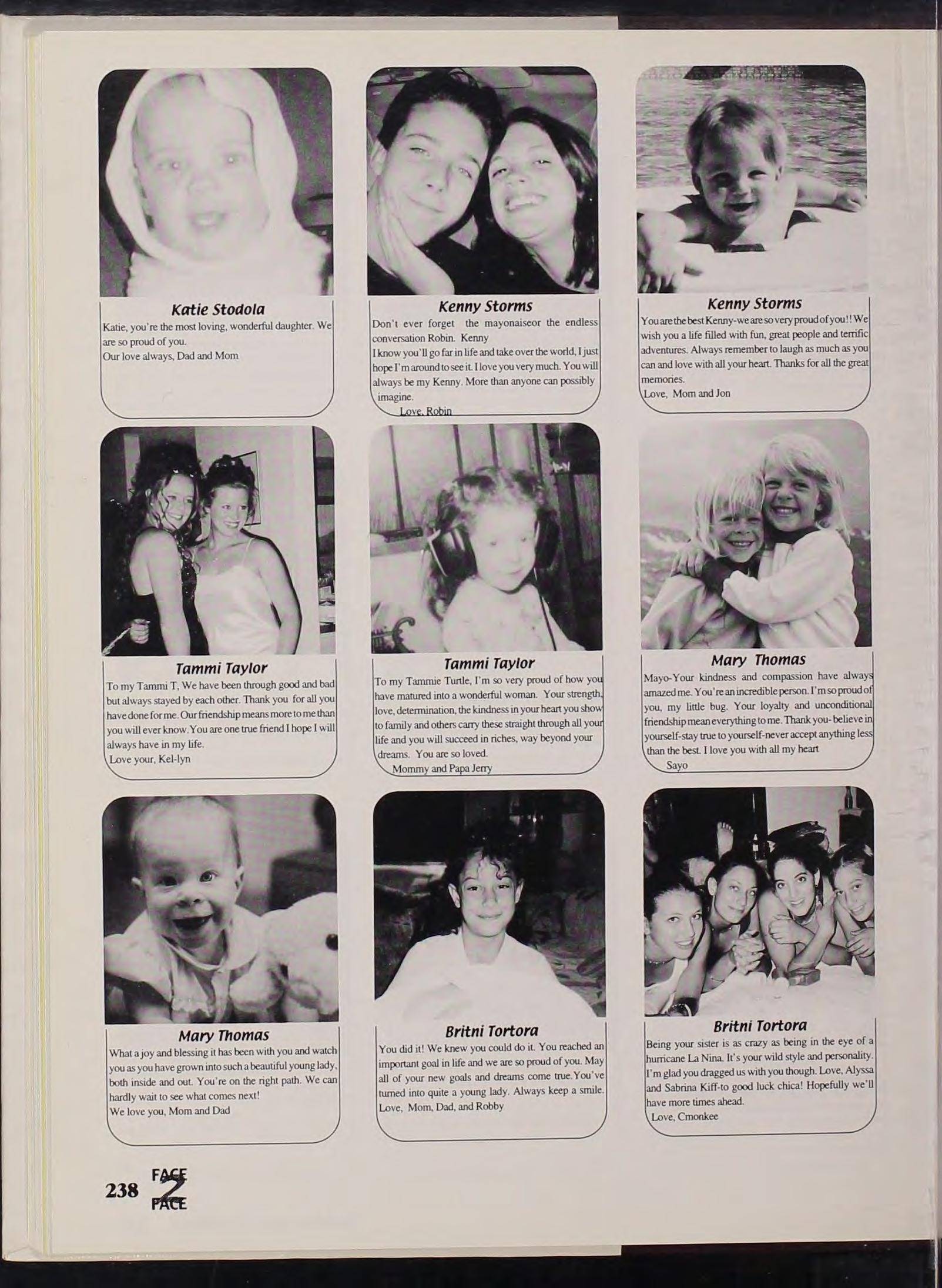 Face to Face was publi shed by Jo sten's School Produ c tion Group of Topeka , Kan sas . Our co mpany repre sentative was Gary Cordray The book is a size seven (eight by eleven inche s) and contain s 263 pages. The paper is eighty pound B ordeaux and 1300 books were produced . The cost of the book was $35 00 or $32.50 with an activity ti cke t.