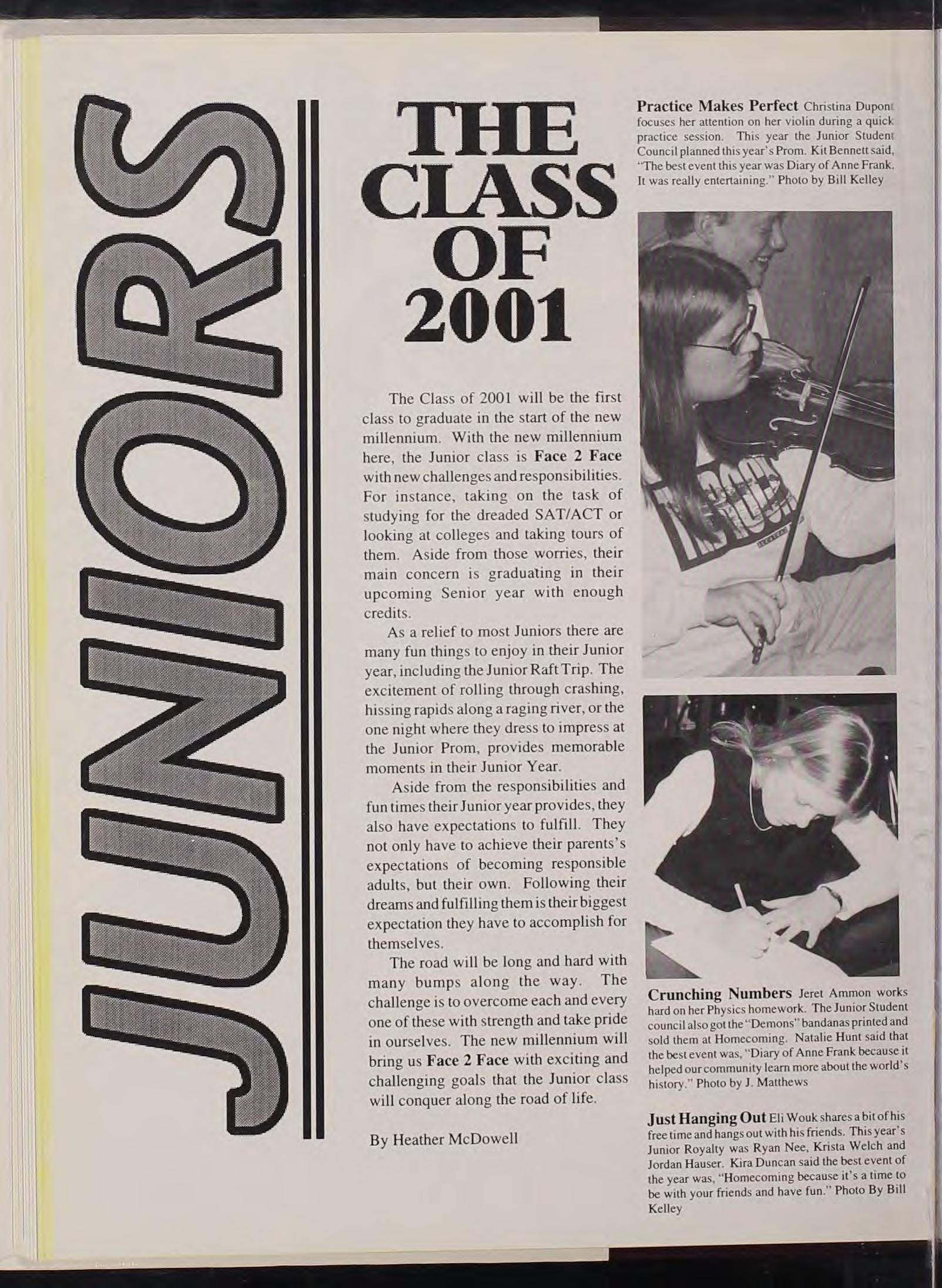 Class of 2000, If any of you are reading thi s, we are very s urpri se d But for the few of you who actually are, we would like to say a few words of wisdom . The la s t fo ur years were full of hangin ' out , having ton s of