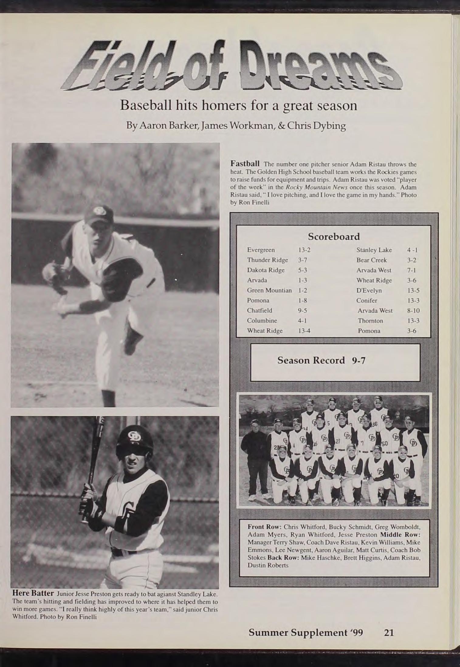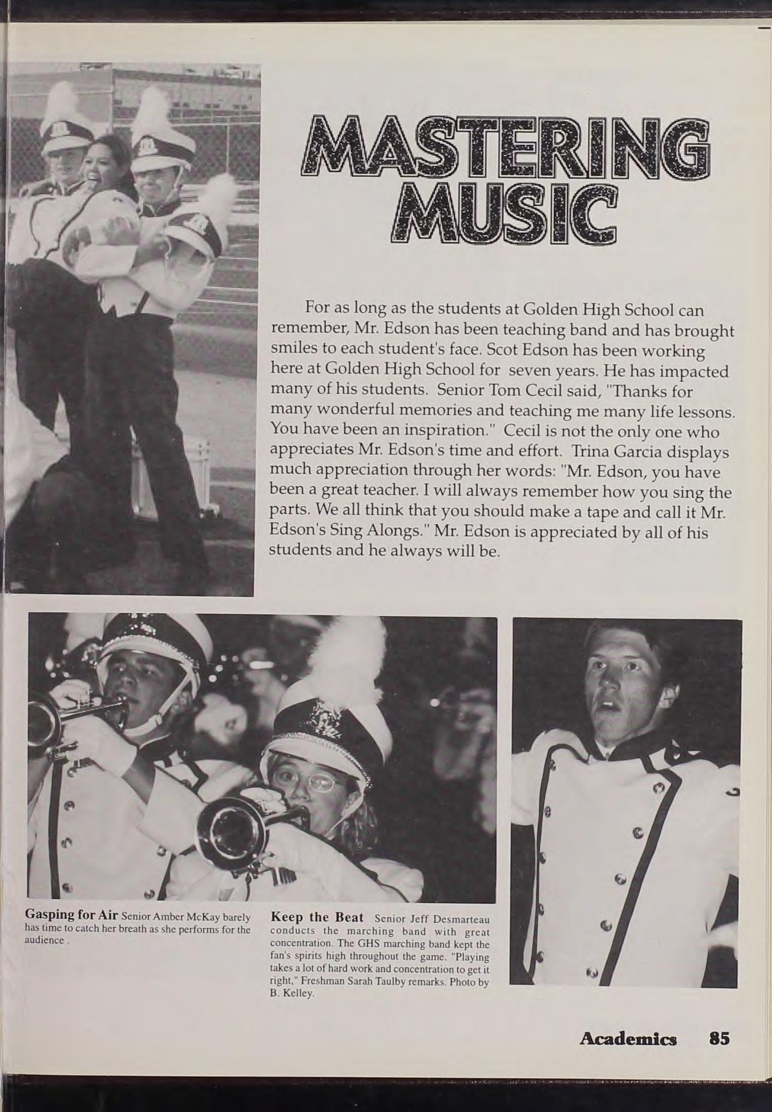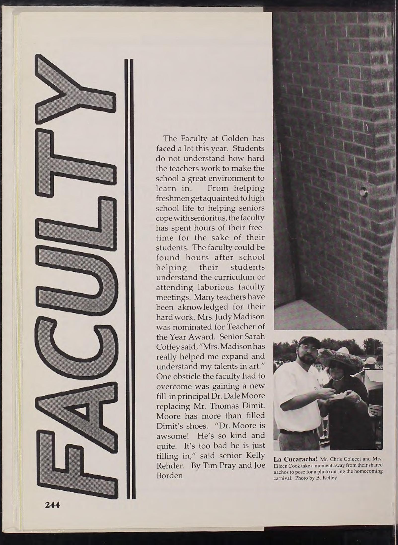Well, I was given fair warning . It turned out Mr. Finelli was right. There is a tremendous amount of work involved with a high school yearbook, and coordinating all of these projects takes foresight, hard work, attention to detail, and, yes, organization Fortunately for the students and staff at Golden High School, a number of talented people had signed on for this year's class. First and foremost among them are the two editors-1n-ch1ef, Joe Borden and Tim Pray. Not only have they saved me from going completely insane, but they have put 1n more than their fair share of time to produce a lugh quality book . Numerous returning veterans have also been extremely helpful and hard-working, and I have been very lucky to have some of talented newcomers join the class.