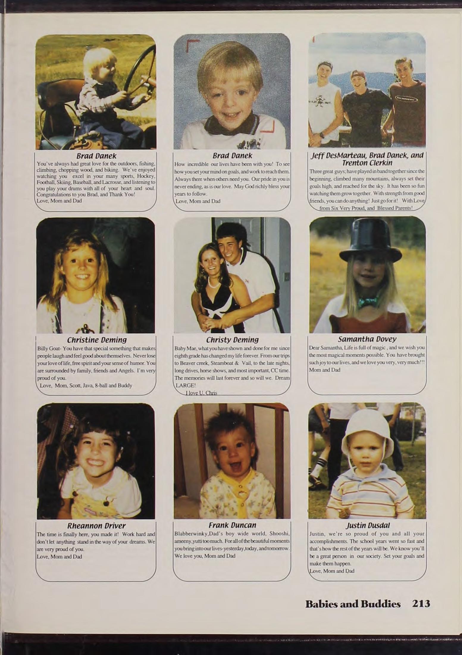 This year went by so fa s t, there wasn ' t much time for complaining Although , there were many time s I felt hke pulling my hair out. But, jUSt like the year before , and the year before that , I ' ve managed to get through 1 t Thank s to the support ofmy fellow yearbook1e s. Joe Bo,rden and Tim Pray have especially made my publishing expenence worth my time I would hke to thank the re s t of the staff who have stuck It and given the Demonium all their time and effort . Thanks to Mr Kelley for his hard work and determination 1n making this year productive and memorable Thank s to everyone for making these past three years wonderful. Well, another year has flown by and it's been yet another expenence I can't believe I'm saying this, but I wish to thank Joe and Tim You guys have been somewhat of an influence, although I hate to admit it. Thanks al so for putting up with me for 3 years . Thanks to all who have put up with my griping about yearbook, you know who you are. It's hard to believe that I've been a yearbook s lave for three years and still enjoy it. Thanks again to Tim and Joe for some very weird times! Love to all on the yearbook staff.