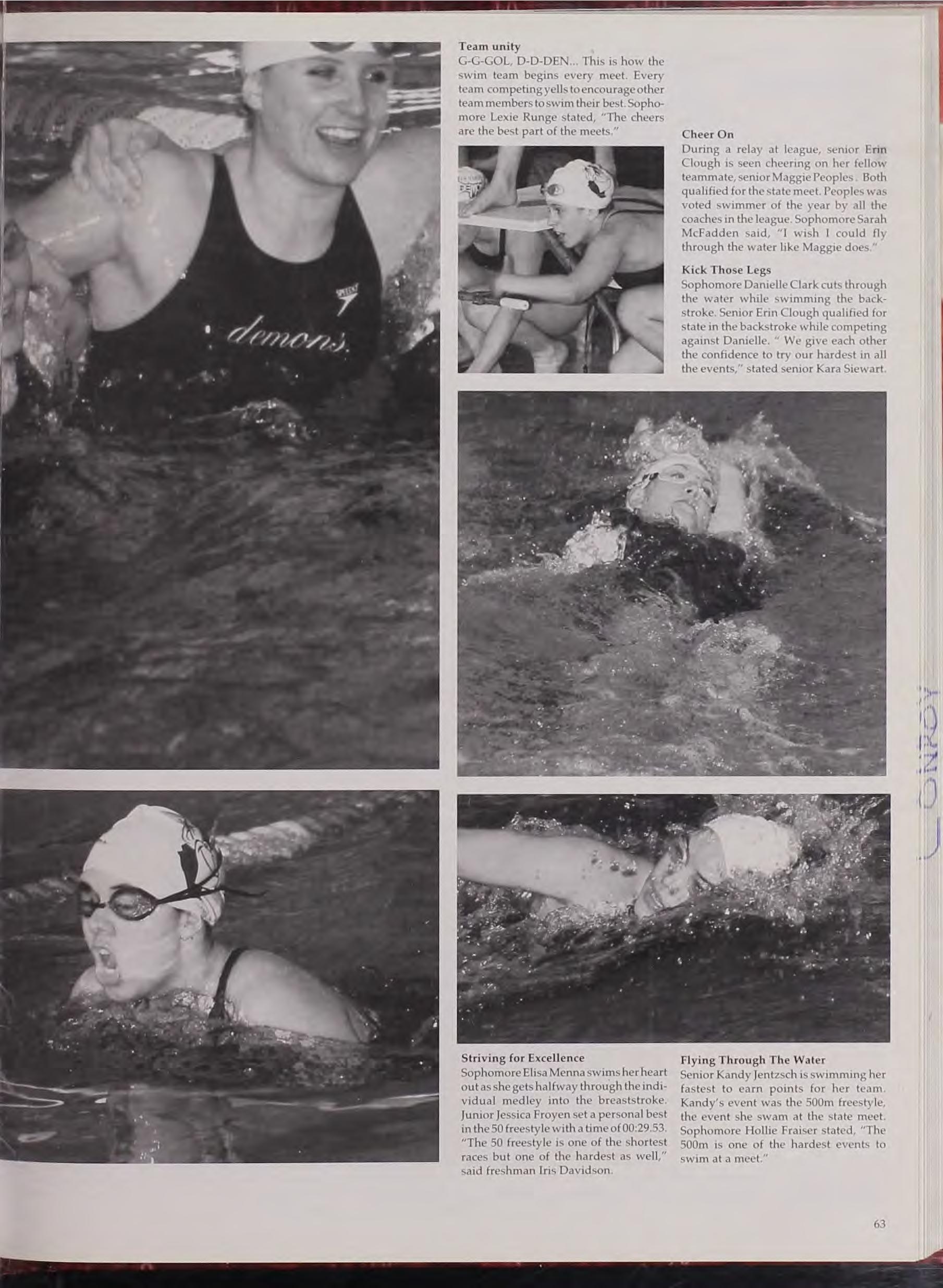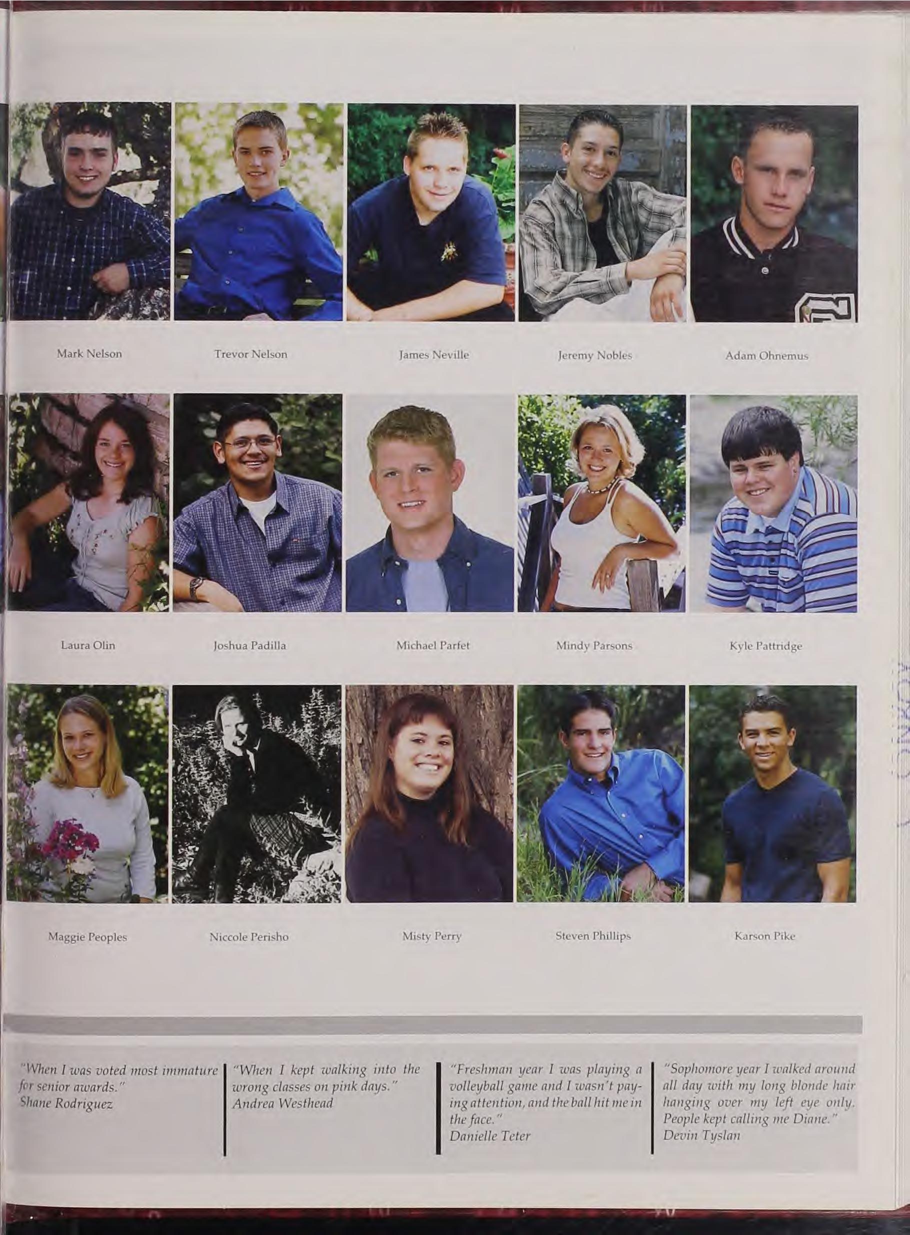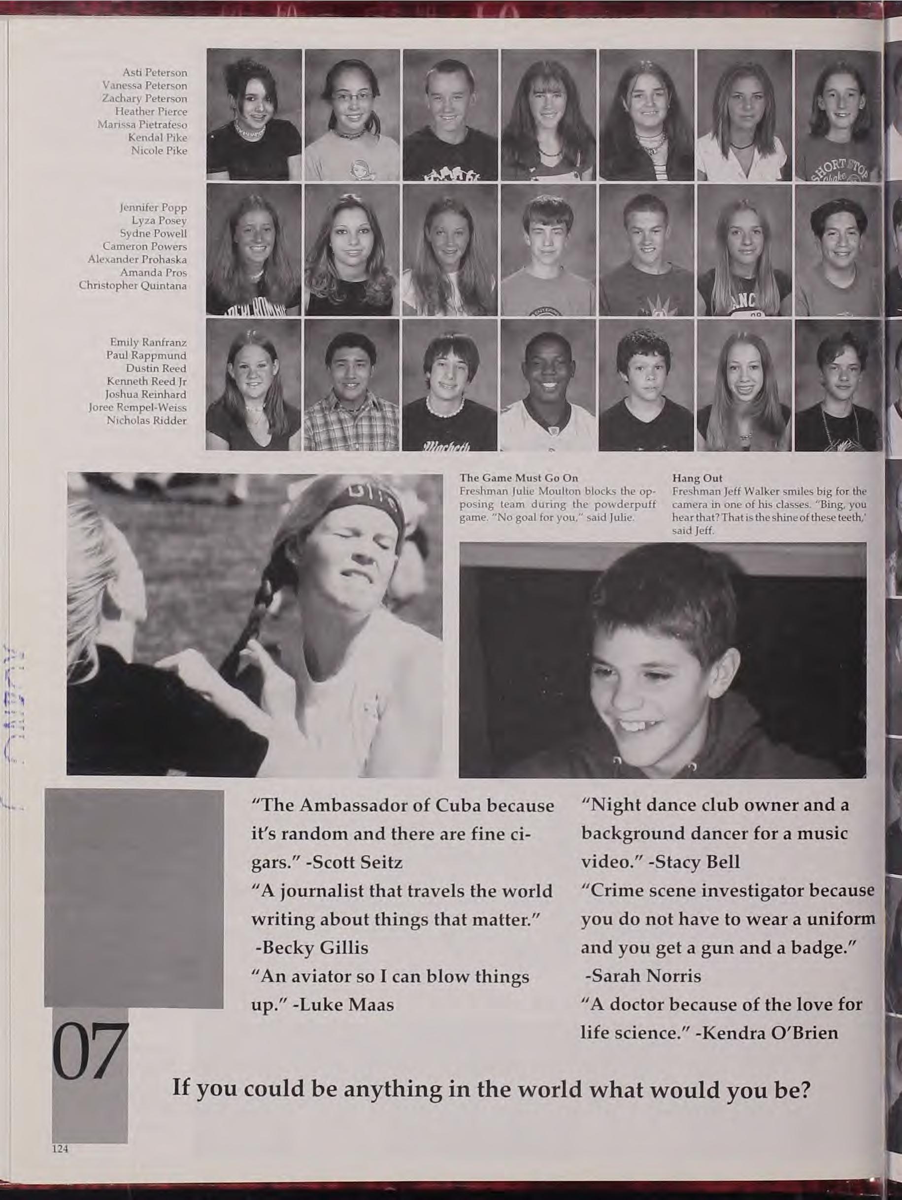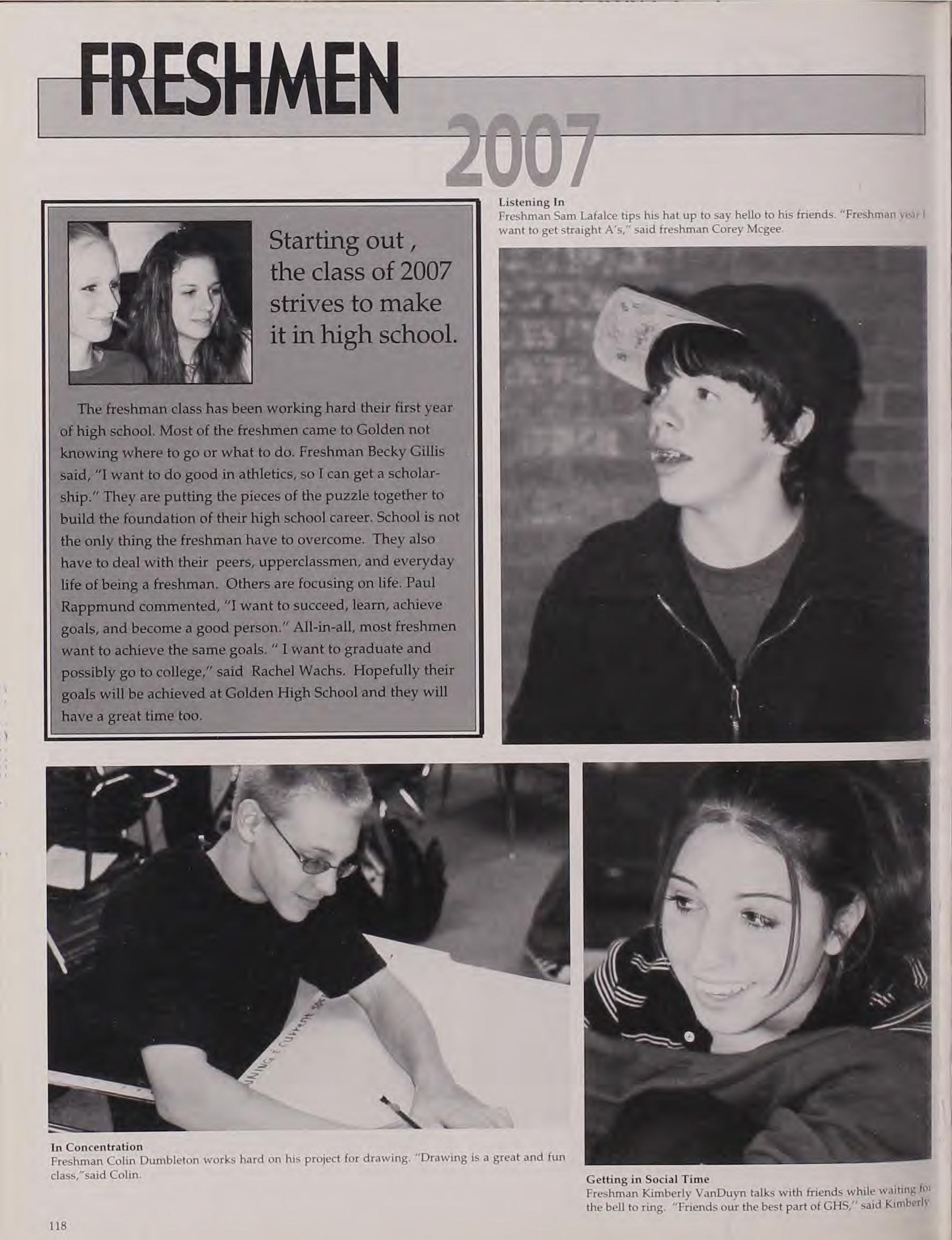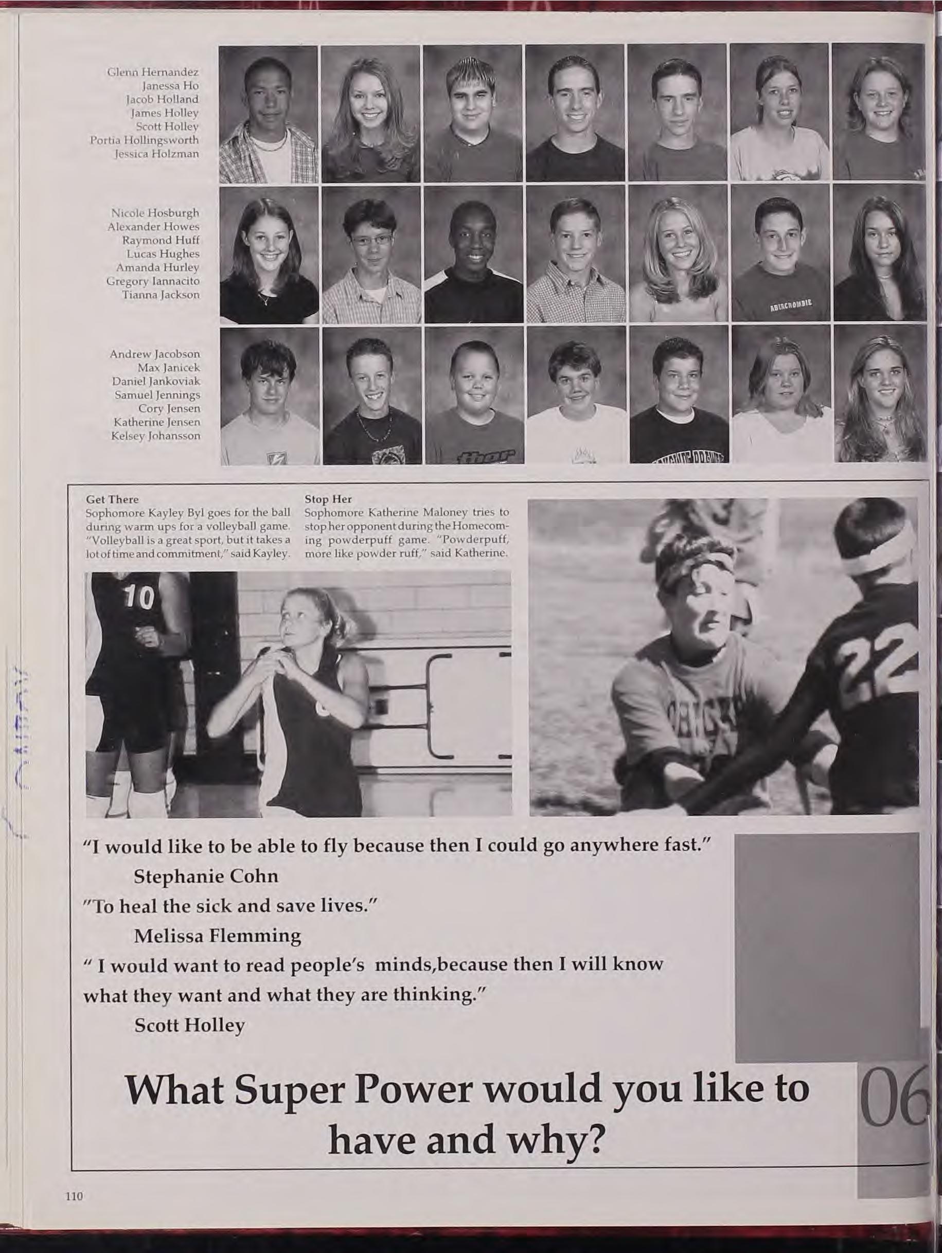 Not very often do you see girls talking and thro\ving aro11nd other girls, but the powderpuff game at this Homecoming carnival ,vas a great place to see it. While some people s ee povvderpuff as just another fun sport to play, otl1ers perfer to watch. "Powderpuff is a great opportunity for females to play football," said senior Diana Sendgraff. Po,vderpuff has al,vay s drawn a big crowd of guys. "I like to watch all the girls rip on each other," said sophomore David Gustafson. The senior of 2004 beat the freshmen and then for a second victory beat the sophomores. The sophomores came in second, the freshmen came in third, and last but not least the juniors came u1 fourth. 0 The Homecoming carnival was a really big success, and spending the time we did setting up ,vas \VOrth all the hard \.Vork ,'' said Student Council member Stephanie Liddick. Before the Homecoming Game, Golden High School l1ad its ann11al pa• rade, which took place in downto"'n Golden. Each cla ss h a d their own float in the parade, ,vhich they rode do\>vn to Brook s Field \A/here the football game took place. Also participating in the Homecoming Parade were the Jeffco High School Rodeo Team, the Drama Club, and the Golden High Dancing Den1on s, to name a few.