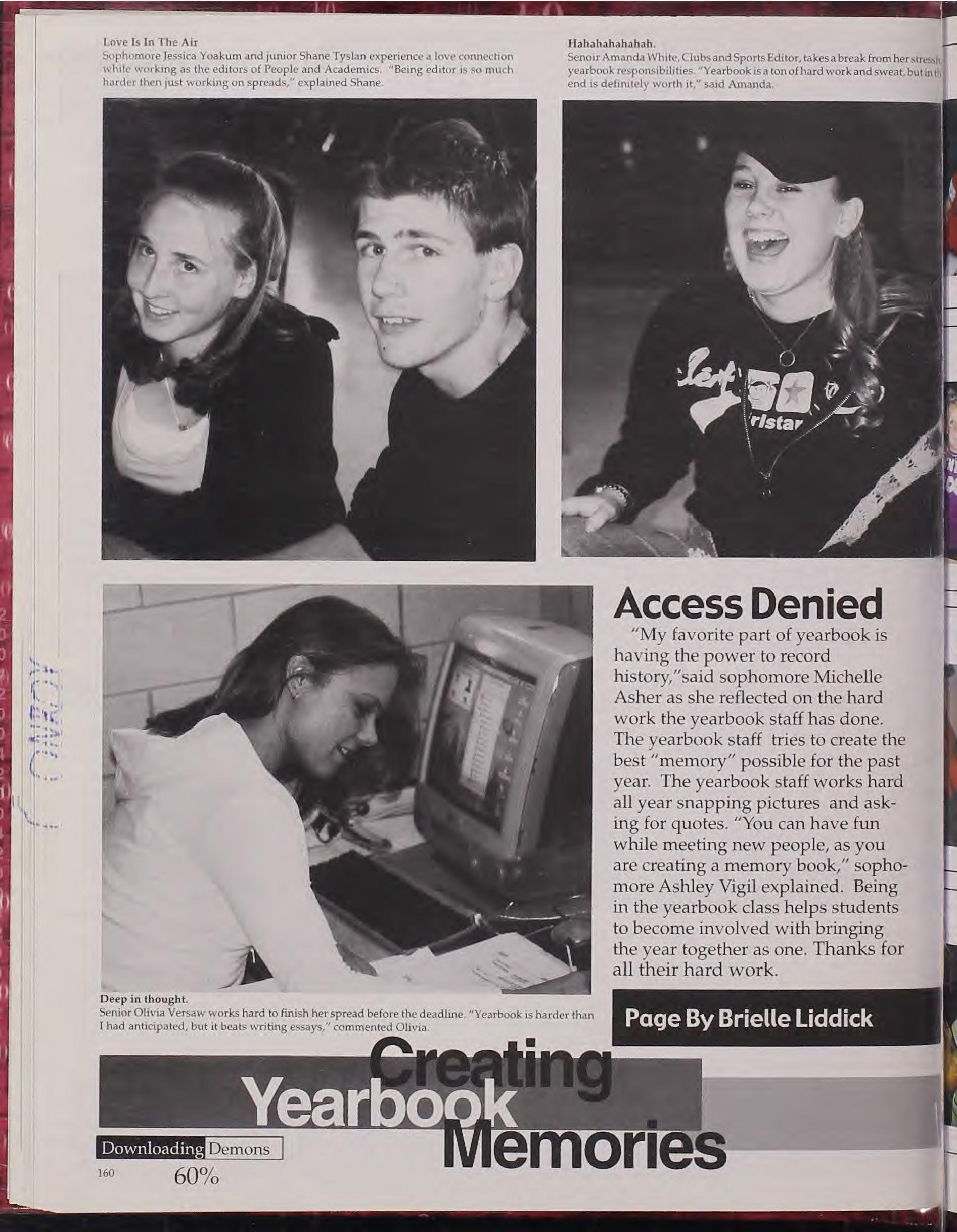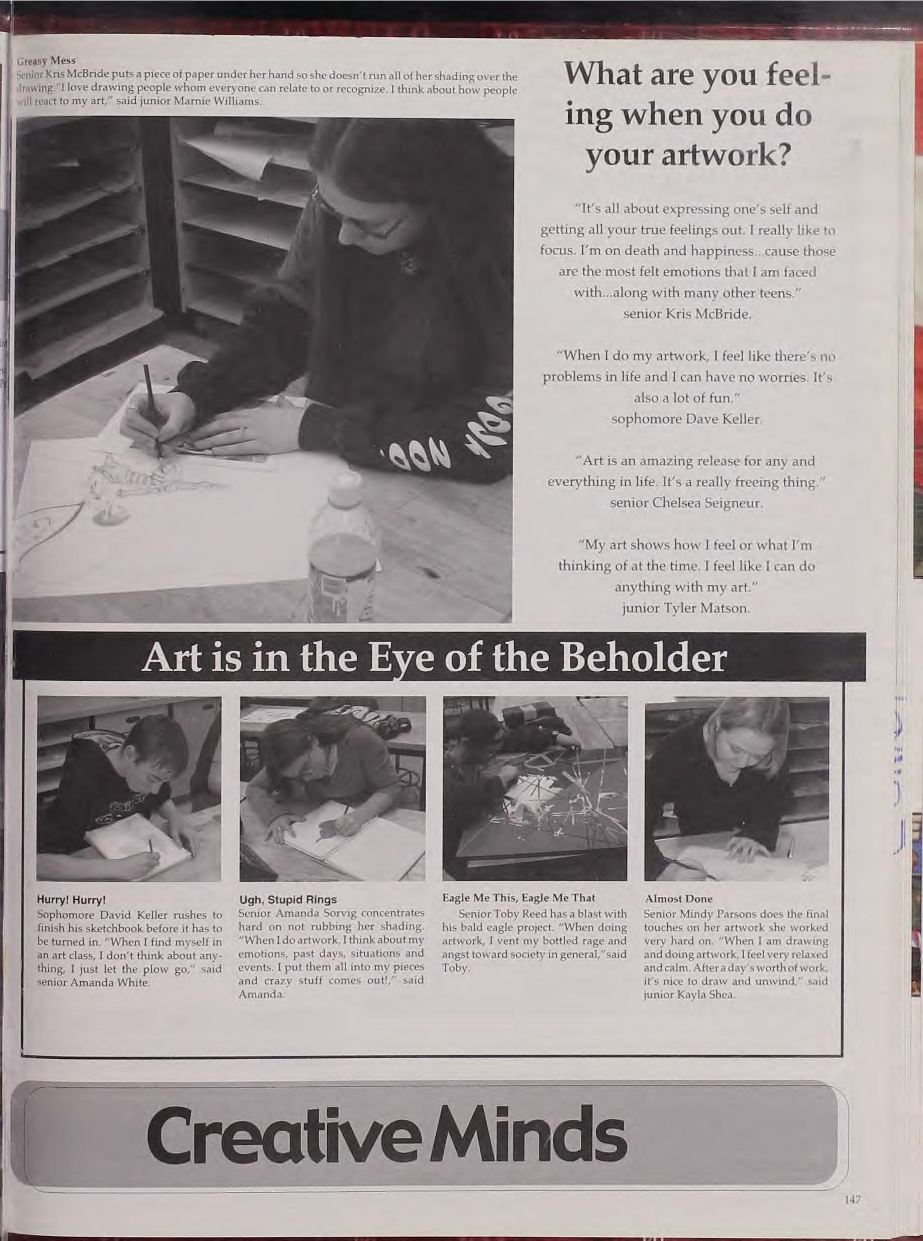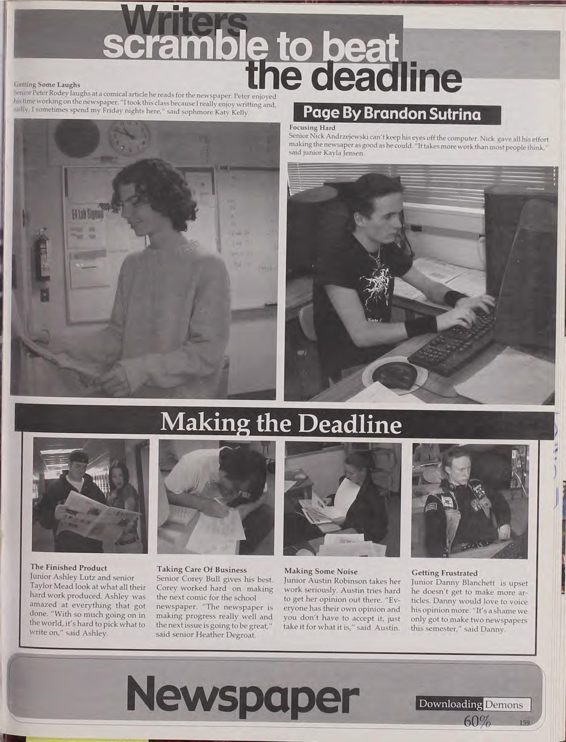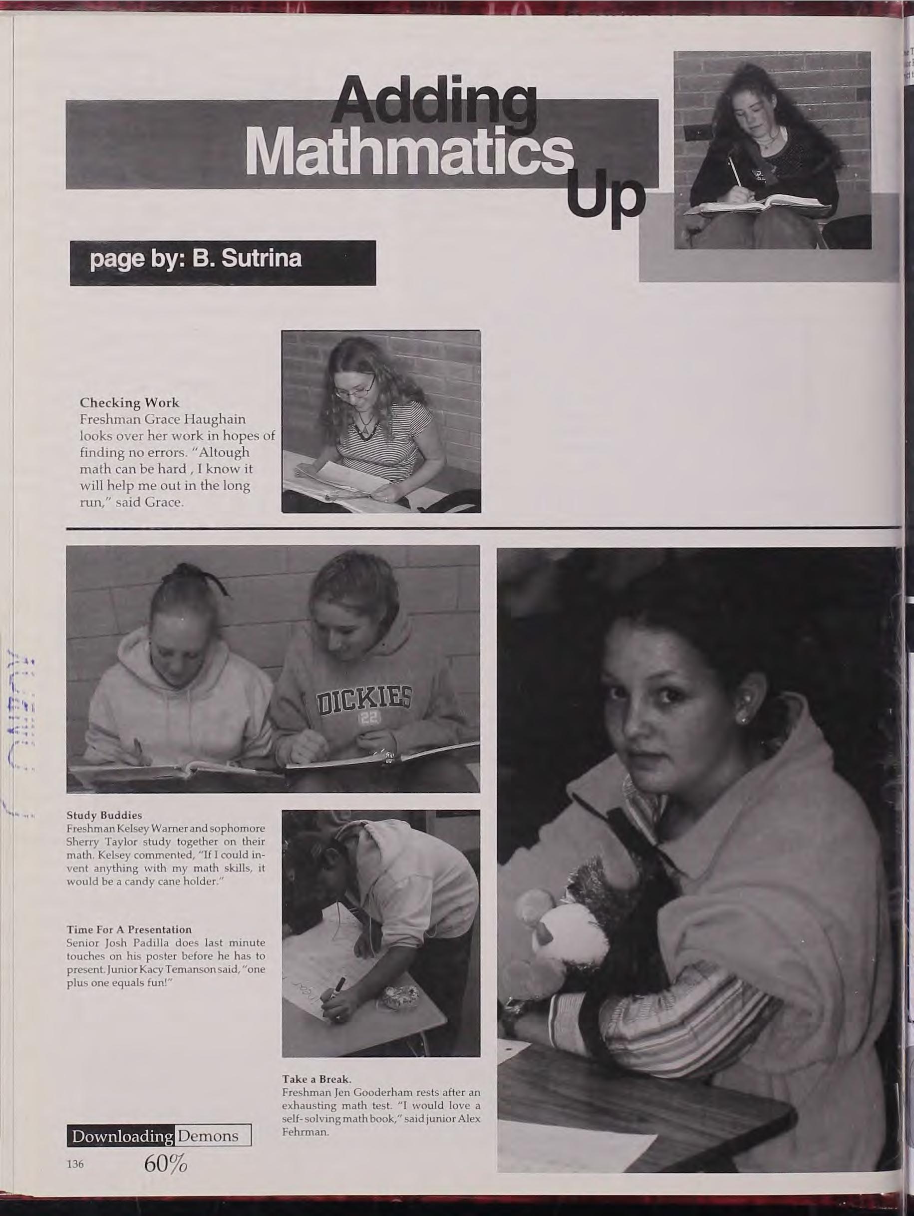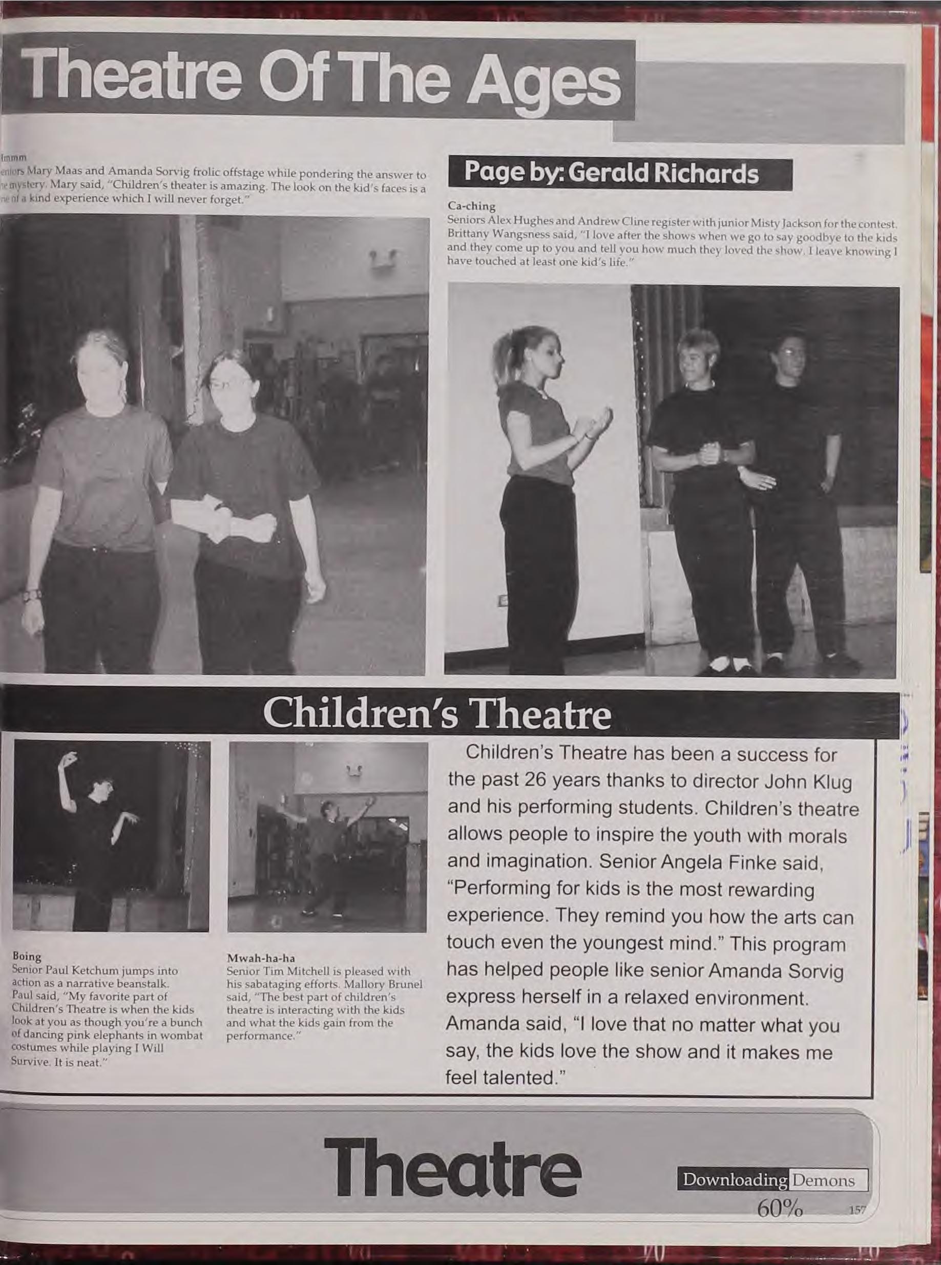 Not very often do you see girls talking and thro\ving aro11nd other girls, but the powderpuff game at this Homecoming carnival ,vas a great place to see it. While some people s ee povvderpuff as just another fun sport to play, otl1ers perfer to watch. "Powderpuff is a great opportunity for females to play football," said senior Diana Sendgraff. Po,vderpuff has al,vay s drawn a big crowd of guys. "I like to watch all the girls rip on each other," said sophomore David Gustafson. The senior of 2004 beat the freshmen and then for a second victory beat the sophomores. The sophomores came in second, the freshmen came in third, and last but not least the juniors came u1 fourth. 0 The Homecoming carnival was a really big success, and spending the time we did setting up ,vas \VOrth all the hard \.Vork ,'' said Student Council member Stephanie Liddick. Before the Homecoming Game, Golden High School l1ad its ann11al pa• rade, which took place in downto"'n Golden. Each cla ss h a d their own float in the parade, ,vhich they rode do\>vn to Brook s Field \A/here the football game took place. Also participating in the Homecoming Parade were the Jeffco High School Rodeo Team, the Drama Club, and the Golden High Dancing Den1on s, to name a few.