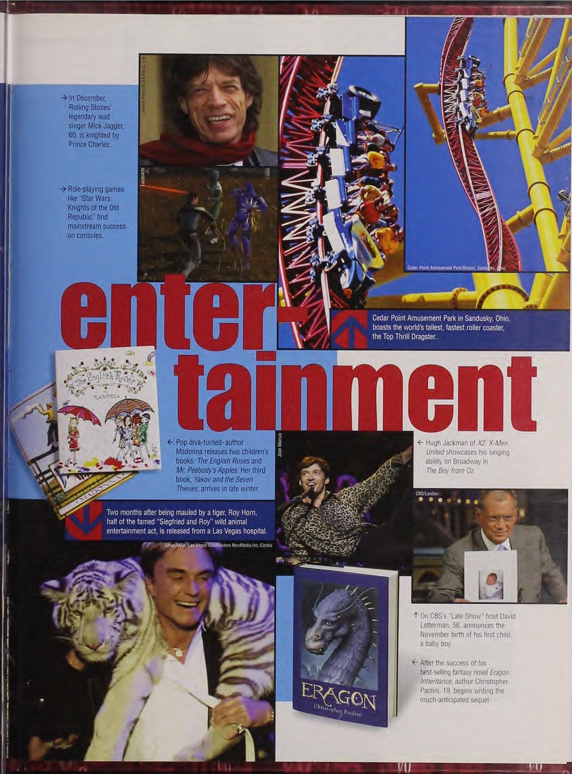 f- Pop diva-turned-author Madonna releases two children's books: The English Roses and Mr. Peabody's Apples Her third book, Yakov and the Seven Thieves, arrives in late winter