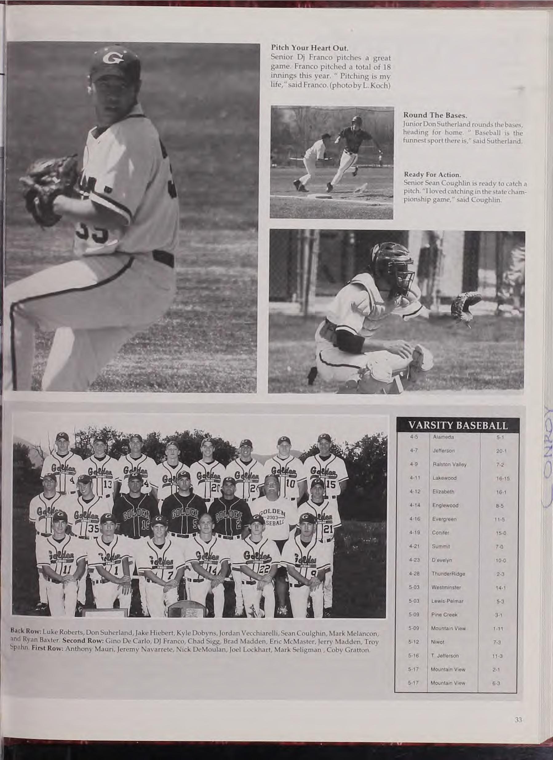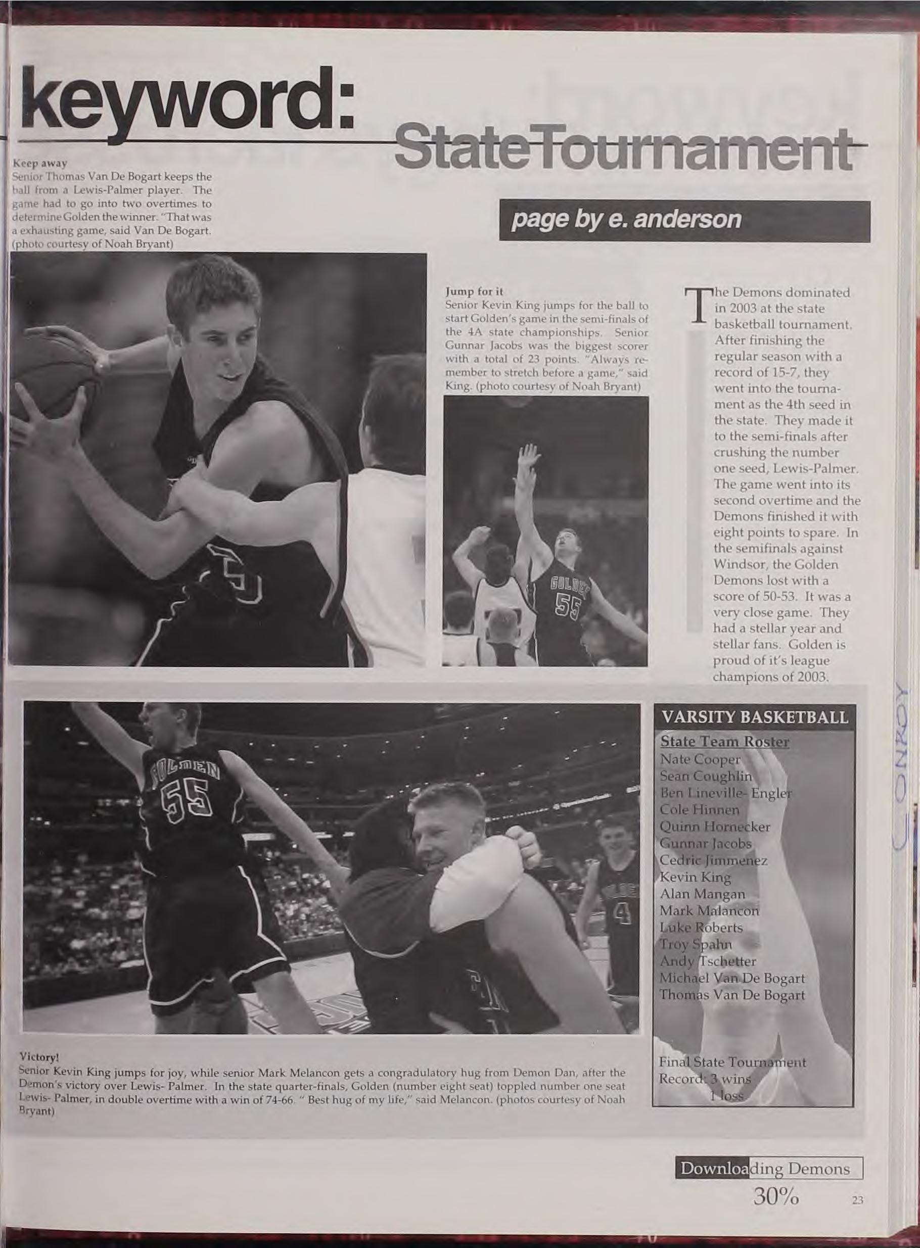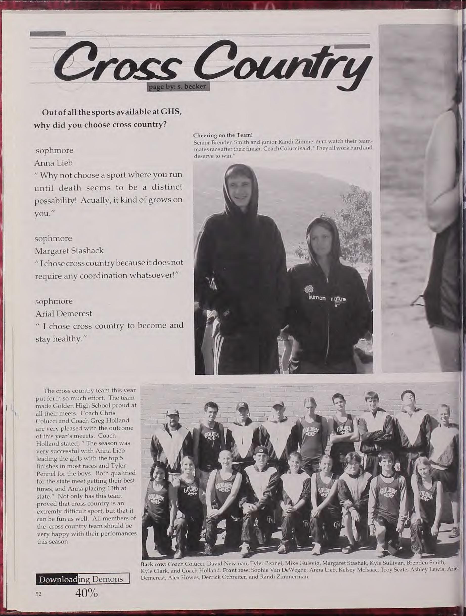 DEMQNILJM Vo l .131 O n Th e L ook Out Sen ior Bt'.n H oo!!hcem takes time to tak~ 1n the ,cenel) ORD SEARCH: Student Life 2 Sumer Supplement 17---...::.':•• • t -, •ti • - '6,j .... ,., r f"f ;- Sports 38 • 'iii: >J People 66 Academics 132 Babies & Buddies 161 t:- -~ --Team Photos 202 H o,, \ ou Do i n ' Clubs 207 Frc-,hman 1att Gallagher cekbrate, after \\1nn1ng his tcnn1-. ~J match Index Golden High School 701 W. 24th Street Golden Co 80401 214 IDo"'rn l oading Demo11s 0 °/o 1