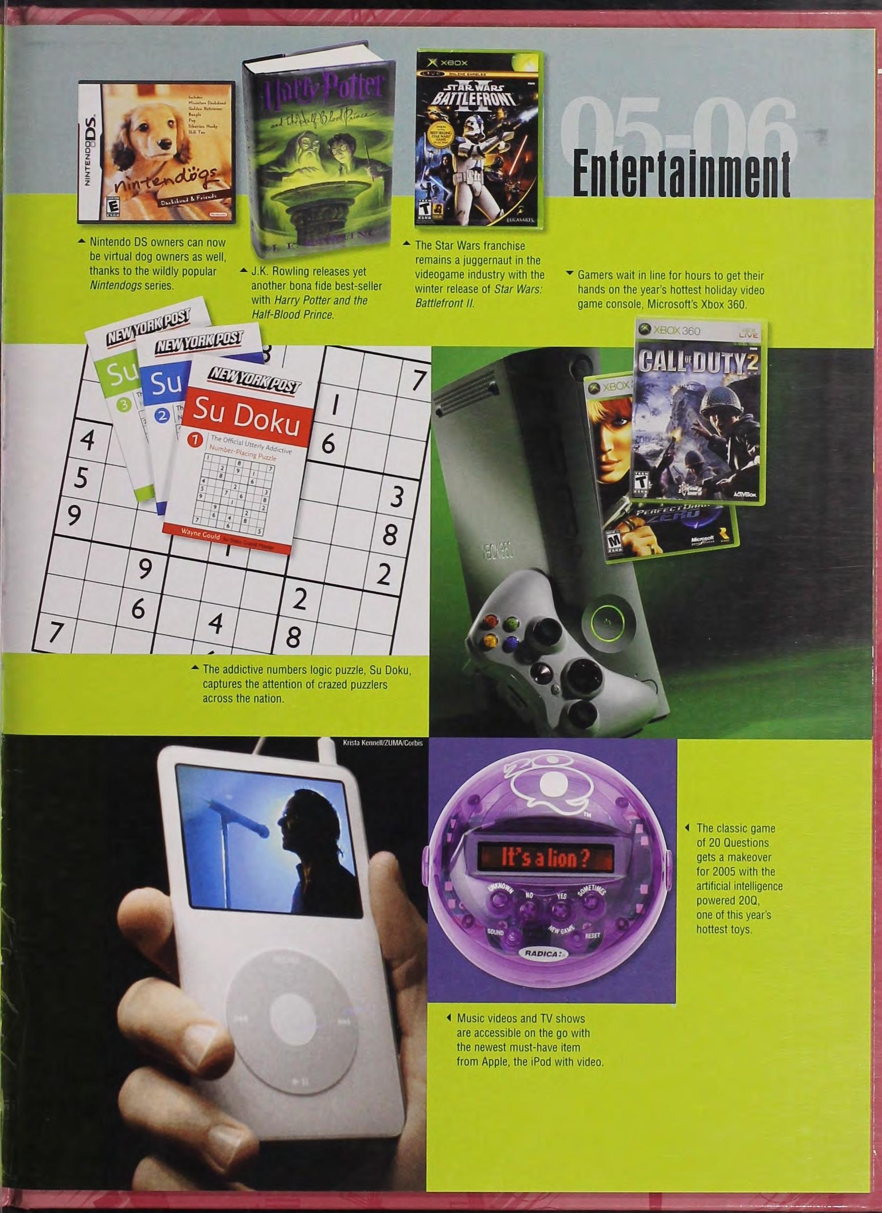 • Nintendo DS owners can now be virtual dog owners as well, thanks to the wildly popular Nintendogs series • J K. Rowling releases yet another bona fide best-seller with Harry Potter and the , 1 Half-Blood Prince