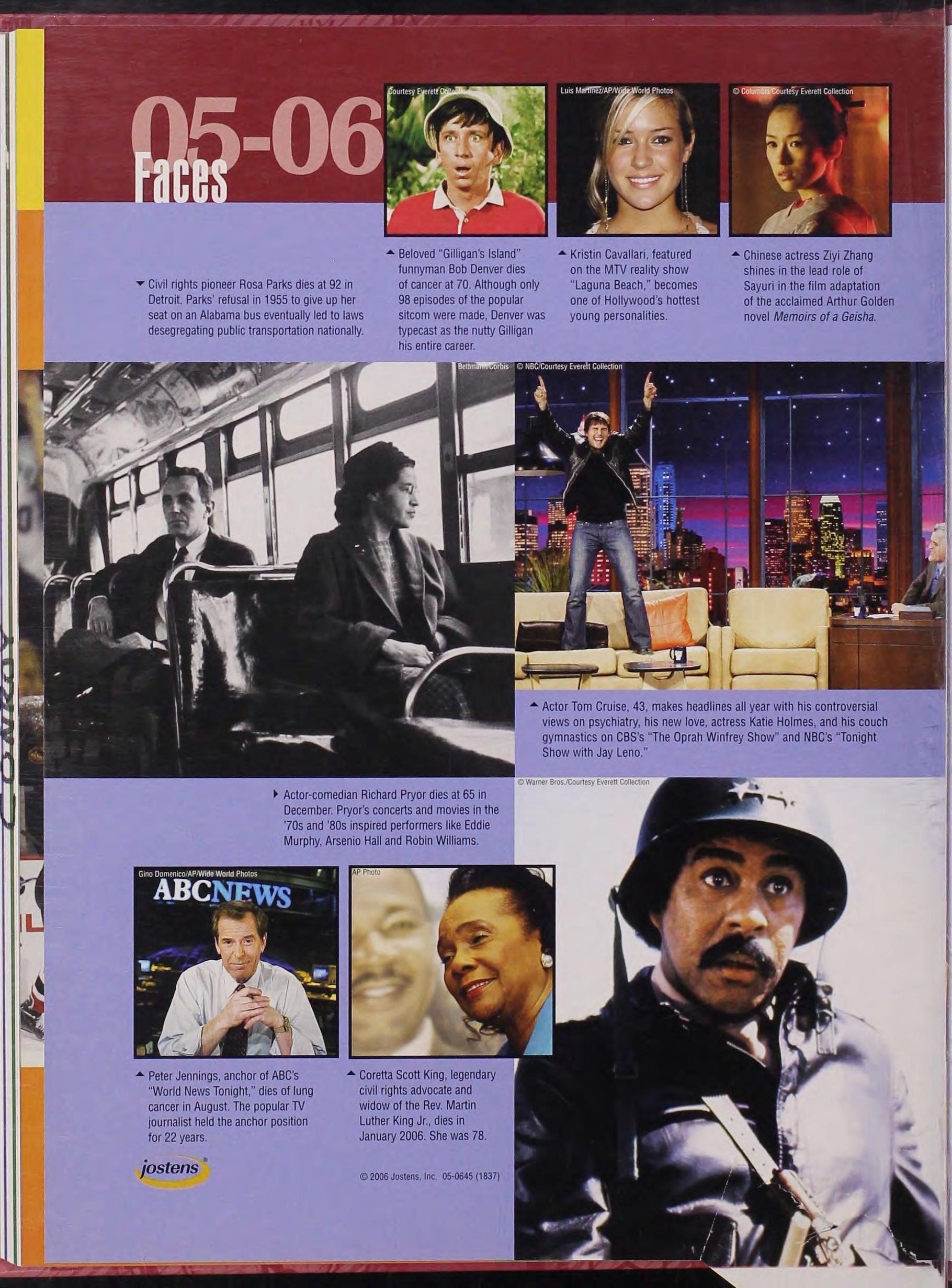 • Actor Tom Cruise. 43, makes headlines all year with his controversial views on psychiatry, his new love, actress Katie Holmes, and his couch gymnastics on CBS's "The Oprah Winfrey Show" and NBC's "Tonight Show with Jay Leno "