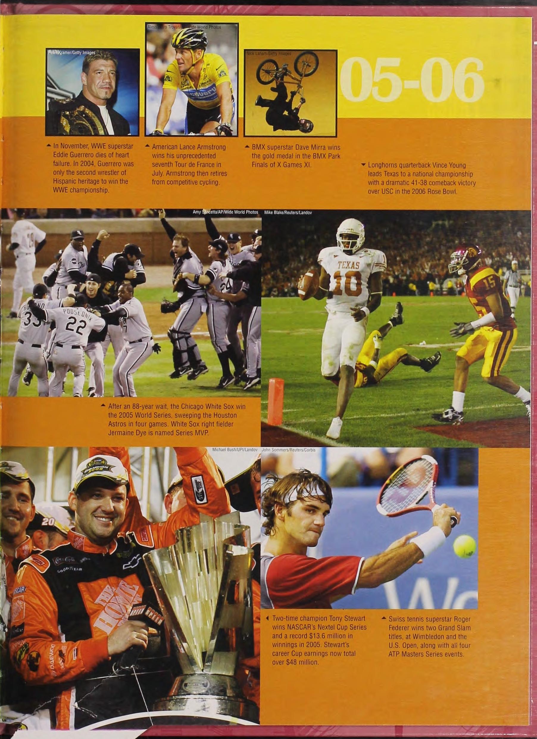 • Longhorns quarterback Vince Young leads Texas to a national championship with a dramatic 41-38 comeback victory over USC mthe 2006 Rose Bowl.