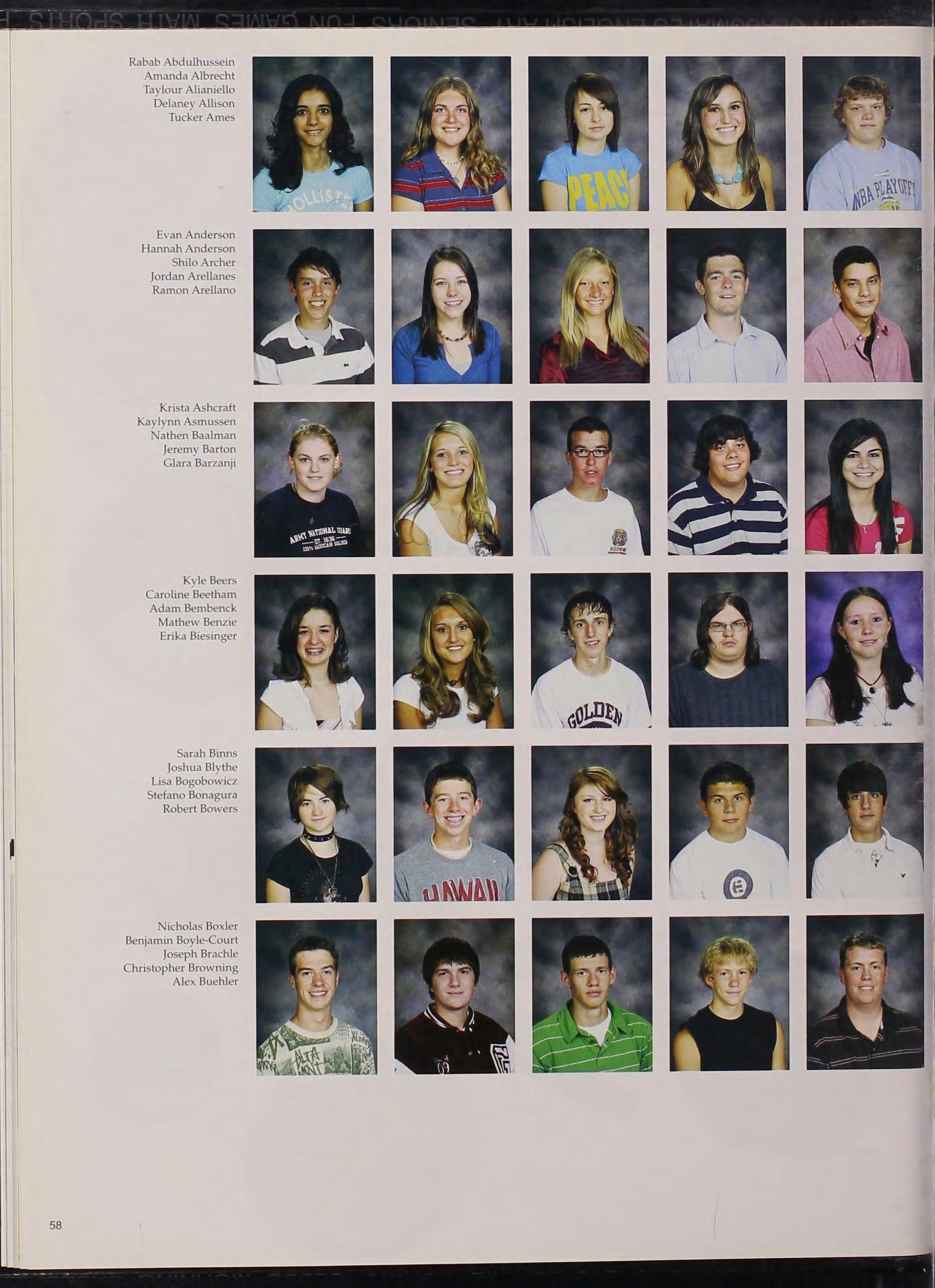 s• Saeid , Hev1 48 Sageser, Lauren 66 , 156 Salazar Megan 86 Salazar, M 1chael 66 Sanchez, Marisol 86 Sander, Andrew 86 , 108 Sanders, Bethany 48 , 188 Sandoval, Me'Shay 77 Sands , Taylor 48 , 194 Santana Rran. 87 Satterfield , Lex, 86 Saucedo , Victoria 66 Sauer, Logan 30 , 66 , 109 Saxton , Alexander 77 r Sayers , Troy.. 86 Seance, Christopher 66 Schalhamer, Austin 86, 155 Schllttler, Ilona . . . . 66 • Schluter, Rachel 48 , 104 , 132 , 153 Schmader, Heather 48, 145 [ Schnautz, Jackson 77 ; Schulte, Taylor. 66 Schultz , Kyle. 12 Schultz , Ryan 86 1 Schumacher, Jessica. 66, 154 Schumacher, Joanna 86, 157 Schuster, Scott 51 , 154 , 155 , 157 Schwab, Nicholas 86 Scohy, Julie 48 , 188 , 189 Scott Bryanna 86 Scott-Gilbert , Mary 77 Searcy, Crysta II 77 , 134 Secary, Melanie 8, 48, 189 Seery, Kyle. 28, 39 , 48, 108, 189 Seery, Shannon 86 Seidel , Emily 77 , 156 Selcer, Tyler 66 , 157 Sell, Dest1n1. 7 4 , 77, 127 Senz , Alyssa 77 , 128 , 142 , 157 Senz, M 1a 86 Serat1 , Anthony 25, 49, 141 Sharpe, Colter 77 Shaulis, Richard 77 Shea, Kacie 77, 11 o, 127, 157 5hearer, Jeremy 66 Shearer, Julia 77 Sheesley, Abbey 10, 77 , 104, 126 Sheffield, Daniel 49, 128, 131 Shefte-Jacobs, Max 66 , 112 Sheldon, Stephanie 49 , 189 3hepler, Logan 77 Sherman, BenJamin77, 112 , 113 Sherman, Samantha 24, 77 , 126 Shiel er, Evan 86 Shire, Michael. 86 Siewert, Cullen 49, 105 Silva, Elyssa 66 , 127, 157 Simmons , Larissa 86 , 152 Simmons, Tasha 66 , 135. 138 , 149 , 152, 153, 157 Simon , Nicholas 49 , 138 Skelton , Garrett 77 Skelton, Timothy 77 , 79 , 146 Skorka , Chelsea 66 Skorka , Michael 86 Siana, Anita 66 , 132, 145 Slaven , Clint 86 Slaven , Kailey 49 Sletten , Cassondra 78 , 106 107 , 127 129 Smail , Cody 49 , 50 Smith , Aaron 86 , 131 , 155 Smith , Brooke 86 Smith , Collin 67 , 105 Smith , Cortney 21 49 , 112 138, 139, 153 Smith , Hillary 86 155 Smith Michael 78 , 190 Smith , Paul 78 79 Smith , Samantha 78 Smith , Shelby 86 Smith , Solell 24 , 49 157 Smith , Tyler 78 Smouse , Cody 78 Smouse, Jacob 64 , 67 Snart, Carson 78 Snart , Taylor 86 , 126 Snyder, Regina 78 , 127 So1ne , Katherine 49 , 157 , 190 Son, Syn1a 67 Sorvig , Kan 67 , 155 , 156 Sorvig , Kyle 86 Sosa, Aubrey 86 Sosa , Casandra 78 Sosa , Elise 78 Spatz , Austin 78 126 , 127 Spence , Mitchell 78 , 112 Sprague, Ell 86 , 149 Spykstra , Taylor 72 , 78 Starr, Destrnee 82, 86 Staub, Calvin 30 , 78 , 109 Stauffer, Brianna 78, 120 Stengel, Ryan 86 Stiers, Jared 86 Stiner, Kenneth 67 Stitt , Ian 67 , 156 Stoeber, Brandon 86 Stokes , Connor 49 , 1OS, 190 Stokes, Ryan 9 , 26, 78 , 103 Stolte , Taylor 32 , 67 Straley, Megan 49 , 112 , 148 , 149, 156 , 157 Straley, Timothy 78 , 112 Strauss, Lilah . . .. ..... . 24, 67 Stroh , Kasandra 86, 126 Stroh , Samantha 49, 140, 190 Sturgeon, Amanda 49 Sugrue, Alexis 78 , 154 Sulrk, Caitlin 49 Sulley, Alexis 86 Sulley, Anthony 78 Sullivan , Caitlin 56 , 67 , 127 Sullivan, Kendra 86 Sullivan , Logan 51 Sullivan, Nicole 86 , 127 Summeril, Connor 16 , 67, 143 , 145, 154, 155 Summers , Alex 78 51 30 , 67 , 126 7 34 49 , 120, Suther, Steven Sutter, Kaila Sweet Ni c holas 121 . 191 Sweetk1nd , Reid 86 , 137 139 , 154, 156 Swim , Lesley 67 , 120 152 , 153