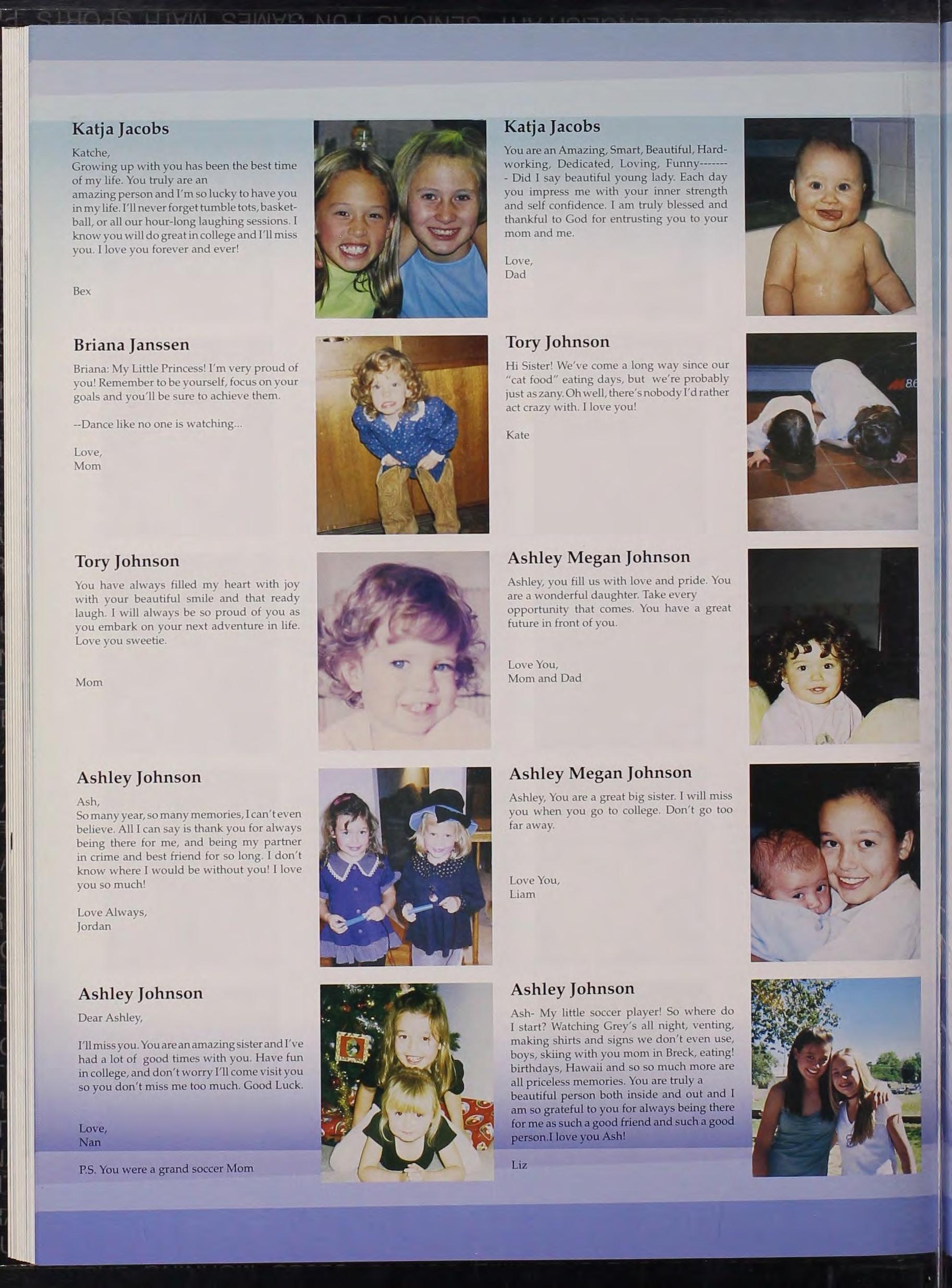 This year's yearbook was amazing. I look at taking pi c ture s as th e only \.Vay I can freeze time, and what a grea t year it ha s been A pi c ture i s \\'Orth 2008 words doe s n ' t even begin to de sc ribe how mu ch effort and tea m work we have done this year. It \Vas great to make a differen ce as a11 e ditor. I know the yearbook won't be th e s ame without Kelley; it will be sad to see him go, but I know next yea r will be just as great with Brooke as chief editor. My little brother, Log an , I can't believe I 've known yo u since 5th grade and now we are graduating. You ' re a great friend and stav sweet! To all the editors: thank s for a great year! To my se nior s, class tif 2008, take life a s it comes in the end it's all worth it . " Regret nothing, bc>c.a u se at one point in time it was exac tly what you wanted."