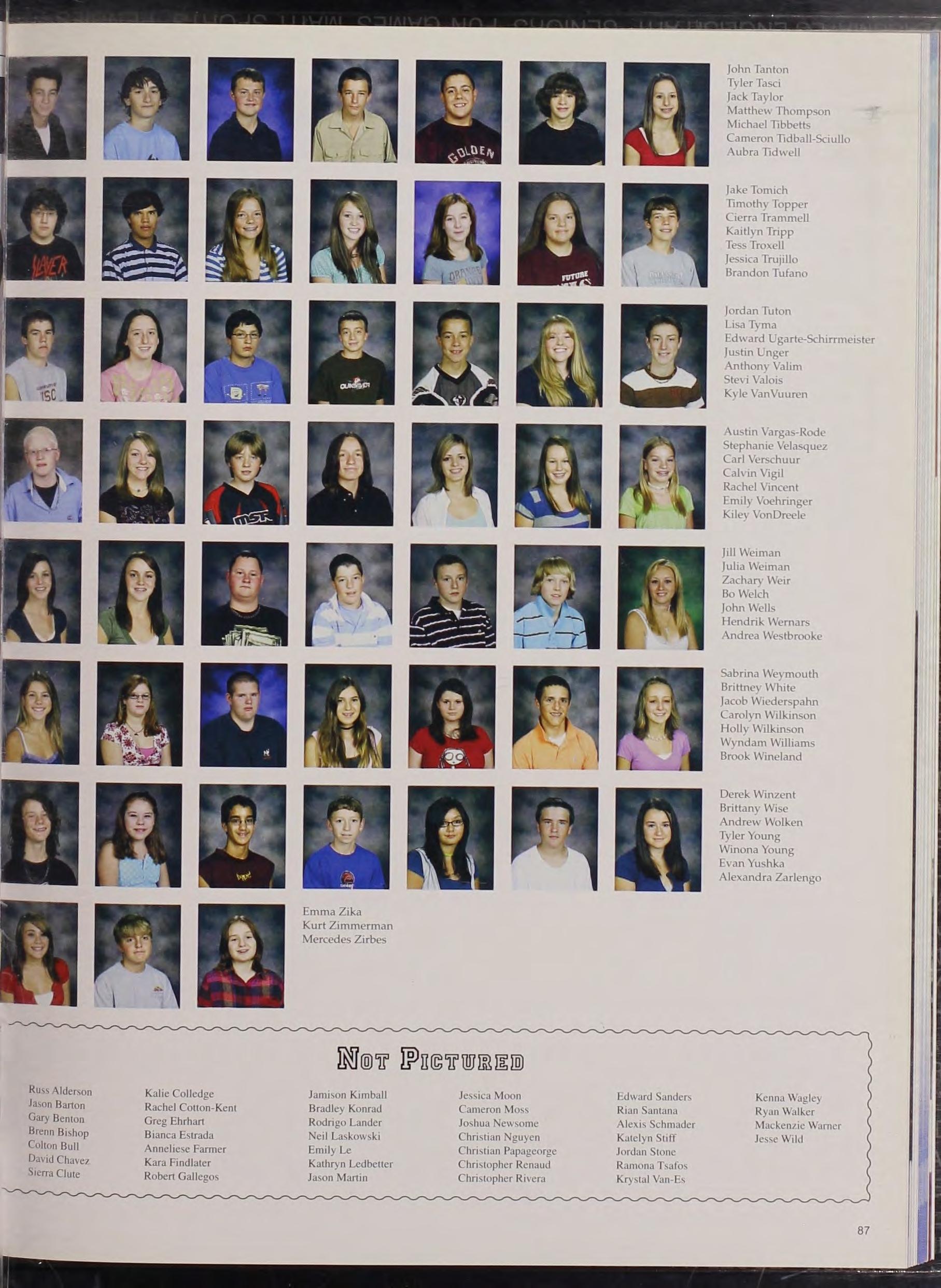 Tafoya , Chad 49 , 163 Tant o n , John 87 Tasc1 , Tyler 87 Taylor Alexander 25 49 Taylor, Braden 49 Taylor, Charles 78 Taylor, Katelyn 78 , 110, 111 Taylor, Megan 67, 128 Term1n-F1edler, Cameron 50 Terrazas , Briana 50 Thielen , Devyn 78 Th1rou1n , Kevin 78 , 156 Thomas , Alexander 78 , 149 , 155 Thomas , Andrea 78 , 112 , 128 Thomas , Malcolm 50 , 112 , 191 Thomas , Shelbey 78 , 127. 129 138 Thompson , Lu c a s 78 , 108 Thompson , Matthew 87 Thompson , Mitchell 67 Thompson Robert 67 Thomson-Foos, Carissa 67 Thum1m , Michael 25 Tibbetts Michael 87 T1dball-Sc1ullo, Cameron 87 Tidball-Sciullo , Jordan 30, 67 Tidwell , Aubra 87 , 129 Tilden, Scott 78, 155 Tim , Davin 51 Tim, Julie 78 T1nucc1 , Patrick 9 , 67, 1 OS Tolbert , Cydney 67 Tollefson , Steven 67 Tomich , Jake 87 Toms , Taylor 30 , 67, 157 Topper, Timothy 87 Townsend , Christina 78 , 152 Tracy, Alexander 50, 148 Tracy, Jordan 50 Trammell, Cierra 87 , 104 Trammell , Jennifer 78, 104 Tramont1na , Aubrey 36 , 50, 120, 121 Tripp, Kaitlyn 9, 87, 126 Tripp , Kyle 64 , 67 Trout , Kyle 50 , 105 , 191 Troxell , Tess 87 , 154 Trujillo, Andrew 67 , 135 , 138, 157 Trujillo, Jessica 87 TrUJIIIO, Tesia 67 Tu , Richard Hren 67 , 127 Tufano, Brandon 87 Turner, Darian 78, 154 Turquette , Matthew 67 155 Tuton , J o rdan 87 Twiford, Aly son 32 , 78 , 157 Ty c k s en , Enk 78 Tyma , Li s a 87 , 154 Tyu s, Christen 50 u Ugarte-Sch1rrme1 s ter, Edward 87 Uln c h , Collin 78 155 Umbrecht , Patrick 67 Umbrecht , Steven 15, 50 Unger, Justin 87 Urban , Alexander 16 18 , 67 U rice Caleb 68