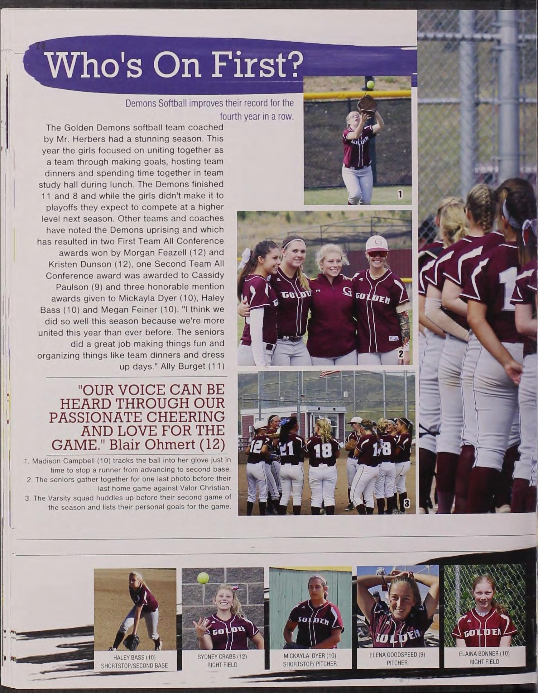 2 Nick Capaul (12) has been 1n the business of baseball since he was a toddler playing t-ball With every pitch he learns something new and applies that knowledge to the next one As one of the few seniors on the team Nick says that "baseball is a great sport made so by great people "