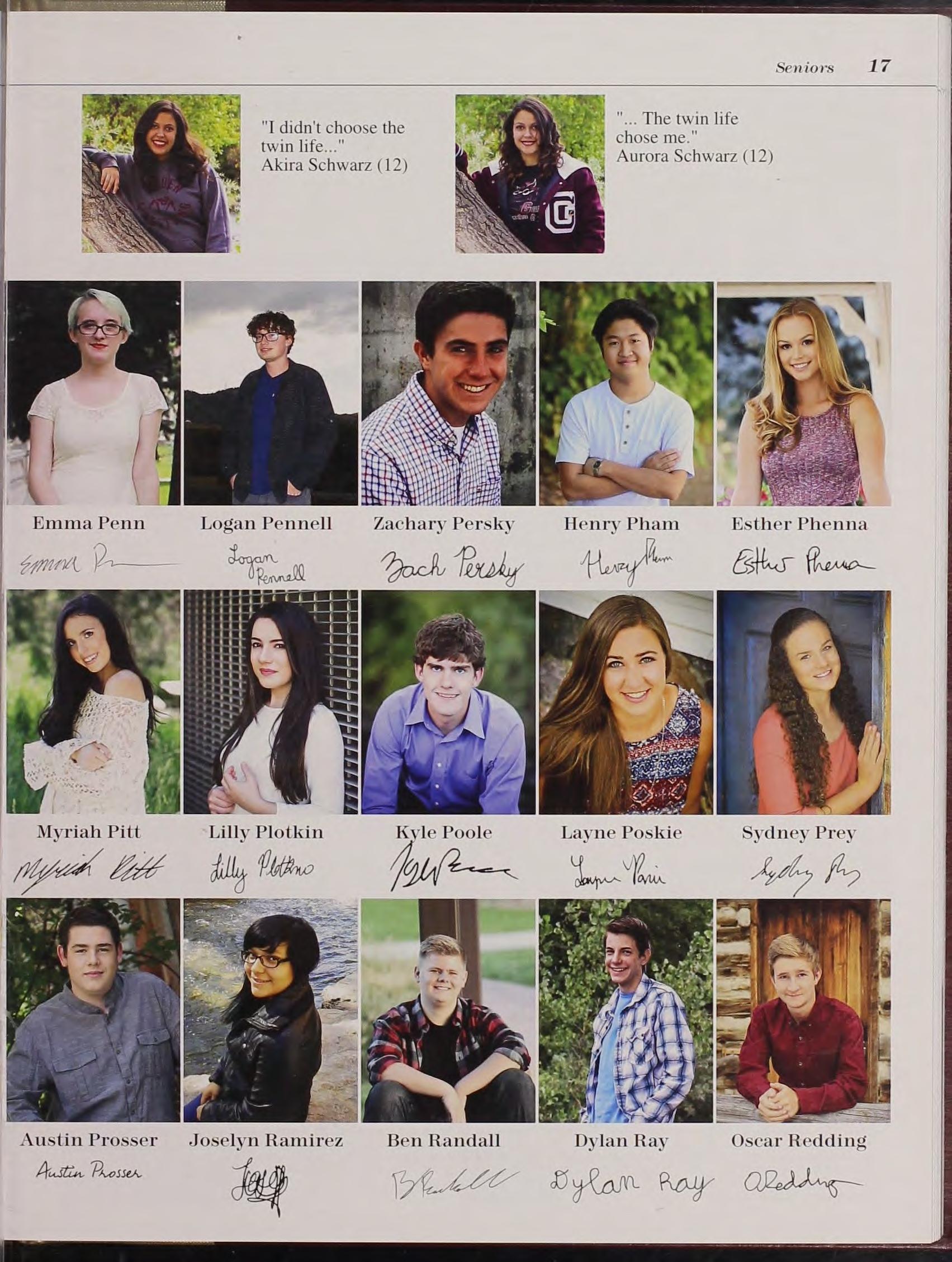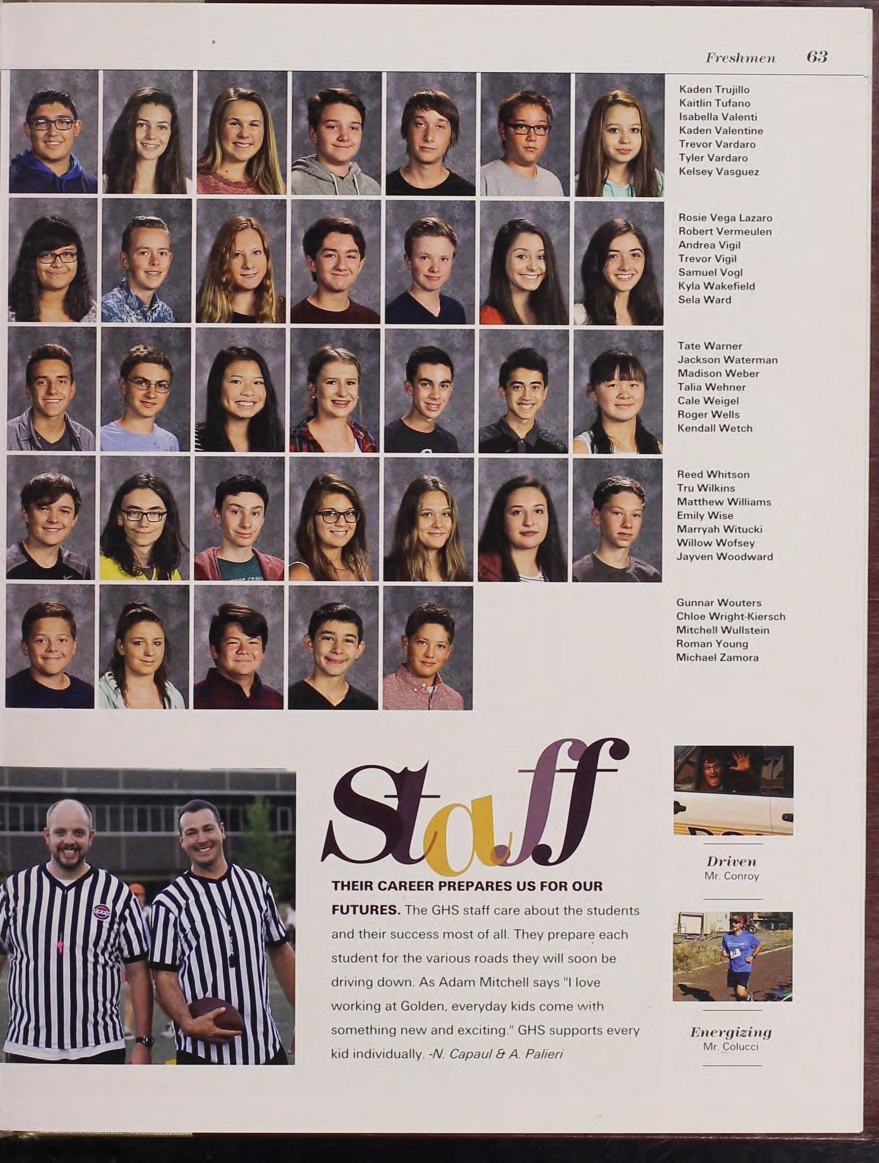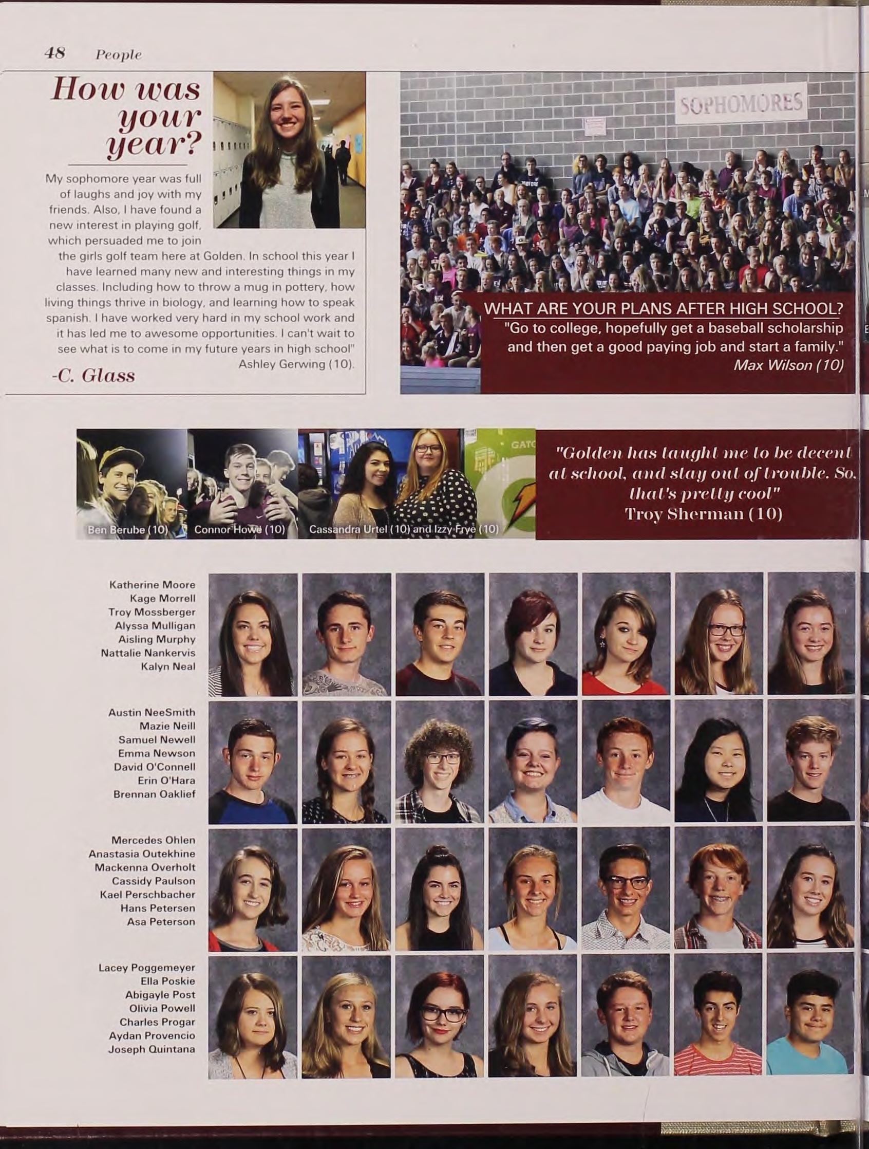 The c la ss of 201 7. M os t have b ee n her e at Golden f or f ou r years a nd have allowed the h a ll owed h a ll s to c h a ng e an d evolve them. Ea c h o f these st udents ha s st oo d the test of time and high sc hool. Th ey co ntinu e now into th e world as fre s h-faced and eager as ever.