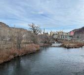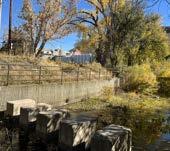 decks, and native gardens celebrate both Golden’s water infrastructure and its local art and ecological character. The fence follows the edge of the path to protect visitors, but its crafted design also adds beauty and identity to the corridor. Together, these features encourage interaction with the canal while maintaining its functional integrity, creating a continuous, inviting space that merges engineered systems, natural landscapes, and creative placemaking.