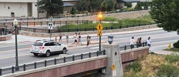 Currently a raised crosswalk is located on 10th Street at the Tucker Gulch crossing. This crosswalk is well-used, and motorist generally exhibit good yielding behavior during daylight hours. However, there is little lighting in the area and yielding compliance is reduced during low and no daylight situations, as motorists cannot see pedestrians and bicyclists approaching the crosswalk. It is recommended to install a rectangular rapid flashing beacon with overhead lighting to make trail users more visible to motorists.